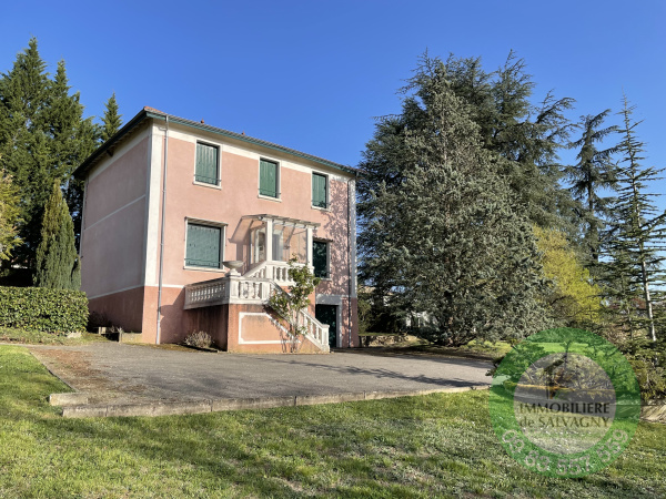Sur une belle parcelle paysagée de 1260 m2 avec piscine, IMMOBILIERE DE SALVAGNY vous propose EN EXCLUSIVITE dans un quartier calme et privilégié, cette maison d'une surface habitable d'env. 140 m2 élevée sur deux niveaux. Elle se compose au RDC, d'un hall d'entrée, une cuisine indépendante et équipée, une pièce de vie salon / salle à manger lumineuse donnant sur une belle terrasse exposée Sud, une chambre/ bureau avec salle d'eau et un WC séparé. Attenant à la cuisine, cellier, buanderie et atelier. A l'étage un couloir déssert 3 chambres dont une chambre parentale avec WC et une deuxième salle de bains. Huisseries PVC double vitrage. Proche du centre du village et des commodités. Contact au 09 83 557 559