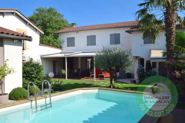 Belle villa de 188 m2 habitables + sous-sol sur terrain de 3197 m2 avec piscine chauffée et pool-house proche du CENTRE du village. Emplacement privilégié et cadre exceptionnel ! Cette maison de style provençal offre des prestations de qualité et de très beaux volumes. Au RDC : entrée avec placard, séjour et salle à manger de 58 m2 ouvrant sur une véranda de 20 m2 ainsi que sur la terrasse, cuisine spacieuse et équipée avec accès direct sur l'extérieur, 3 belles chambres (parquet massif et placard mural pour chacune), salle de bains avec baignoire et douche. A l'étage : l'espace parental composé d'une salle d'eau et d'une chambre lumineuse d'env. 17 m2. Au sous-sol : garage, cave et buanderie. Chauffage au gaz de ville. DPE : D - Pour toutes informations IMMOBILIERE DE SALVAGNY au 09 83 557 559