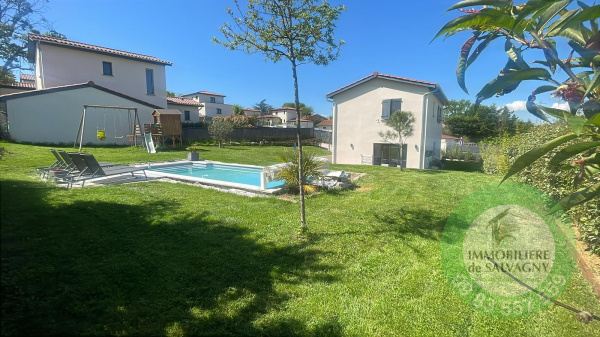Immobilière de Salvagny vous propose à la location une maison récente de 2020 d'une surface habitable de 110,50 m², louée MEUBLÉE. Très bien agencée et lumineuse, elle propose au rez-de-chaussée : un vestiaire à l'entrée, WC avec lave-mains, un vaste séjour salle à manger / salon permettant l'accès aux terrasses, cuisine ouverte équipée en electroménager (2 fours, plaque induction + hotte, lave-vaisselle) et une buanderie équipée d'un lave-linge et sèche linge. L'étage dispose de 4 chambres dont une suite parentale (dressing et salle d'eau), ainsi qu'une salle bains avec double vasque. Garage de 25 m² env. attenant. Piscine privative chauffée. Portail et volets automatisés. Chauffage au sol par pompe à chaleur. DPE : B. Bail meublé de 12 mois. Loyer 2450 € TTC, l'entretien annuel de la pompe à chaleur, la mise en route et l'hivernage de la piscine sont compris dans le loyer. Dépot de garantie 4000 € TTC. Honoraires charge locataire 1448 €. Pour renseignements et visites, contacter Immobilière de Salvagny.