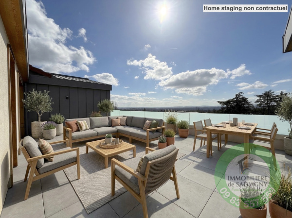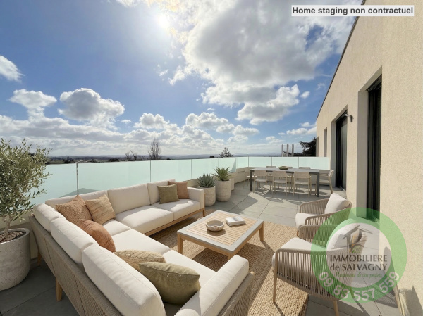 Disponible de suite au 4 rue de Lyon et EN EXCLUSIVITÉ chez Immobilière de Salvagny, au coeur du village de La Tour de Salvagny, résidence Les Coquelicots...le plaisir de tout faire à pied ! Vous bénéficiez d'une qualité de vie privilégiée, dans une résidence intimimiste aux prestations haut de gamme. Situé au 1er étage, exposé sud/est, superbe T3 de 73,35 m², proposant une pièce de vie de 32 m2 ouvrant sur une terrasse de plus de 36 m², 2 grandes chambres, salle d'eau, buanderie et WC séparé. En complément l'accès à un jardin privatif de 132 m². Prestation unique : plancher chauffant et rafraîchissant par pompe à chaleur. Les plus : huisseries en aluminium haut de gamme, volets de type BSO (brise-soleil orientable) motorisés en aluminium, carrelage 60x60 en grès cérame pour la partie jour, parquet chêne français dans l'espace nuit, peinture de finition de qualité, visiophone et boite aux lettres connectés, garage (en supplément) en sous-sol avec possibilité d'une porte motorisée et prise IRVE. Local à vélo. Une vie en coeur de bourg (commerces, services, écoles, bus, navette gratuite pour la gare). Liaison A89/M6 à 2 mn. Informations et réservations, contacter Sylvie MACHADO, Immobilère de Salvagny By Pierrefeu Immobilier.