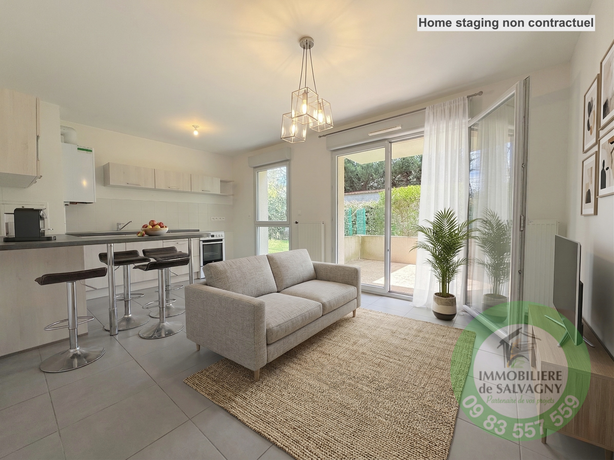 Immobilière de Salvagny vous propose ce charmant T2 en rez-de-jardin d’environ 45 m², agrémenté d’une agréable terrasse parfaite pour profiter des beaux jours.