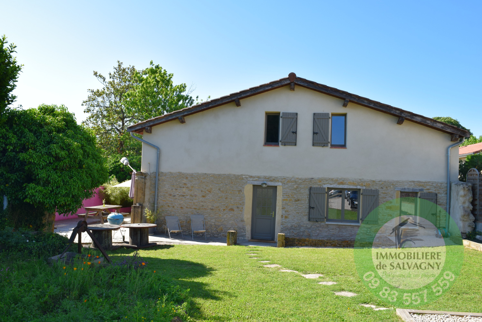 Aux portes de Lentilly, dans un charmant village des Pierres Dorées (St Germain Nuelles), Immobilière de Salvagny vous propose en EXCLUSIVITE cette ravissante maison de village de 150 m2 entièrement rénovée (2011). Parfaite alliance entre les prestations contemporaines et les matériaux écologiques ! Au RDC : magnifique pièce de vie d'env. 56 m2 bordée de baies vitrées ouvrant sur une grande terrasse bois, cuisine ouverte sur séjour, coin bureau, une superbe SDE de 9 m2, une buanderie et WC séparé. A l'étage : un beau dégagement, une chambre de 19 m2, une chambre de 17 m2 et une chambre parentale avec dressing de 34 m2 au sol (possibilité de créer une SDE afin d'obtenir une suite). Le tout sur un terrain plat et clos de mur de 537 m2. En complément : abri de jardin de 16 m2, parking intérieur pour 3 voitures. Chauffage au sol par géothermie. Emplacement CALME et proche de toutes les commodités. DPE : D - Contact au 09 83 557 559