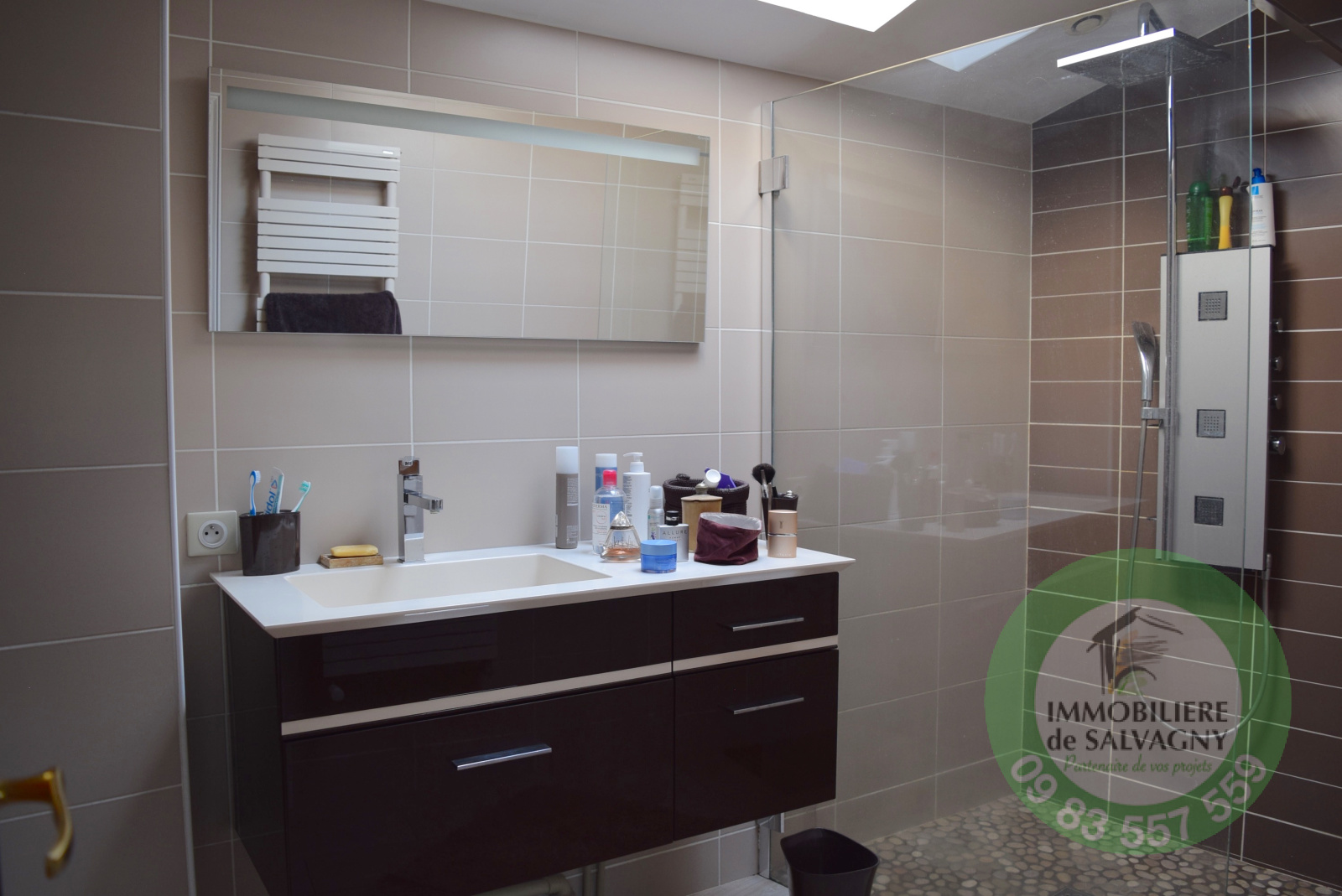 EXCLUSIVITE - Située proche du centre du village, superbe maison de village, entièrement rénovée, d'environ 130 m2 hab. sur terrain clos de mur de 396 m2. La maison dispose d'un garage de 55 m2 (+ grenier de 27 m2), d'une cave et d'un jardin paysagé avec piscine en bois. Au RDC : entrée, cuisine équipée ouvrant sur terrasse de 17 m2, beau séjour avec cheminée ouvrant sur terrasse de 36 m2, chaufferie/buanderie, WC séparé. Au 1° étage : une suite parentale avec SDE, 2 chambres spacieuses, SDE et WC séparé. LES PLUS : prestations récentes et qualitatives (huisseries et volets en alu, pergola bio-climatique, arrosage automatique,..) - AUCUN TRAVAUX à prévoir - exposition SUD. Chauffage au gaz de ville. Immobilière de Salvagny : 09 83 557 559