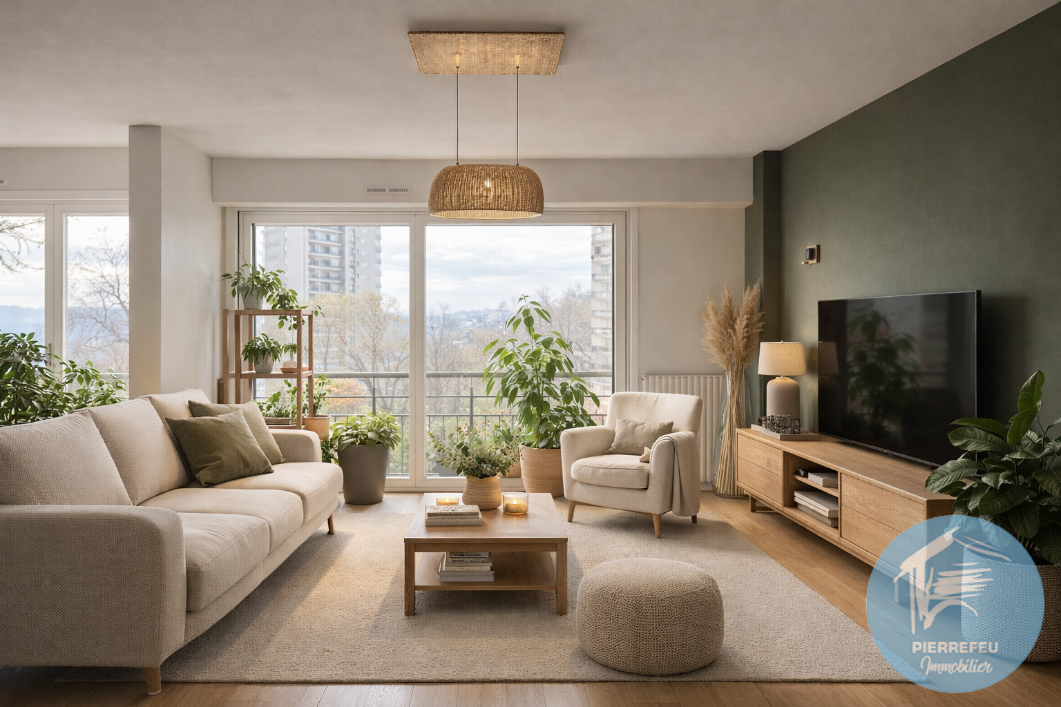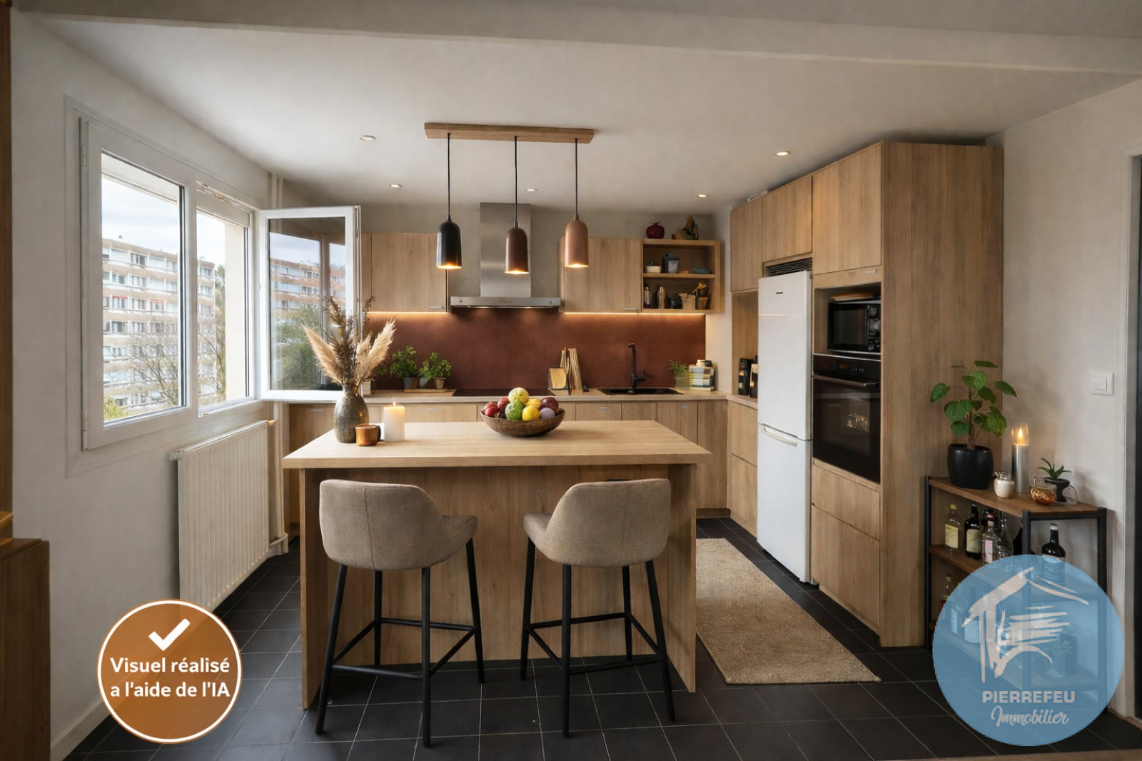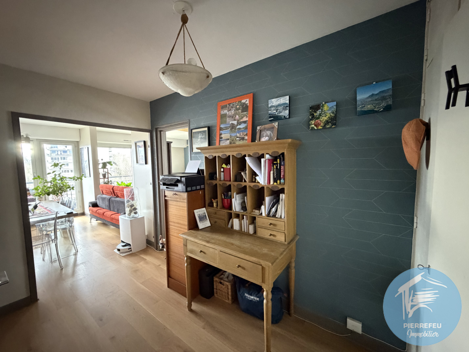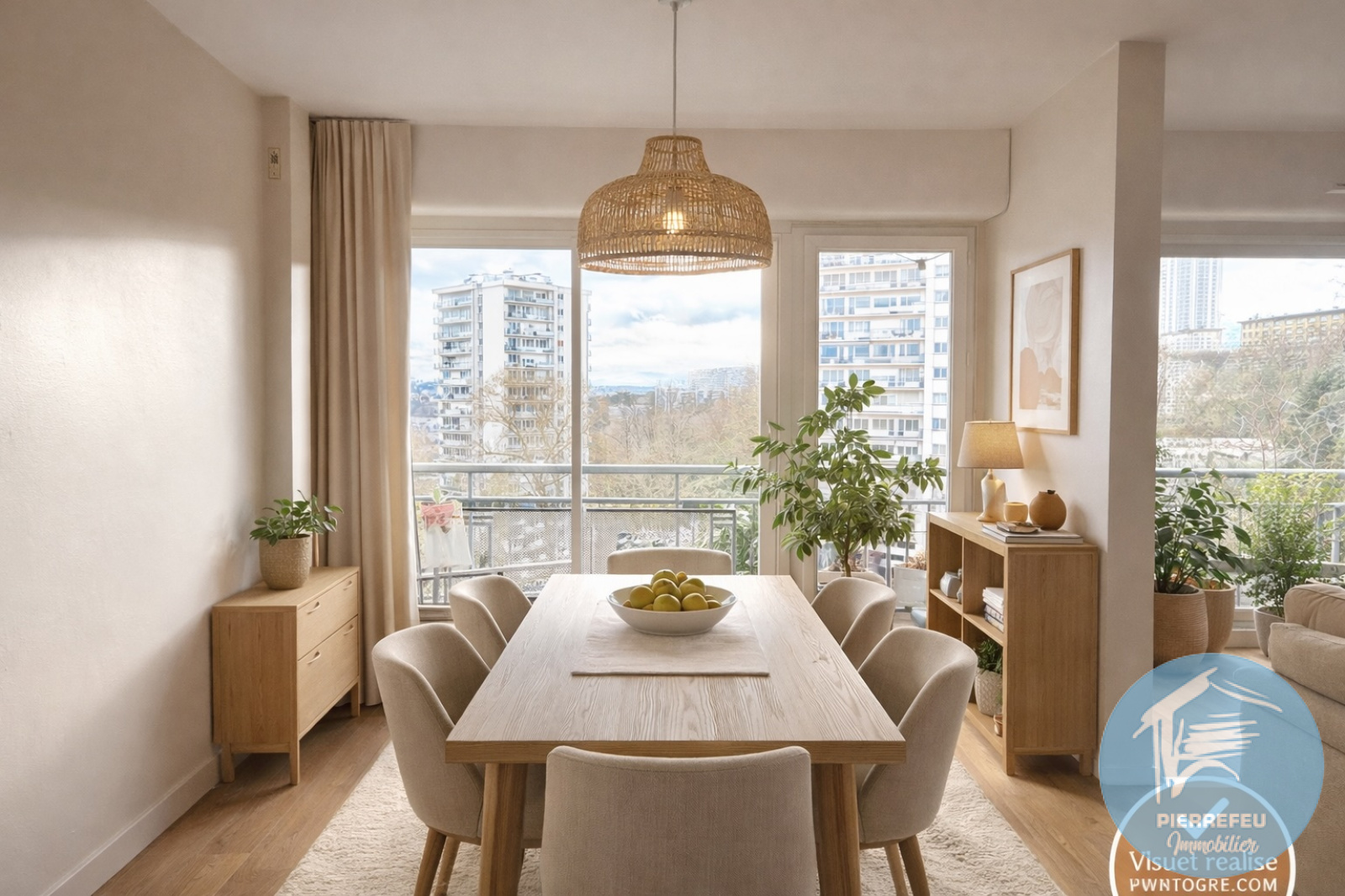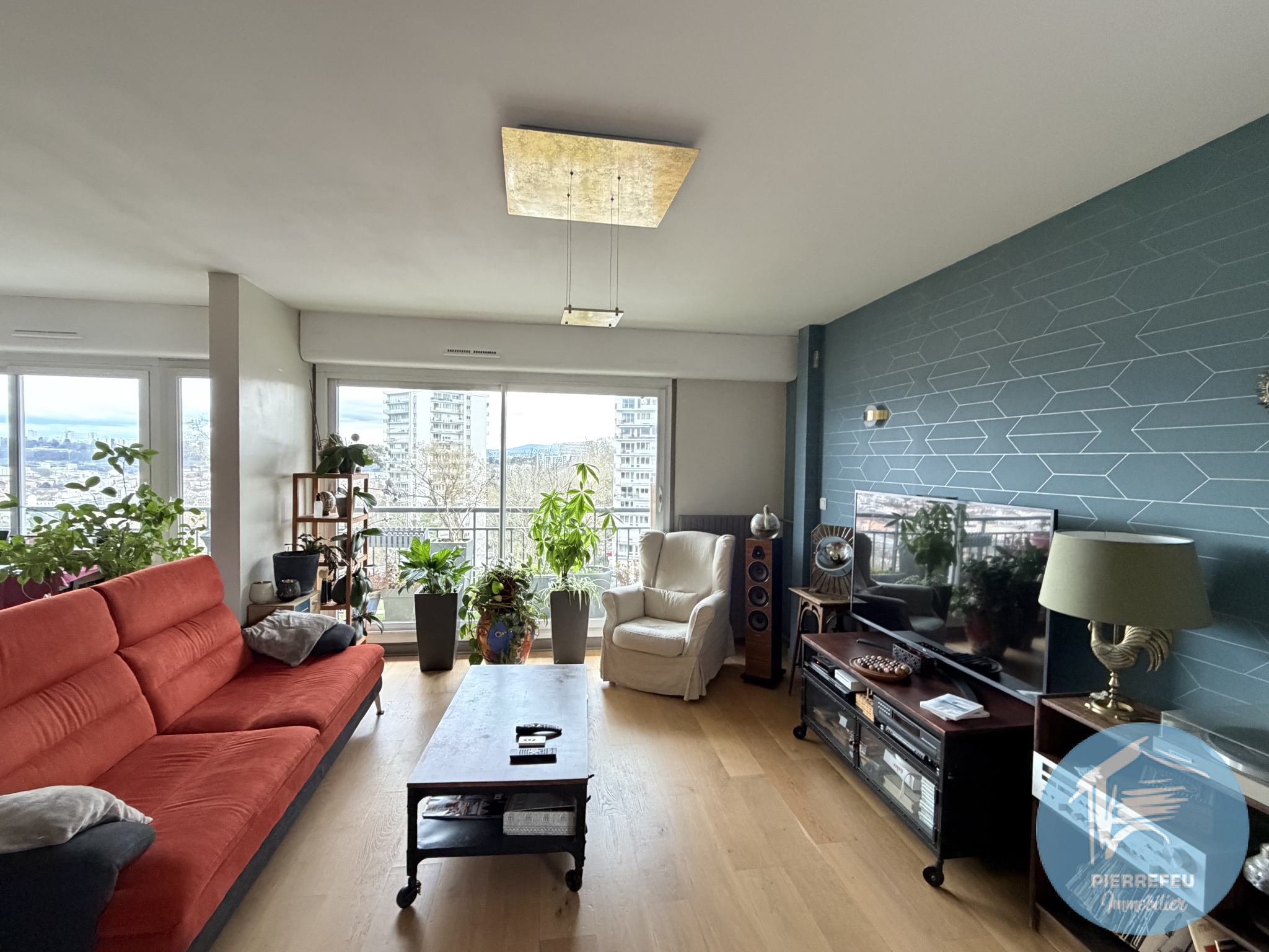 Pierrefeu immobilier vous propose à le vente, secteur Vaise-Rochecardon-Balmont, cet agréable et spacieux appartement de type 3, d'une surface d'environ 81m2. Situé sans une résidence de 1972 (4 bâtiments), le bien, SANS TRAVAUX, se situe au 8ème étage (sur 14), sans vis-à-vis . Il se compose d'une grande pièce à vivre de 40m2 avec un coin salle à manger, une cuisine ouverte entièrement équipée, et un accès direct à un grand balcon filant d'environ 15m2. Vous bénéficierez, depuis cet espace de vie, d'une vue dégagée et panoramique, exposée Sud-Ouest. Le bien est entretenu et en bon état, il a fait l'objet d'une rénovation en 2019 (parquet, cuisine ouverte, extension salon, sde). Chauffage collectif: Gaz de ville (index repartiteur). Nombre de lots principaux : 261 lots. Quote part : 900 euros/Trim (chauffage et Eau froide compris). Une cave en sous-sol et 1 stationnement exterieur complètent le bien. Grand Parc arboré au sein de la résidence. Bien soumis au statut de la copropriété. Pas de procédure en cours. Proche de toutes commodités (centre ville, écoles, commerces, etc). Transports : Bus TCL, Périphérique, M6 à proximité. Visites et renseignements : Muriel Chauplannaz - Agent commercial indépendant de la SARL Pierrefeu Immobilier - Immatriculée au R.S.A.C de Lyon sous le Numéro 843 741 570.