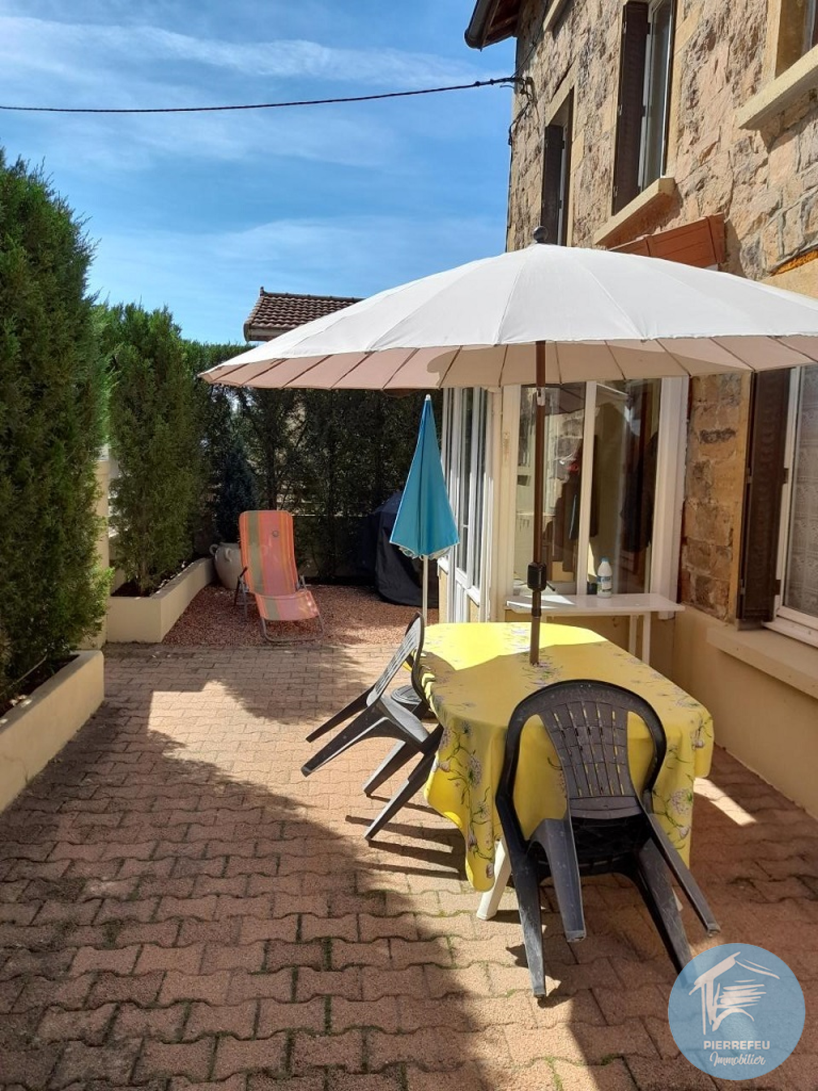 A 3mn de Thizy Les Bourgs, sur la commune de PONT TRAMBOUZE, à deux pas de l'école et commerces, maison en pierre de village élevée sur caves composée au rez-de-chaussée d'une cuisine, un séjour/ salon, une salle d'eau, un WC, à l'étage : deux chambres, une salle d'eau avec WC, au 2ème étage : une suite parentale avec baignoire, douche, double vasque, placards muraux, un WC. Vous pourrez profitez pour les beaux jours d'une cour et d'une terrasse avec barbecue, un atelier et une chaufferie/cave complètent ce bien. Maison habitable de suite, reliée au tout-à-l'égout, double vitrage, chauffage électrique et production d'eau chaude sanitaire assurée par un cumulus. Stationnement possible des véhicules devant la maison.