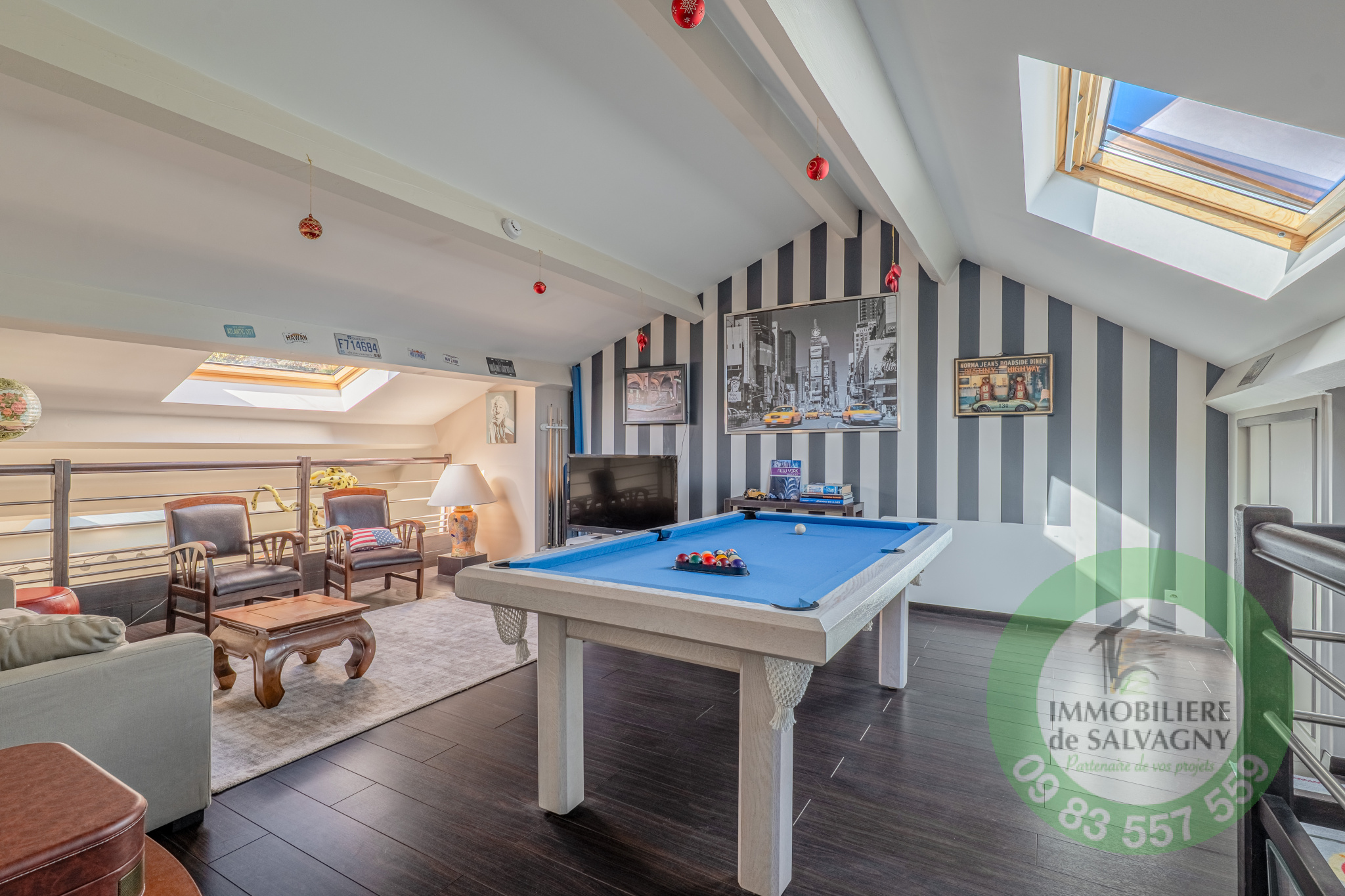 EN EXCLUSIVITE - À deux pas du cœur du village, proche des commerces et des écoles, dans un domaine prisé de La Tour de Salvagny, cette maison annonce tout de suite la couleur : 168 m² habitables (193 m² au sol). On progresse naturellement vers une pièce de vie traversante de 53 m², avec cuisine meublée et équipée. Côté nuit, elle offre 5 chambres dont une suite parentale, 3 pièces d’eau et 3 WC. Et pour souffler, une salle de jeux de 25 m² en surplomb du séjour (avec possibilité de 6e chambre). Le tout est complété par un cellier / buanderie de 17 m², un garage double, un atelier et une cave. Sur un terrain arboré de 1 471 m² facilement piscinable. Terrasse en IPÉ de 80 m². Une maison impeccable, proche de tout, prête à vivre !!!