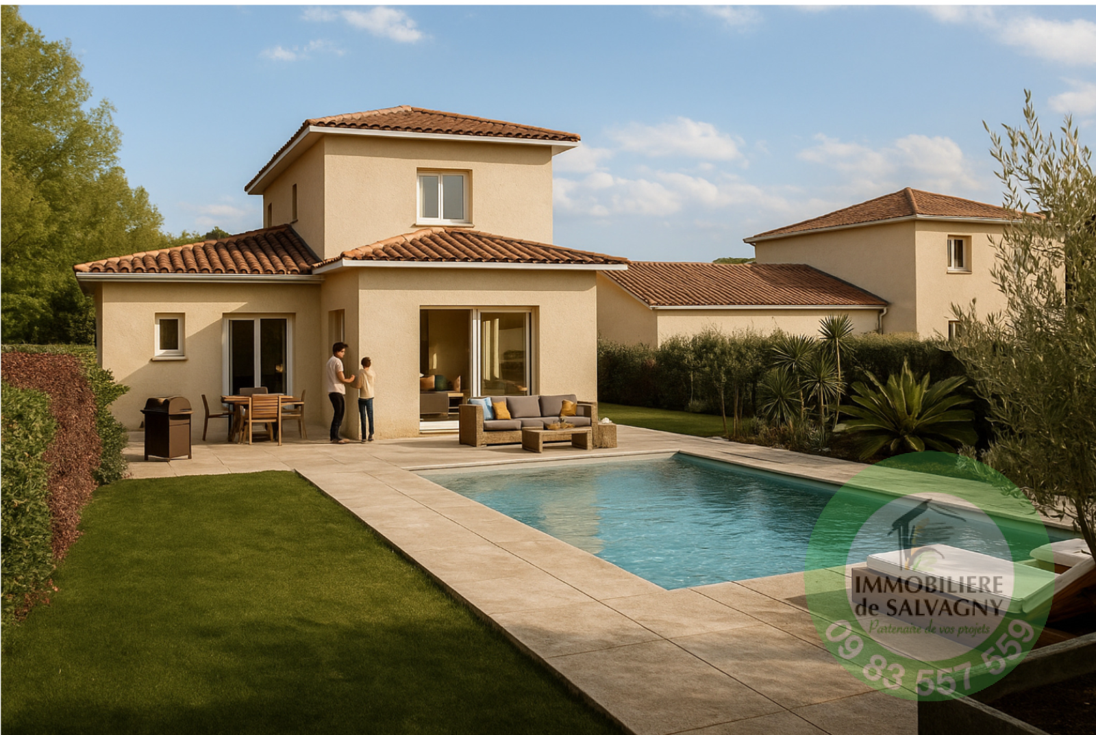 Immobilière de Salvagny vous propose l'opportunité d'acquérir un terrain à bâtir de 862 m² pour la construction d'une maison individuelle (secteur pavillonnaire - hors lotissement). Classé en zone URi2C avec une emprise au sol de 20%. Orientation plein SUD. Situé à moins de 5 mn à pied des bus et de la navette pour la gare. Vu avec notre partenaire, nous tenons à votre disposition un projet complet (visuels, plans,...) pour une maison de 130 m² habitables (4 chambres dont une suite parentale au rez-de-chaussée) + garage. Renseignements et visites : Sylvie Machado - Immobilière de Salvagny by Pierrefeu Immobilier.