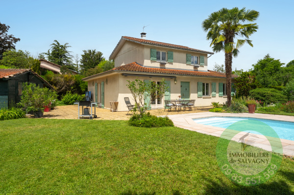 Immobilière de Salvagny vous présente cette maison de 163 m² habitables (242 m² au sol) sur la commune de Dardilly. Elle dispose en rez-de-jardin d'un vaste séjour de 53 m² ouvrant sur la terrasse et la piscine (exposition sud), d'une cuisine équipée, de deux chambres, salle d'eau et toilettes. L'étage comprend un espace en mezzanine, deux chambres, une salle d'eau et un bureau. Au sous-sol : un garage double, une pièce de 20 m², un atelier, une cave et un studio indépendant avec cuisine et salle d'eau. Pour les extérieurs, une terrasse équipée d'un store banne, une piscine chauffée et un abri de jardin. Le tout sur un terrain de 1378 m². Située à 10 mn à pieds du centre du village et des commerces. Proximité ligne TCL n°3 et gare des Mouilles. Chauffage électrique. Pour renseignements et visites, contacter Sylvie Machado, Immobilière de Salvagny By Pierrefeu.