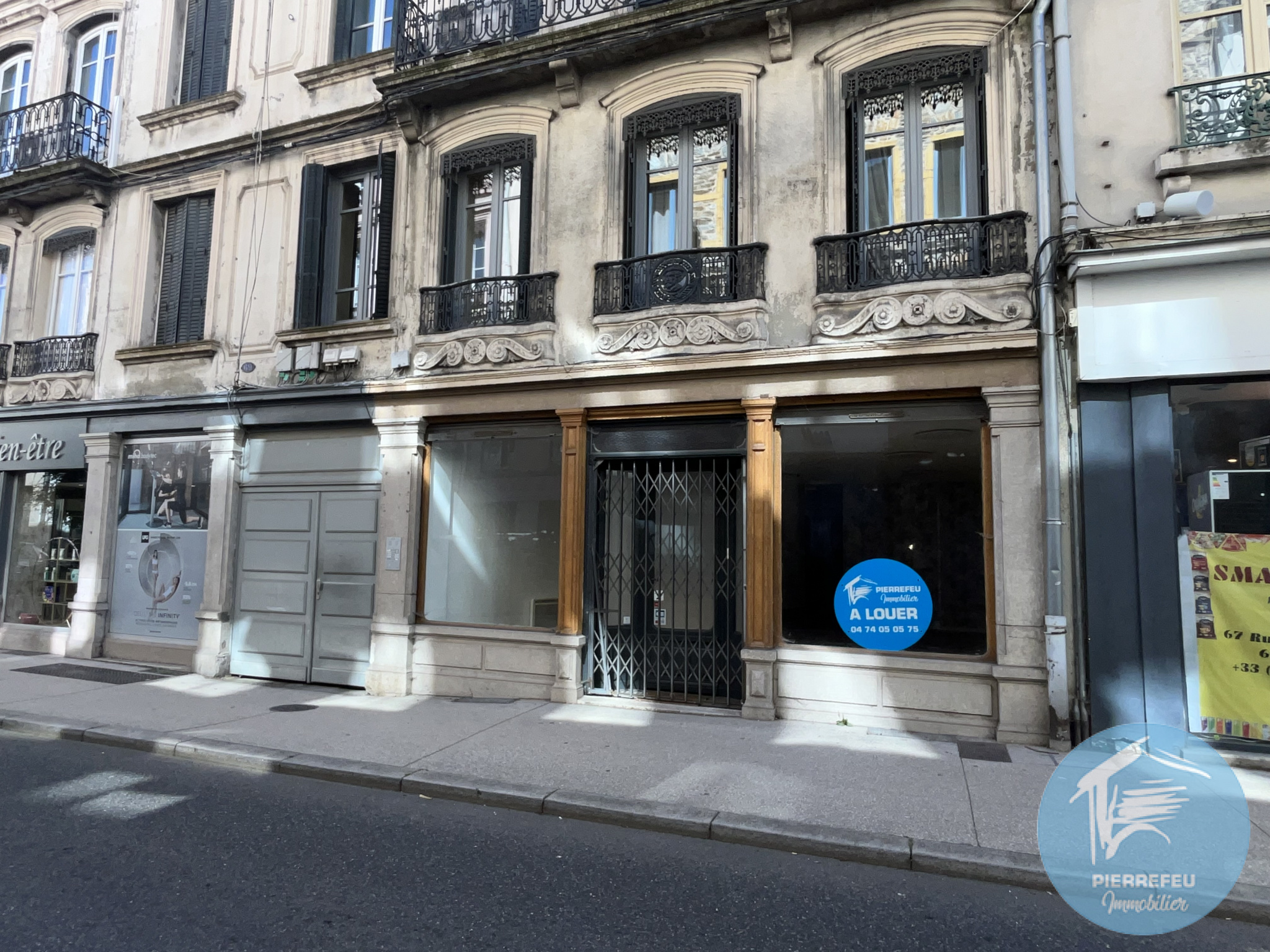 TARARE - 69 Rue de la République - Local commercial de 56m², composé d'un magasin avec vitrine sur rue, d'une piéce fermée et d'une réserve. Loyer 690€, provisions sur charges 60€. Honoraires 690€, Dépôt de garantie 1 380€.