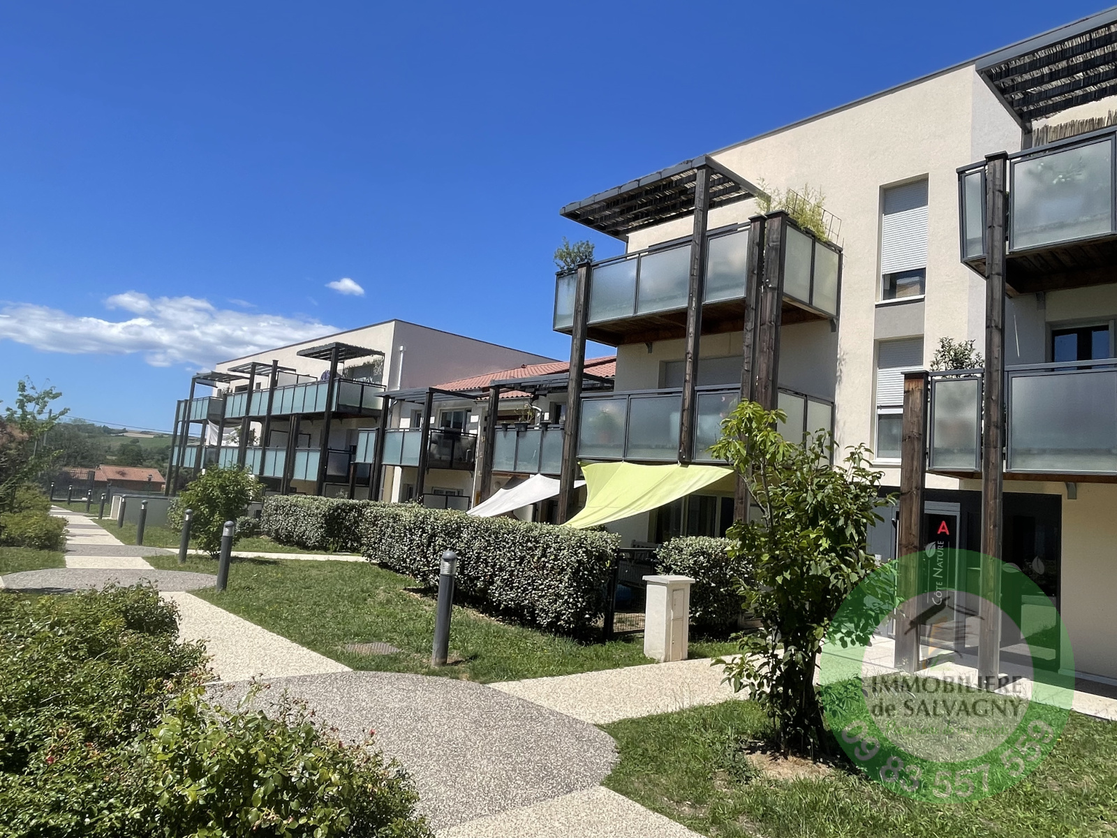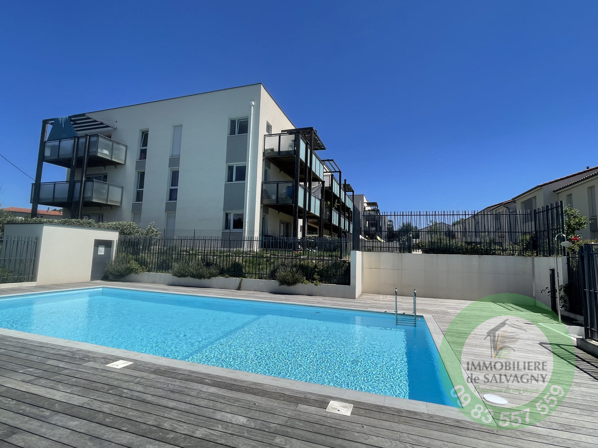 En exclusivité, dans une résidence intimiste récente et sécurisée, IMMOBILIÈRE de SALVAGNY vous propose un bel appartement T3 d'une surface habitable de 62,67 m2 (carrez). Il se compose d'un hall d'entrée avec placard, d'un séjour ouvrant sur une terrasse de plus de 18 m2, d'une cuisine entièrement équipée ouverte sur la pièce de vie, de deux chambres avec accès terrasse, d'une salle de bains et d'un WC séparé. En complément, un jardin privatif de 22,68 m2 attenant à la terrasse, un box en sous-sol et une piscine commune à la copropiété. Volets motorisés. Chauffage individuel au gaz. Charges mensuelles environ 90 € / mois. DPE : C. Nombre de lots : 46. Pas de procédure en cours. Renseignements et visites au 09 83 557 559