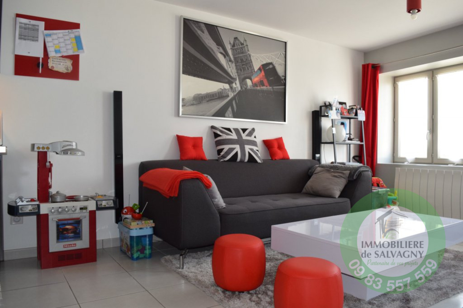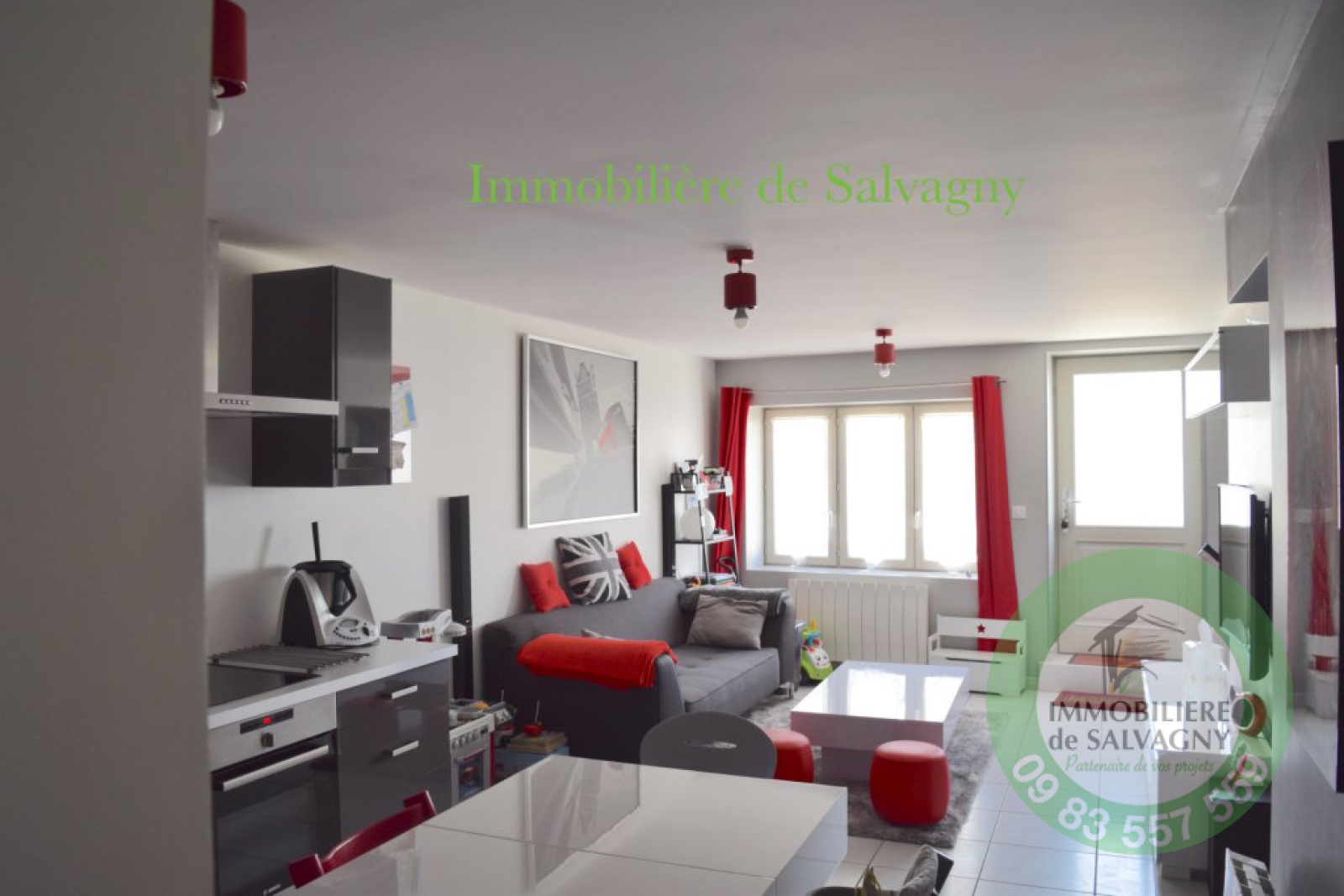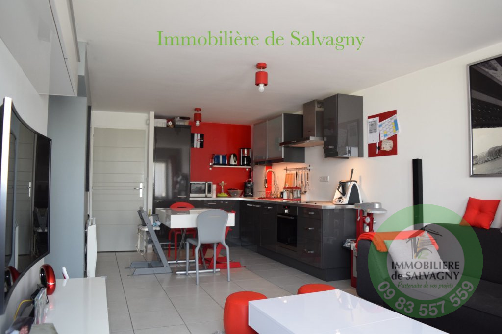 EN EXCLUSIVITE. COUP de COEUR. Sur la commune de Dommartin, appartement de Type T3 de 62 m2, en rez de chaussée, état exceptionnel, entièrement rénové en 2013 avec prestations contemporaines, dans petite copropriété de 3 lots. Il se compose d'une pièce de vie de 26,75m2 avec cuisine ouverte aménagée, deux belles chambres de 13,83m2 et de 11,93m2 avec placards. 2 parkings privatifs. Charges mensuelles de 56 € -Contact 09 83 557 559