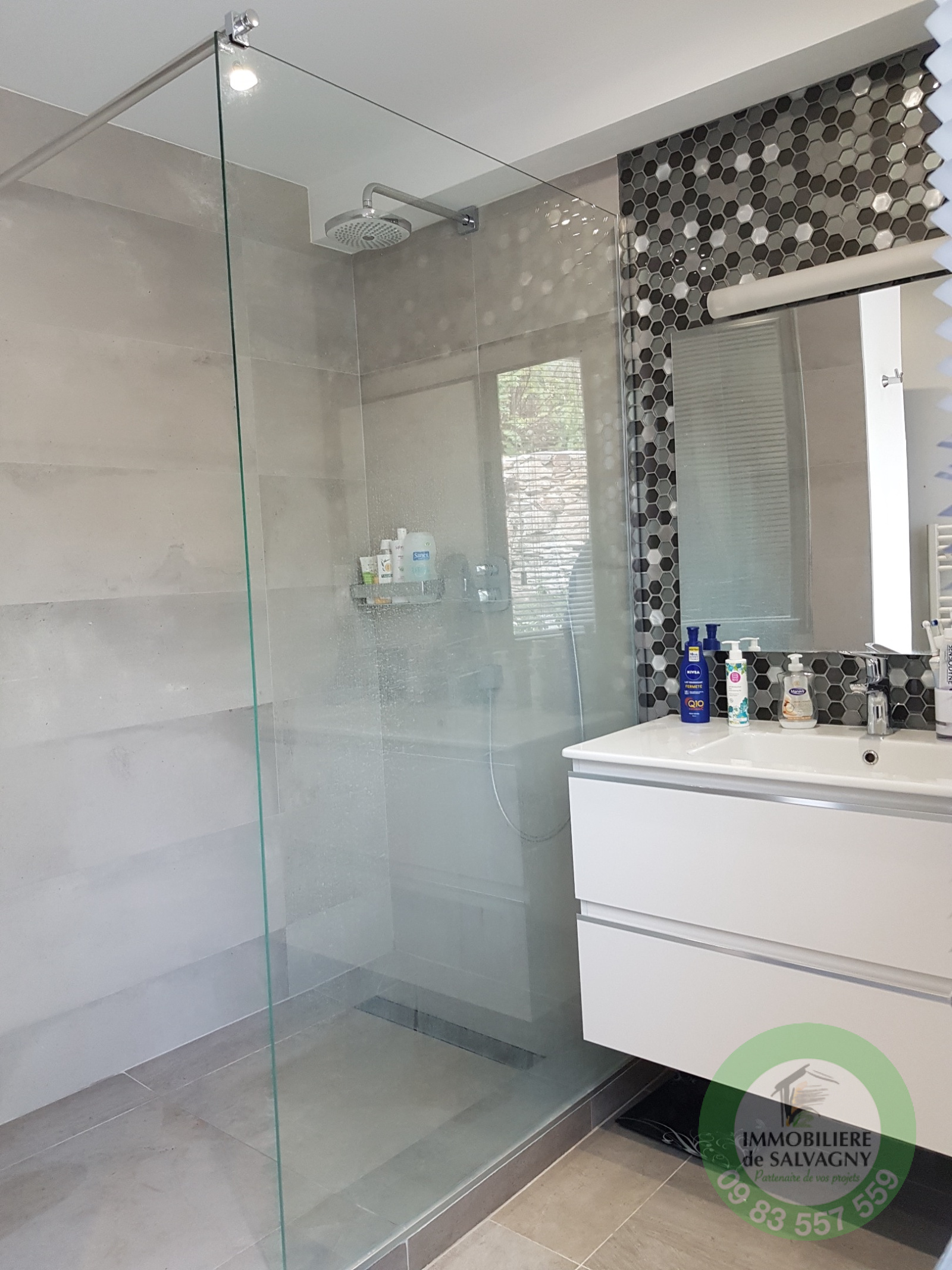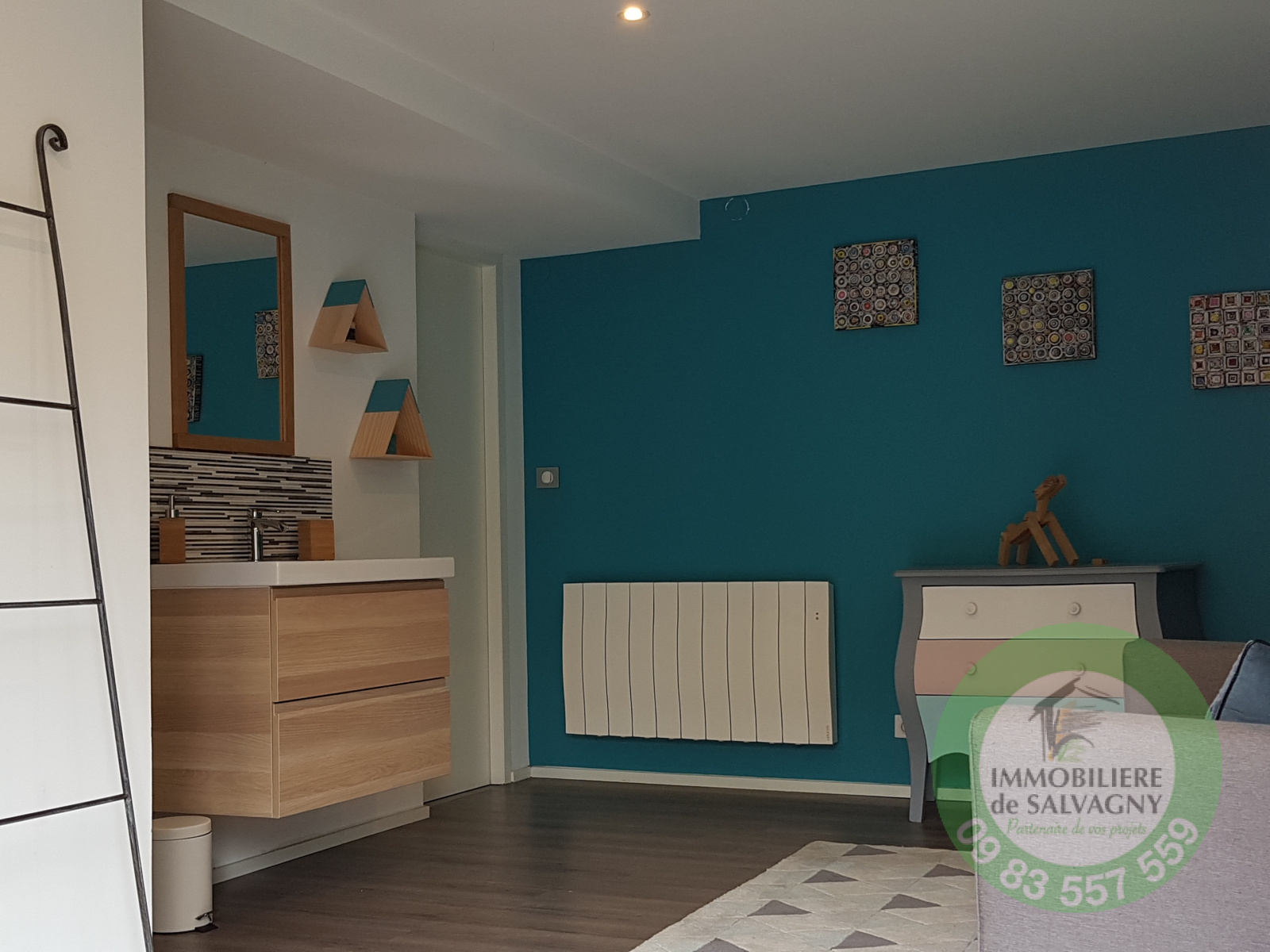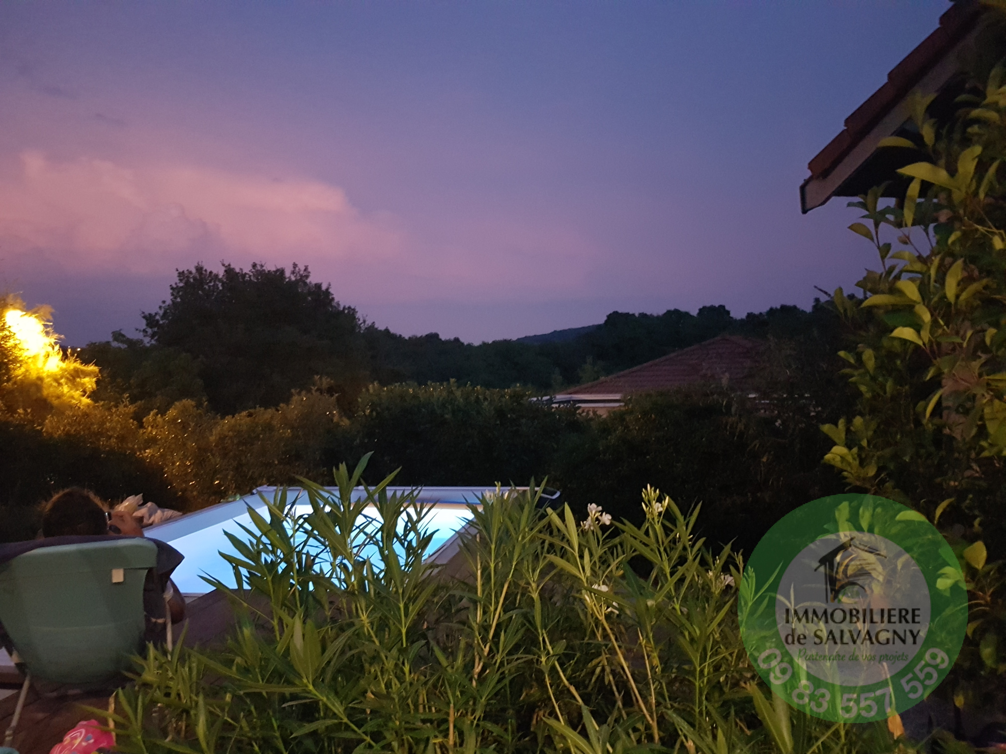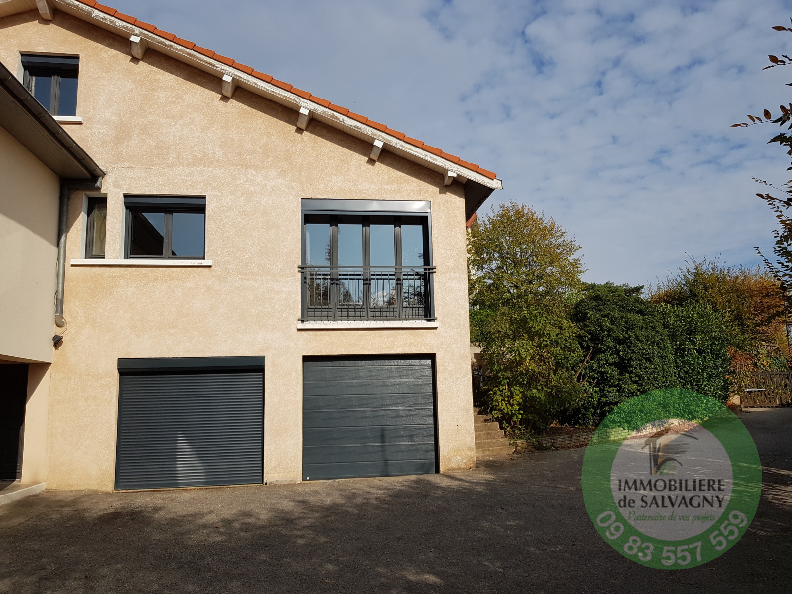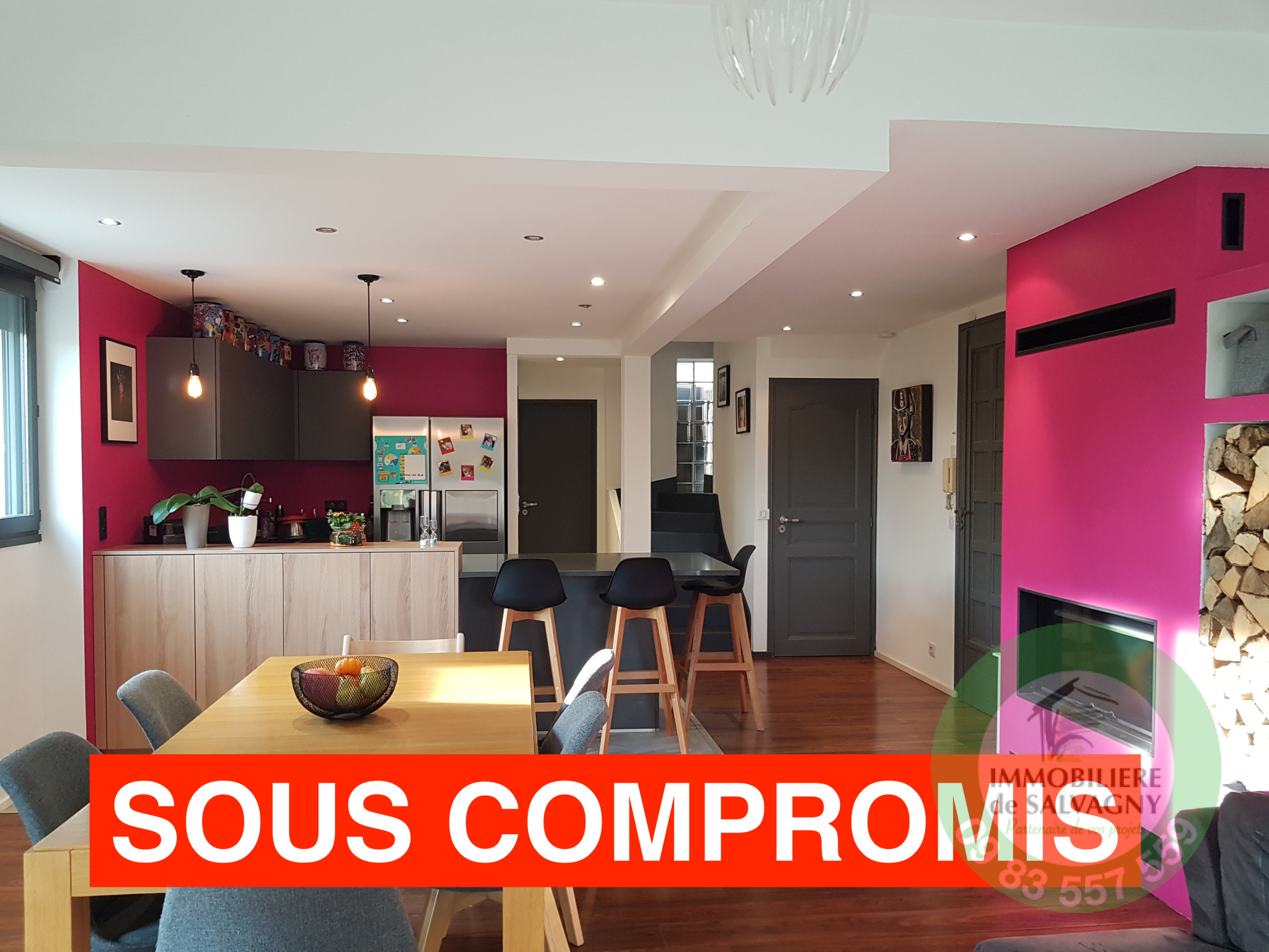 Jolie maison mitoyenne d'environ 120m2 à Dommartin. Entièrement rénovée en 2016 avec prestations contemporaines de qualité. Elle se compose de 3 étages : niveau 1, une pièce de vie de 43m2 avec cuisine ouverte équipée, une SDE avec douche à l'italienne, toilette séparée. Niveau supérieur : 2 chambres de 11m2 et 15m2 et rangements. Niveau inférieur : 1 chambre éclairée par une large baie vitrée avec salle d'eau, coin cellier, buanderie et garage. Cette maison située au calme, avec vue dégagée, vous offre un agréable terrain de 360m2 arboré sans vis à vis, dotée d'une agréable terrasse bois avec pergola bioclimatique donnant sur une piscine créée en 2018. DPE : D - Contact 09 83 557 559