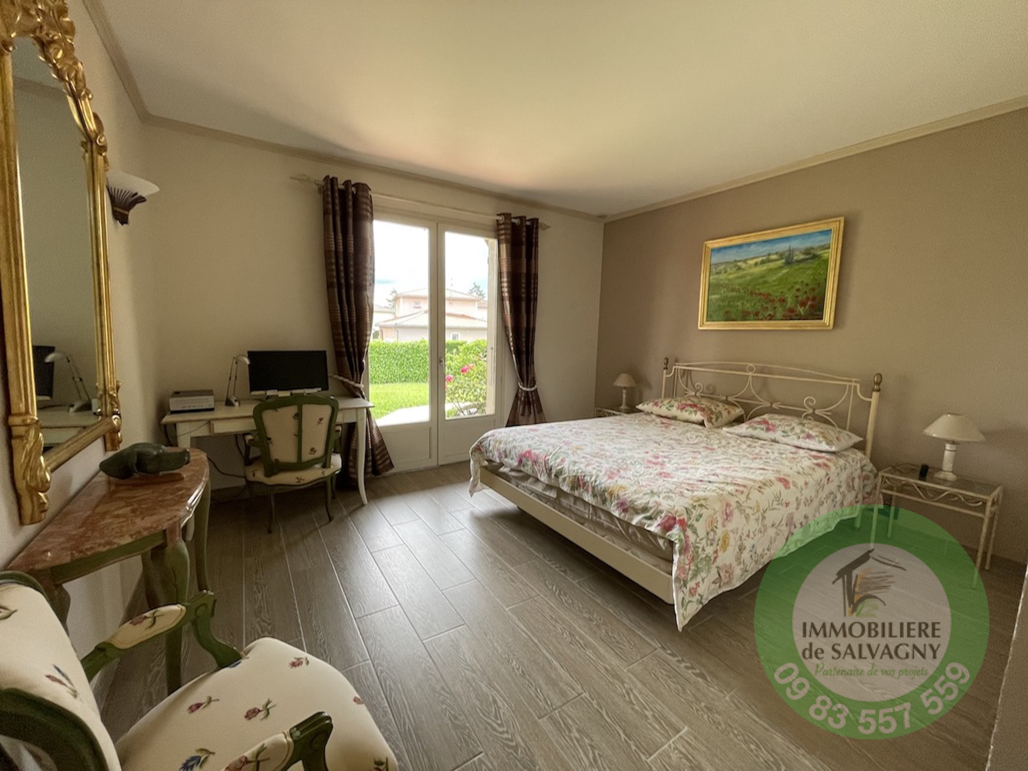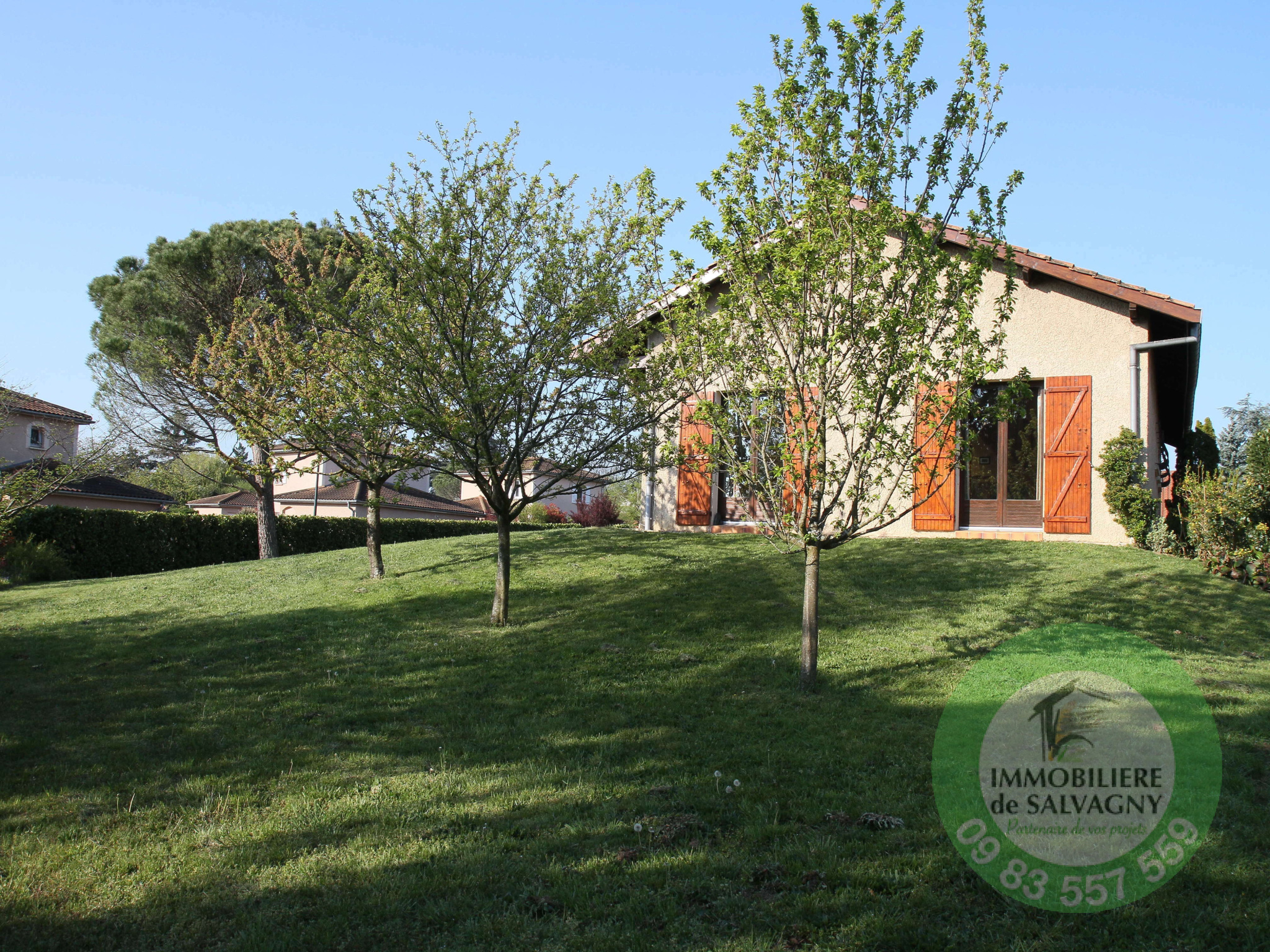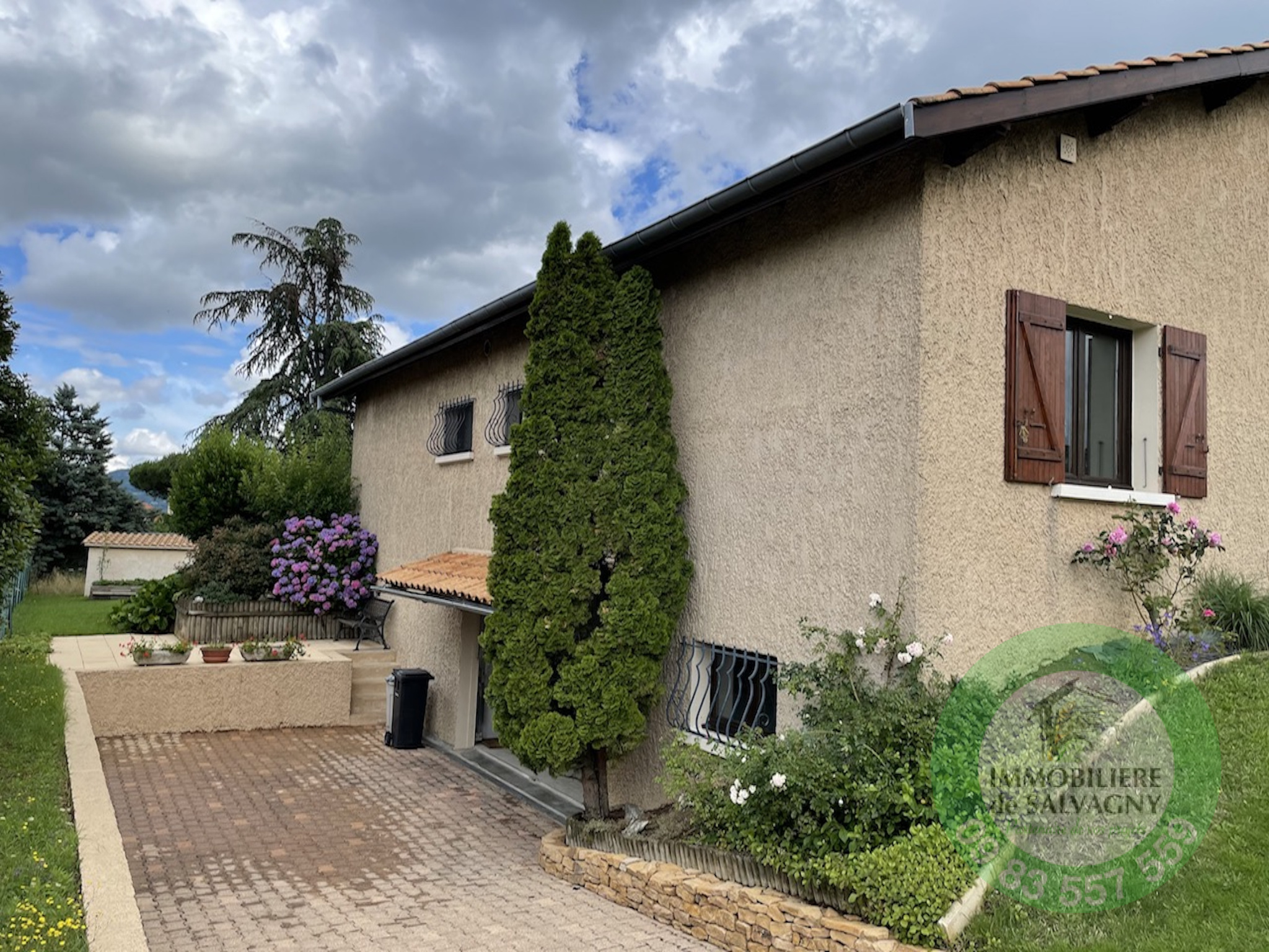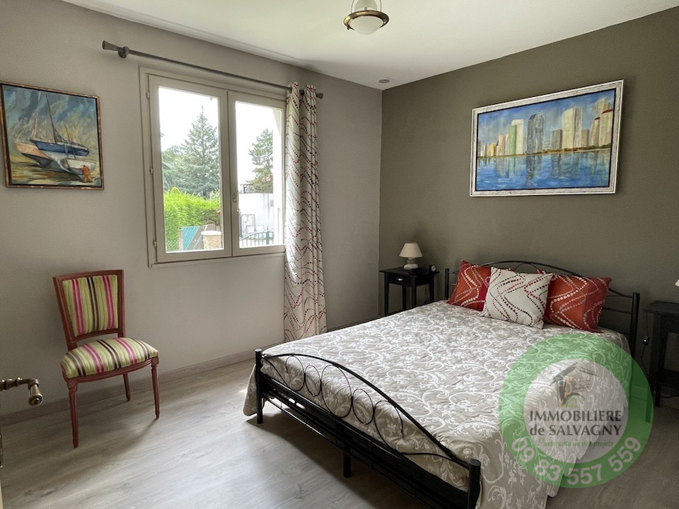 Sur un terrain clos et arboré de 1003 m2 (piscinable), une maison de 1981 d'une surface habitable de 117,24 m2 (surface au sol 288 m2). Extention possible jusqu'à 250 m2, offrant une très jolie vue et proche du centre du village. Elle se compose de plain-pied d'un séjour cathédrale de 37 m2 (avec cheminée) ouvrant sur une terrasse exposée Sud, d'une cuisine équipée séparée (US possible), de 2 belles chambres, d'une magnifique salle d'eau (avec douche italienne et WC), d'une buanderie et d'un WC séparé. Combles aménagés faisant office de troisième chambre avec WC et point d'eau. En complément : un sous-sol complet avec garage double, une salle de jeux chauffée (4ème chambre possible) d'env. 26 m2 et une grande cave. Pour les extérieurs, un abri de jardin. Chauffage par le sol. LES PLUS : secteur recherché - proche centre village - très bon état général. DPE: E. Renseignements et visites : IMMOBILIERE DE SALVAGNY au 09 83 557 559