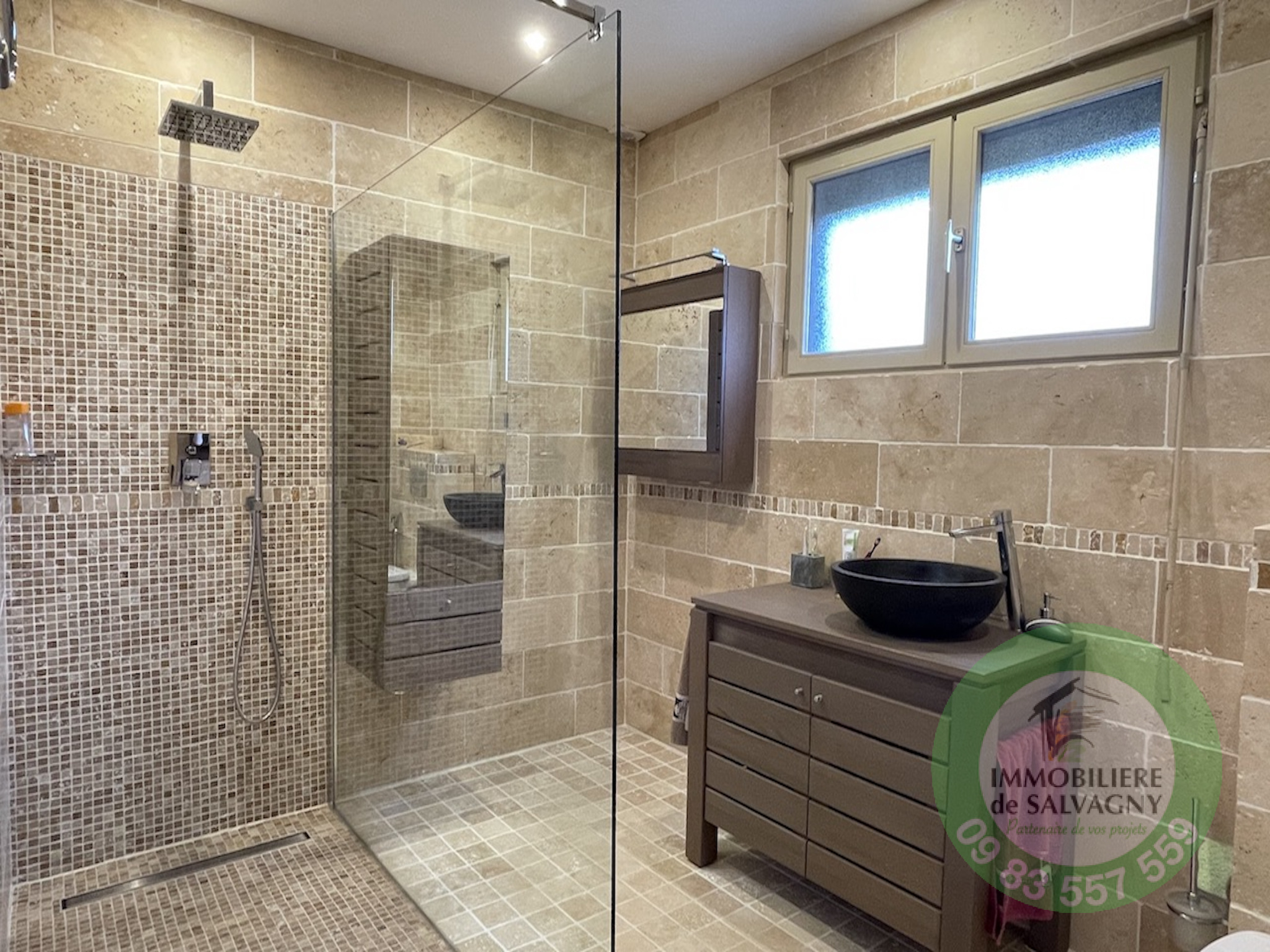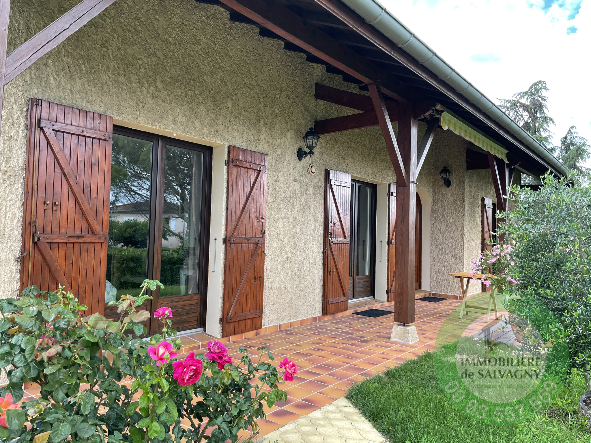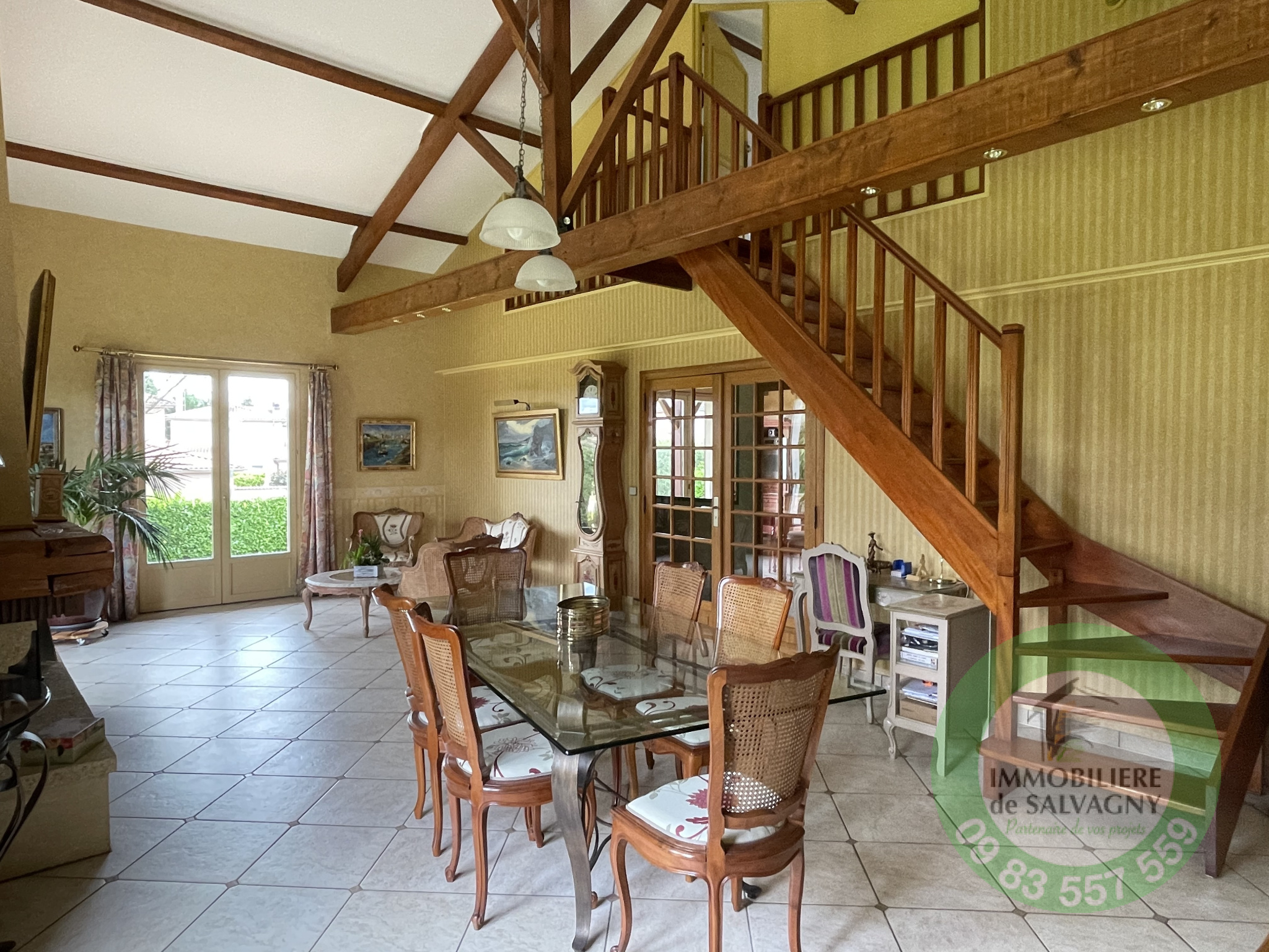 Sur un terrain clos et arboré de 1003 m2 (piscinable), une maison de 1981 d'une surface habitable de 117,24 m2 (surface au sol 288 m2). Extention possible jusqu'à 250 m2, offrant une très jolie vue et proche du centre du village. Elle se compose de plain-pied d'un séjour cathédrale de 37 m2 (avec cheminée) ouvrant sur une terrasse exposée Sud, d'une cuisine équipée séparée (US possible), de 2 belles chambres, d'une magnifique salle d'eau (avec douche italienne et WC), d'une buanderie et d'un WC séparé. Combles aménagés faisant office de troisième chambre avec WC et point d'eau. En complément : un sous-sol complet avec garage double, une salle de jeux chauffée (4ème chambre possible) d'env. 26 m2 et une grande cave. Pour les extérieurs, un abri de jardin. Chauffage par le sol. LES PLUS : secteur recherché - proche centre village - très bon état général. DPE: E. Renseignements et visites : IMMOBILIERE DE SALVAGNY au 09 83 557 559