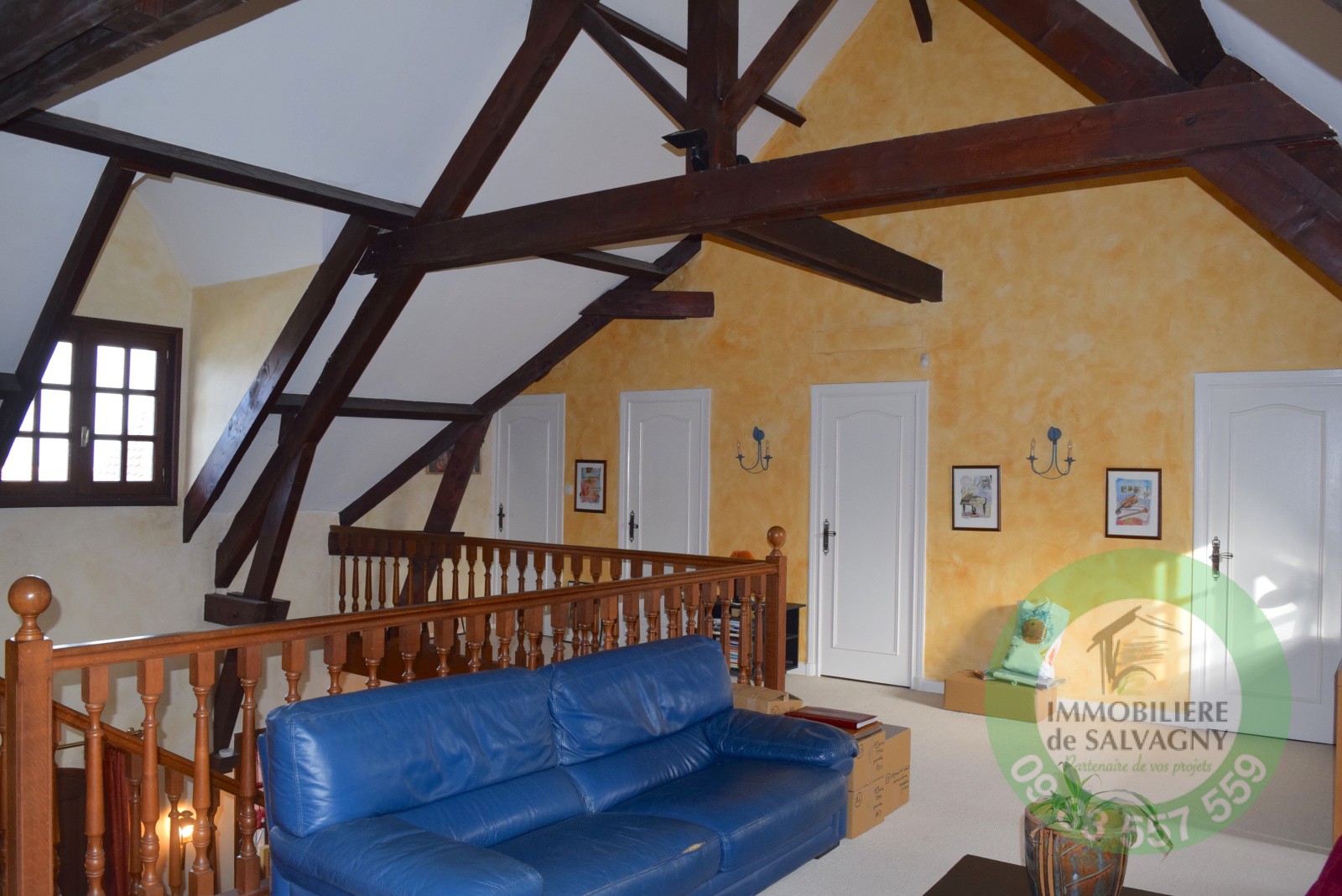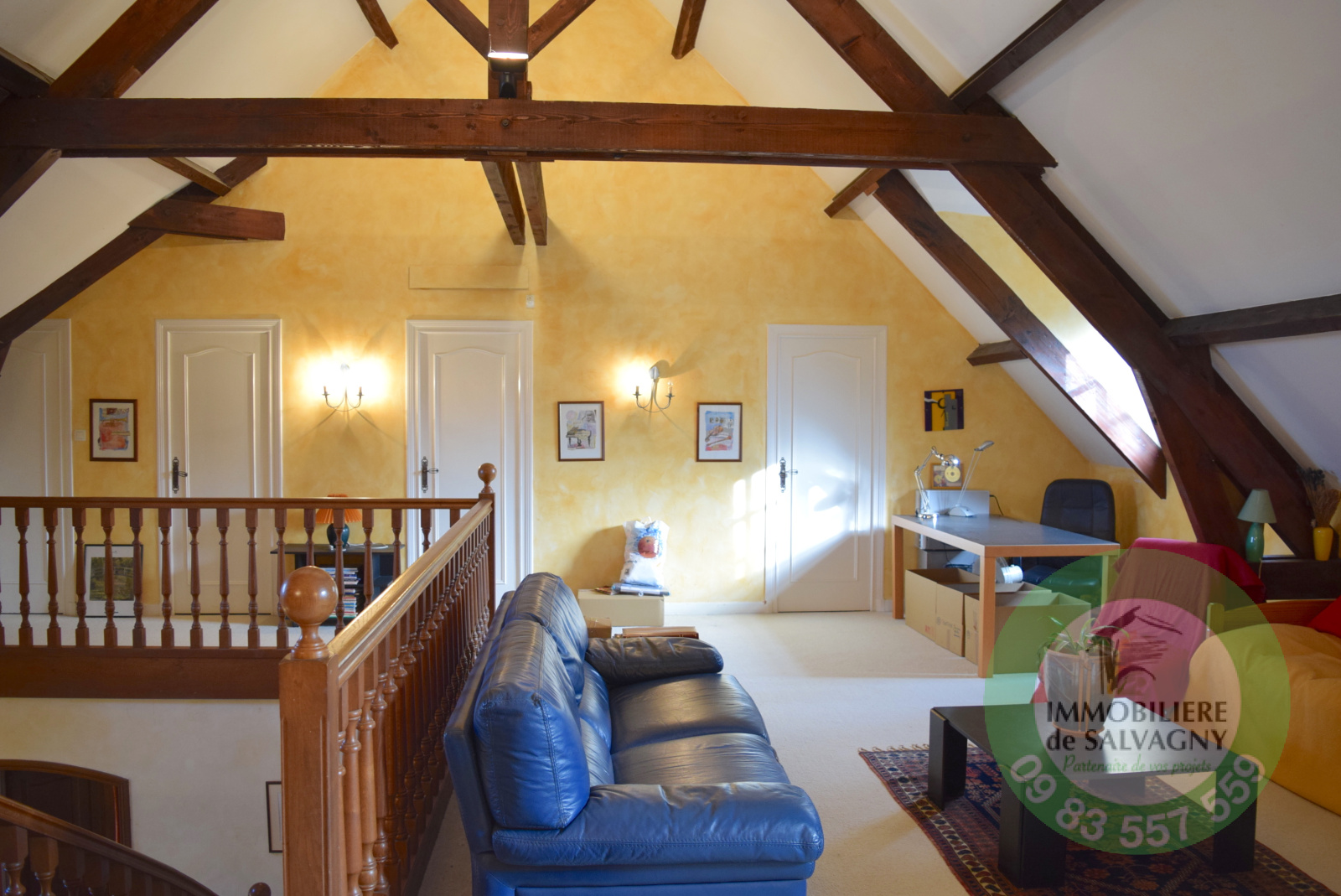 Dans cadre bucolique, véritable maison de caractère type maison de famille de 290 m2 habitables édifiée sur sous-sol et vide sanitaire sur terrain paysagé de 1927 m2 facilement piscinable. Construction réalisée par Les Compagnons (qualité, volumes et prestations intemporelles). Au RDC : séjour lumineux et traversant de 45 m2 avec cheminée, cuisine équipée de 16 m2 avec buanderie attenante, bureau de 15 m2, un coin nuit avec 2 grandes chambres dont l'une ouvrant sur SDE, WC séparé. L'étage est plutôt réservé aux enfants avec un espace ouvert type mezzanine de 43 m2, 4 très grandes chambres, une SDB avec baignoire et douche, dressing, WC séparé. En complément, un sous-sol de 80 m2 avec garage, cave et coin atelier. DPE : D - Immobilière de Salvagny : 09 83 557 559