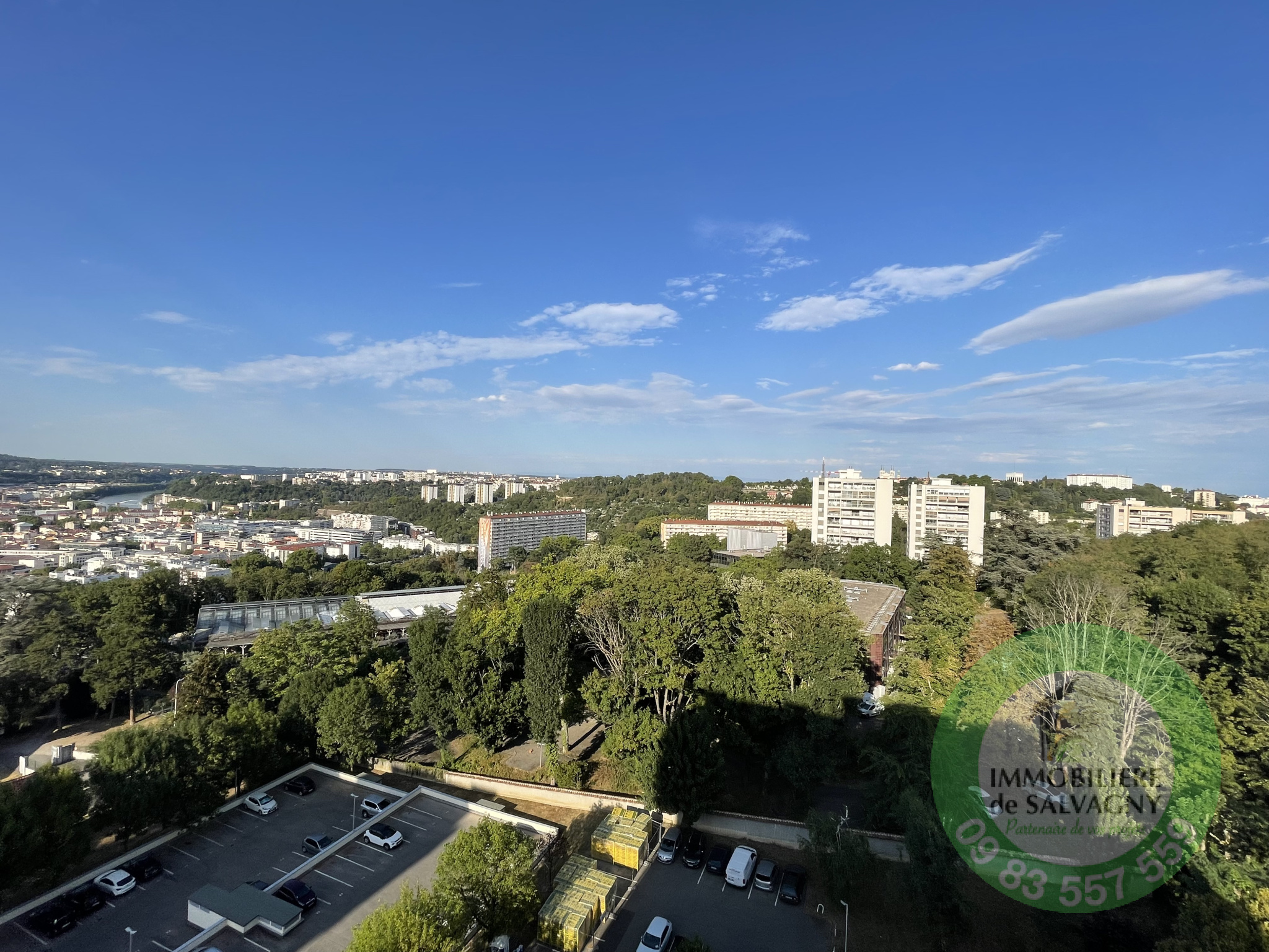 Secteur CHAMPVERT - Dans une résidence sécurisée avec gardien, Immobilière de Salvagny vous propose un appartement T3 d'environ 59 m2 au 14ème étage (sur 15) avec balcon et une vue exceptionnelle !!! En excellent état, il se compose d'une entrée avec placard, d'un séjour ouvrant sur le balcon, d'une cuisine semi-ouverte entièrement équipée, de deux chambres, d'une salle d'eau et d'un WC séparé. En complément : une place de parking privative, une cave, un local à vélo (commun à la résidence). Environnement calme, commerces (y compris marché) et TCL au pied de la résidence. Chauffage individuel électrique. DPE D. Pas de procédure en cours. Informations et visites au 09 83 557 559