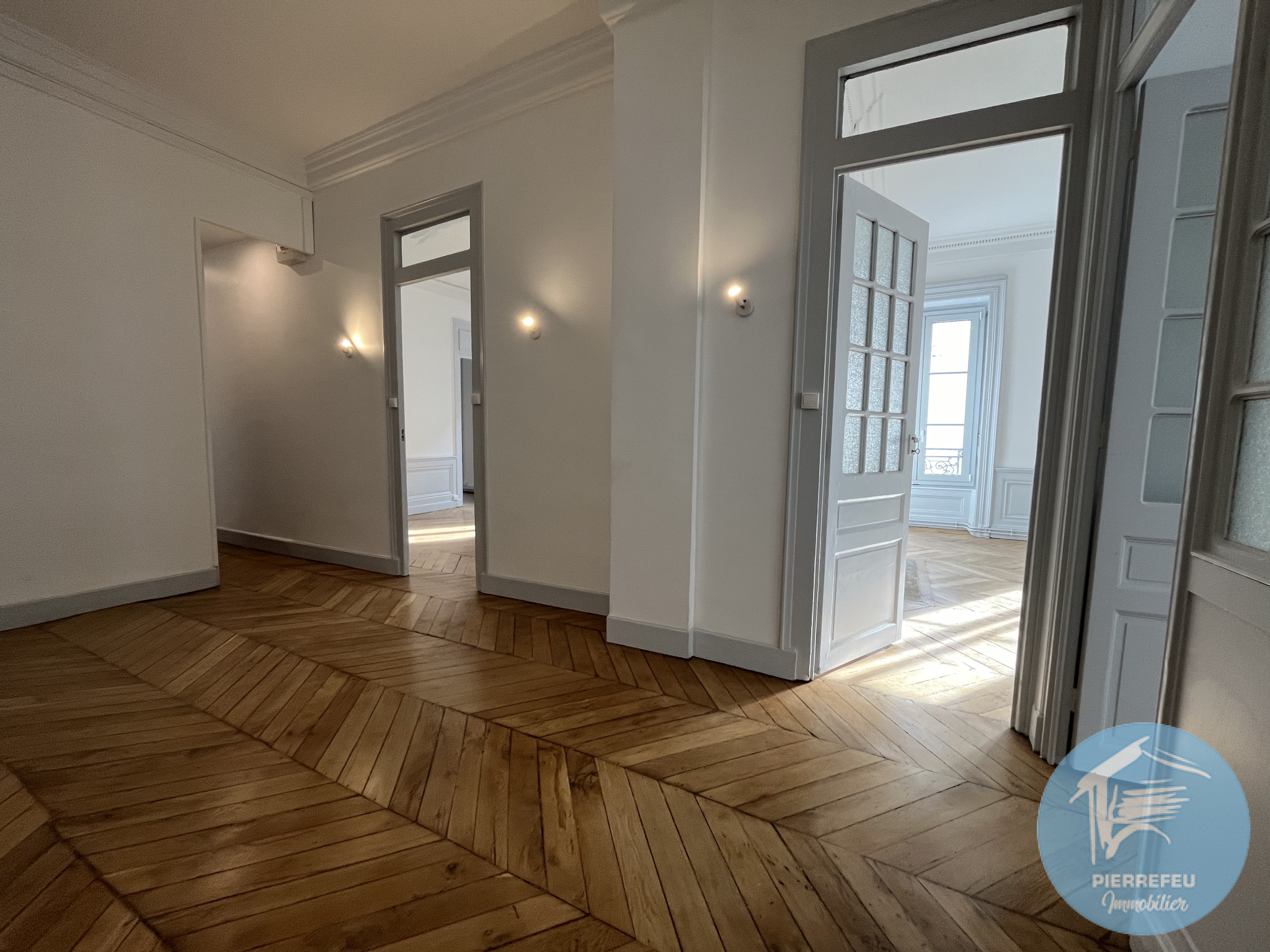 PIERREFEU IMMOBILIER vous propose au coeur du Triangle d'Or, à 1mn à pied de la place Maréchal Lyautey, très bel appartement bourgeois d'une surface Carrez de 102,63 m2, situé au 3ème étage (S/§)avec ascenseur, dans un immeuble type Haussmannien de 1860, sur son terrain. Ce bien, refait à neuf en 2023, vous offrira le confort des prestations contemporaines avec ses fenêtres en aluminium double vitrage et une cuisine moderne entièrement meublée et équipée. Vous bénéficierez également du charme des prestations de l'ancien, parquet en bois massif, corniches et cheminée, grand hall d'entrée, et belle hauteur sous plafond. Le bien comprend deux chambres, une salle d'eau (neuve), ainsi qu'un wc séparé. Lumineux et Traversant Sud/Ouest, vous pourrez apercevoir les berges du quai du Rhône depuis le salon. Une cave et un grenier complètent le bien. Chauffage individuel Gaz. Quote part annuelle des charges copropriété 1660 euros. Fonds travaux 76€/an. Copropriété de 14 Lots principaux. Pas de procédure en cours. libre immédiatement. Toutes commodites au pied de l'immeuble dont un parking (LPA Morand / abonnements possibles). Notre avis : Immeuble Bourgeois avec ascenseur, Emplacement prisé, Rénovation complète, Dépense énergétique maîtrisée (DPE : C). Visites et renseignements : Muriel Chauplannaz - Agent commercial de la SARL Pierrefeu Immobilier - Immatriculée au R.S.A.C de Lyon sous le numéro 843 741 570.