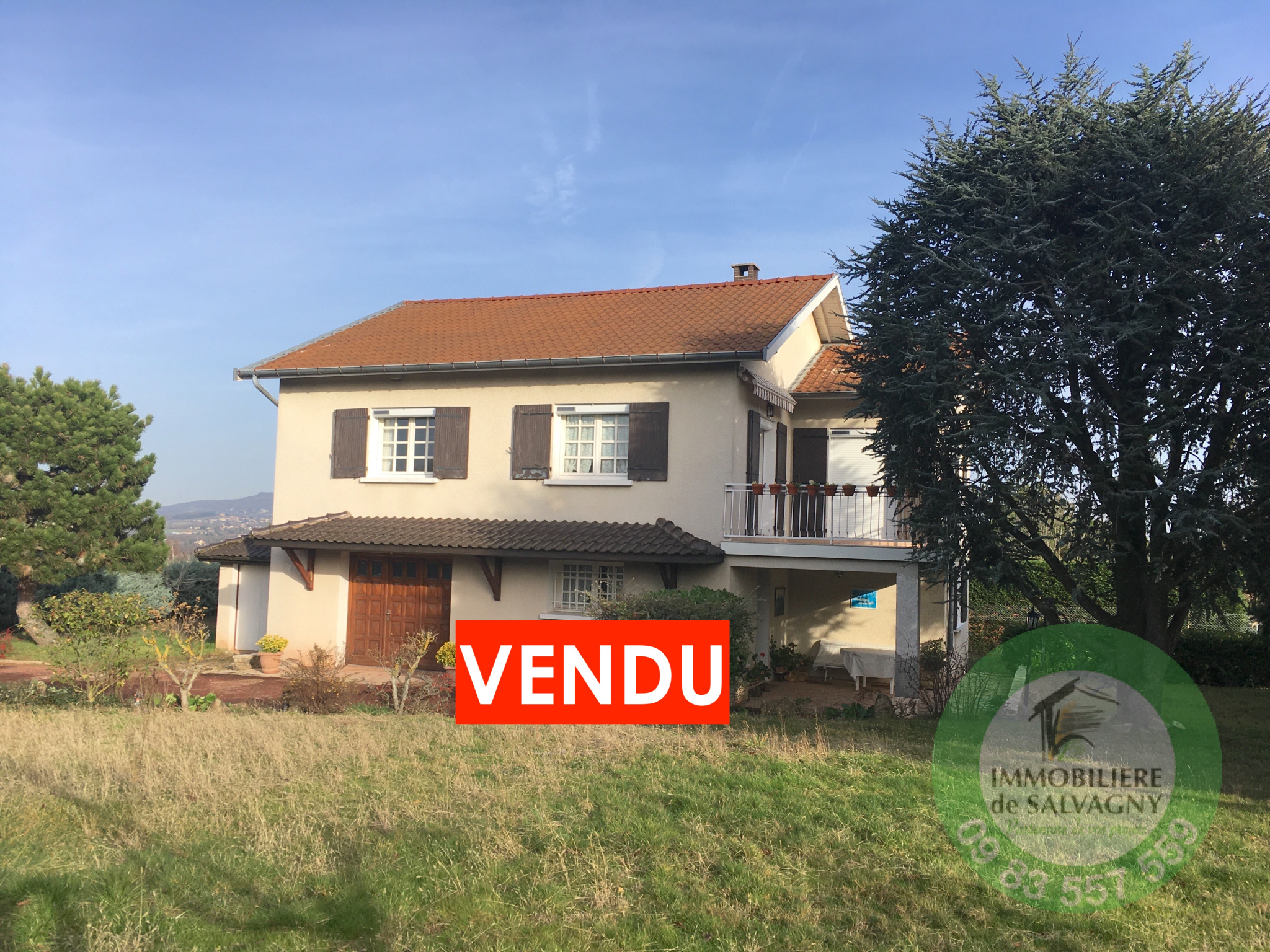 Immobilière de Salvagny vous propose à la vente une maison de 142 m2 à 5 minutes du centre de Marcy l'Etoile, le tout sur un terrain de 1500 m2. Le premier étage se compose d'une entrée, d'un double séjour d'environ 34 m2 avec une cheminée, d'une cuisine fermée, d'un wc séparé, 2 chambres et d'une salle de bain. De plain pied, grande entrée, une chambre avec salle d'eau et une cuisine d'été. En complément : un garage double et un garage simple. Terrain paysagé. Cette maison est équipée d'un forage pour l'eau, d'un portail motorisé, de la climatisation et de volets roulants solaires. Contact au 09 83 557 559.