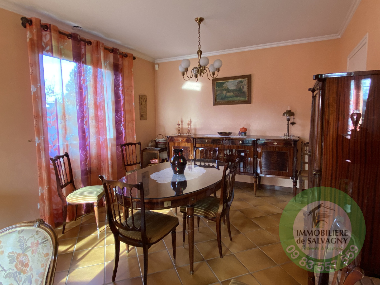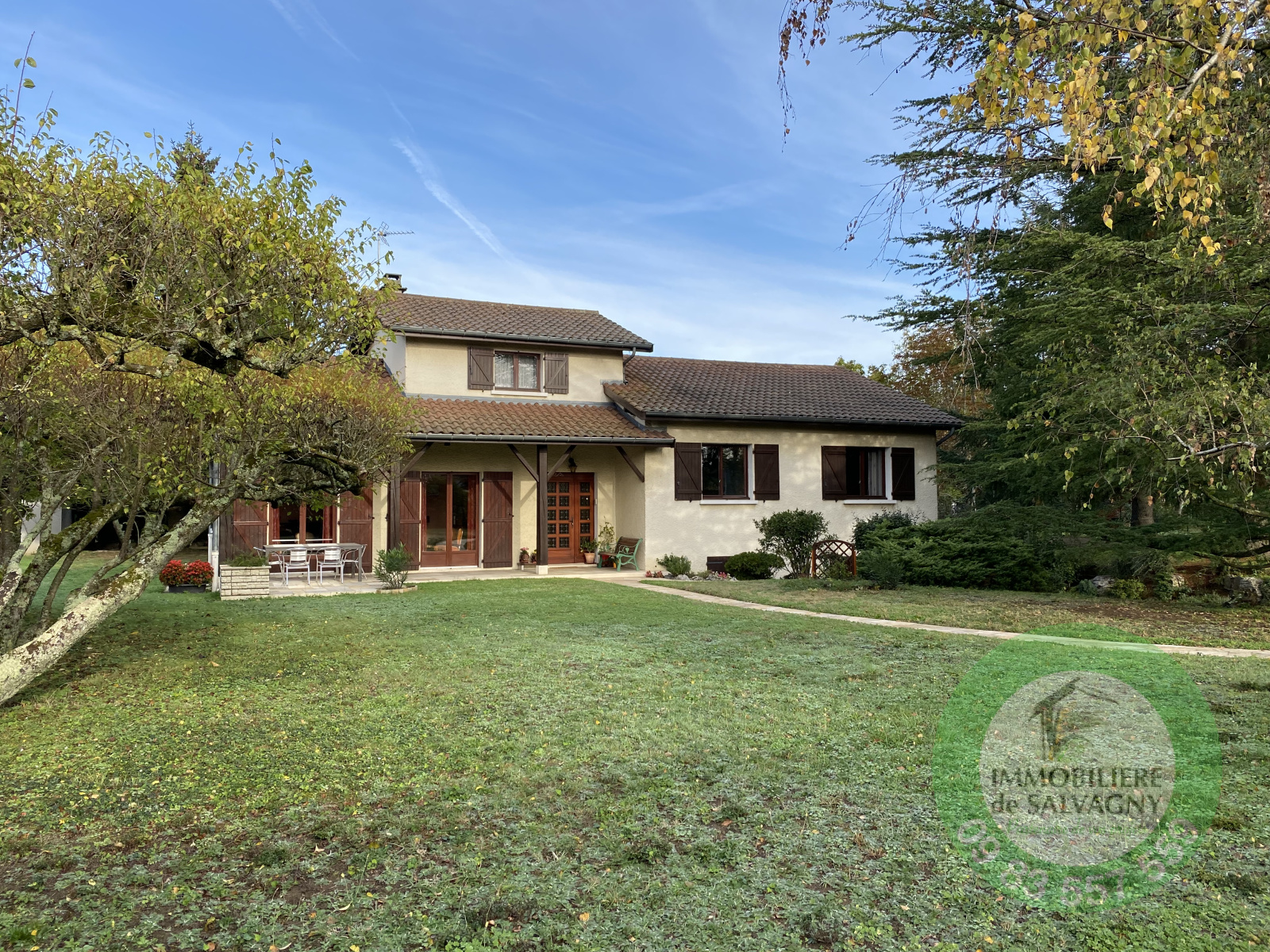 Immobilière de Salvagny vous propose en EXCLUSIVITE, cette maison familiale d'env. 154 m2, édifiée sur un terrain plat et arboré d'env. 1502 m2, dans un quartier résidentiel. Maison parfaitement adaptée à une famille car elle dispose : d'un espace enfants composé de 4 chambres, 2 pièces d'eau, un WC séparé et un espace parents avec suite parentale et bureau. Au RDC : une pièce à vivre avec cheminée ouvrant sur terrasse et jardin, une cuisine séparée (US possible) avec buanderie attenante. En complément : un sous-sol carrelé avec un garage pour deux véhicules, une pièce pouvant être aménagé en espace à vivre et un cellier. Chauffage électrique. Quelques travaux de rafraichissement peuvent être à prévoir. LES PLUS : Environement bucolique, CALME, sans vis-à-vis, terrain piscinable et extension possible. DPE : E - Pour tous renseignements et visites : nous contacter.