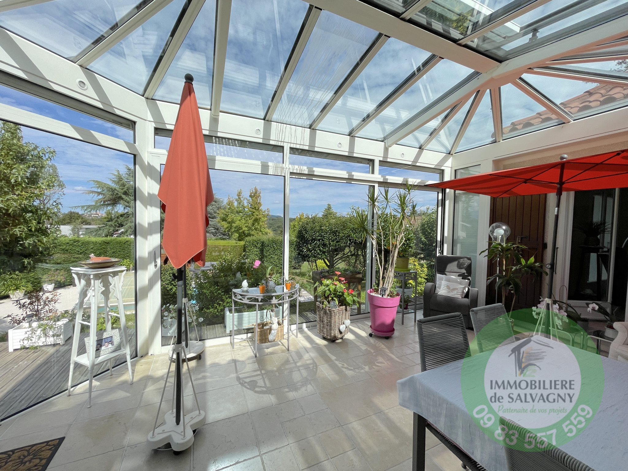 Immobilière de Salvagny vous présente sur la commune de Charbonnières-les-Bains, une maison de type plain-pied d'environ 144 m² édifiée sur sous-sol (surface au sol : 259 m²). Superbe terrain arboré de 1157 m² avec piscine et vue dégagée. Emplacement calme et sans vis à vis. Elle se compose d'une vaste entrée, d'une cuisine dînatoire ouvrant sur une véranda, d'un beau séjour avec poêle à granules, de 3 chambres, de deux salle d'eau. Le sous-sol est semi-enterré et dispose d'une 4ème chambre avec salel d'eau, de nombreux rangements, d'un vaste garage et d'une pièce supplémentaire pouvant être aménagé en studio indépendant. Chauffage au gaz de ville. Climatisation dans le séjour. Très bon état général. Bus accessibles à pied. Renseignements et visites : contacter Sylvie Machado - Immobilière de Salvagny by Pierrefeu Immobilier.
