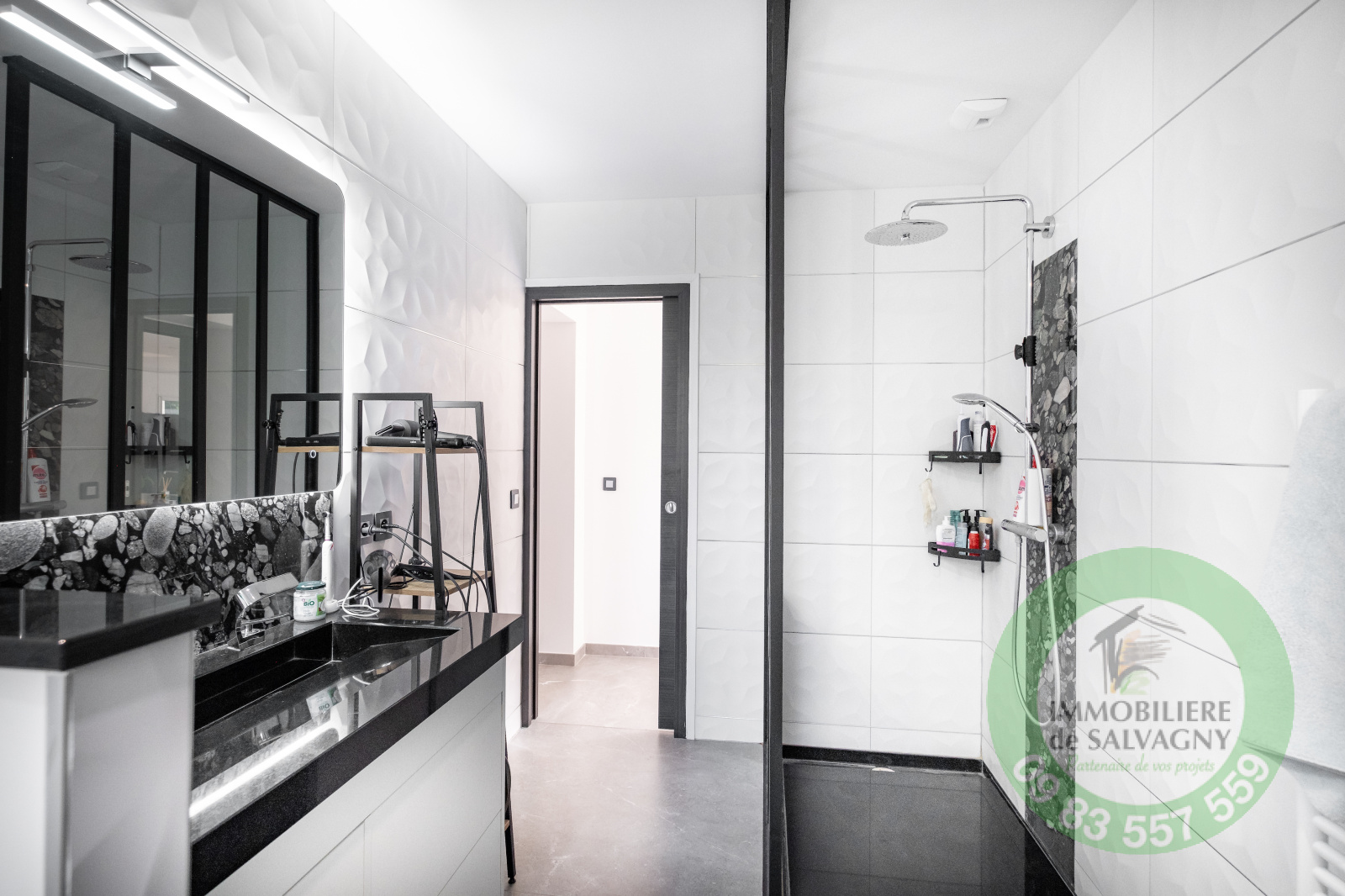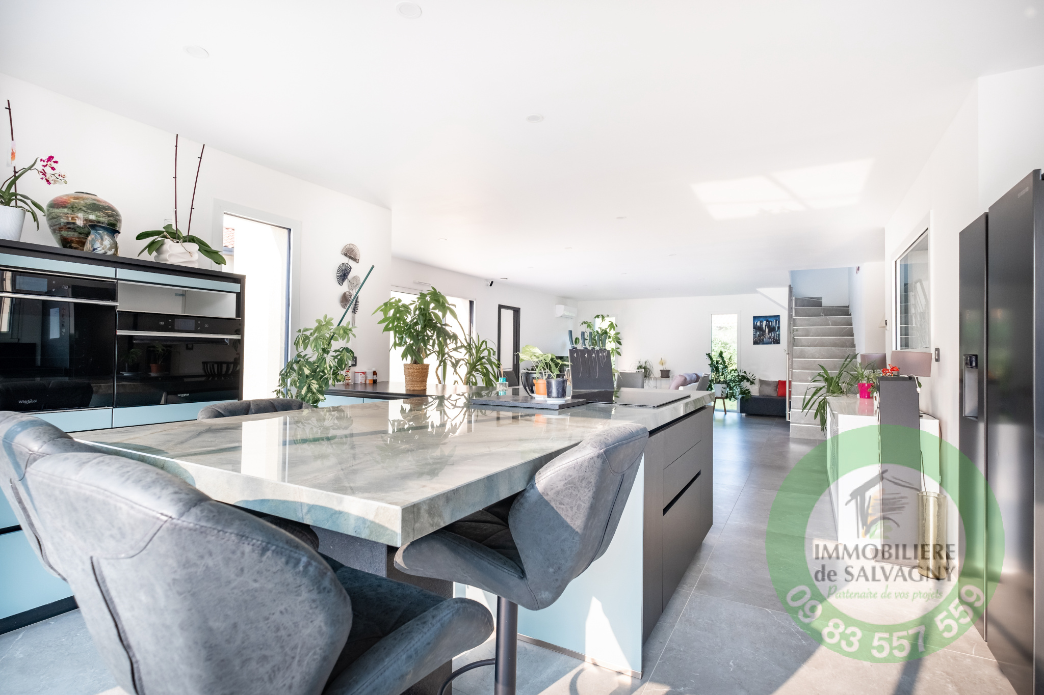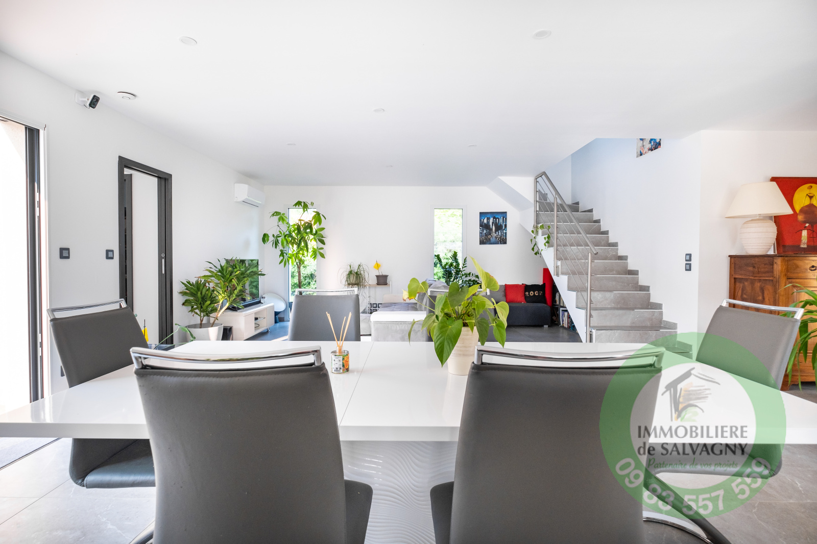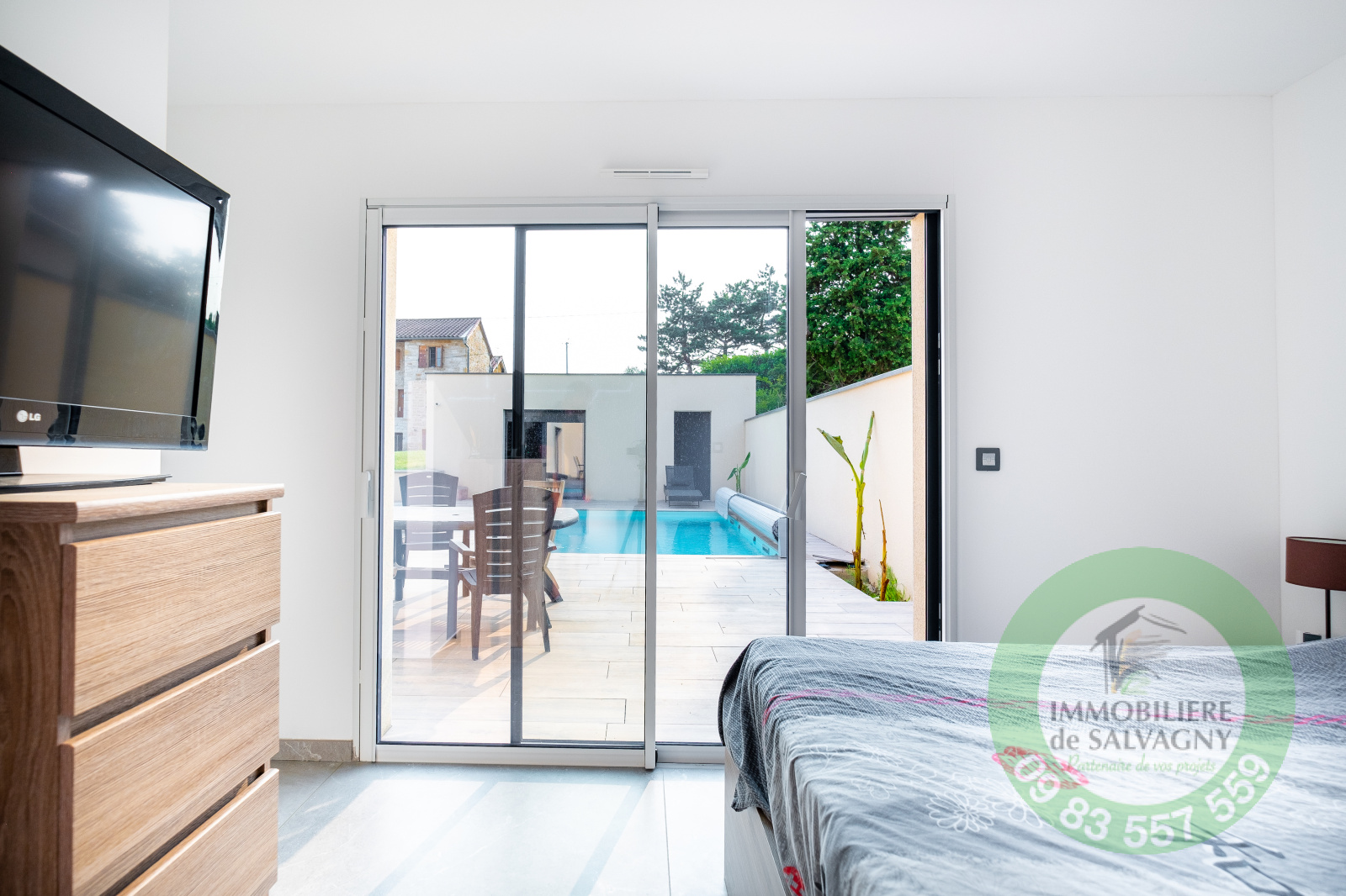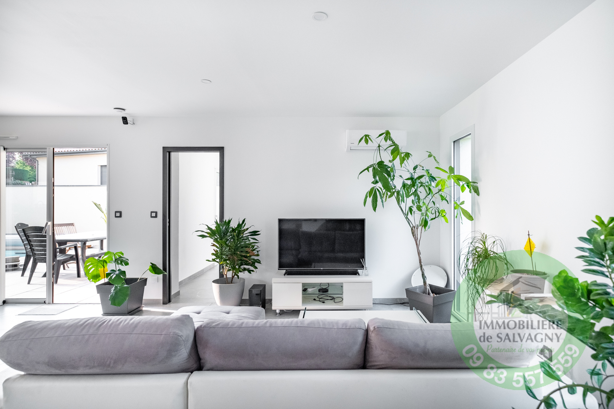 Immobilière de Salvagny vous présente, cette superbe maison contemporaine de 150 m2 construite en 2021 sur un terrain de 1007 m2. Vous serez séduits par ses prestations !!! Environnement calme et paisible. De plain-pied, une pièce à vivre lumineuse de 64 m2 ouvrant sur une terrasse de 78 m2, une cuisine type US entièrement équipée, une suite parentale de 30 m2 (dont une salle de bains avec baignoire, douche et WC et un dressing aménagé), un cellier / buanderie, un WC séparé. A l'étage, deux belles chambres avec placard mural et une superbe salle d'eau avec douche et WC. En complément : garage, abri voiture, une cave, parkings. En extérieur : une piscine au sel (6X3) avec volet motorisé, un pool-house pouvant être aménagé en chambre d'amis (ou bureau). Prestations de qualité : volets motorisés en Alu, systéme domotique pour pilotage des volets et des éclairages, chauffage par PAC, climatisation, adoucisseur d'eau, alarme,... Commerces à 2 mn en voiture. DPE : A - Pour plus de renseignements et visites : nous contacter.