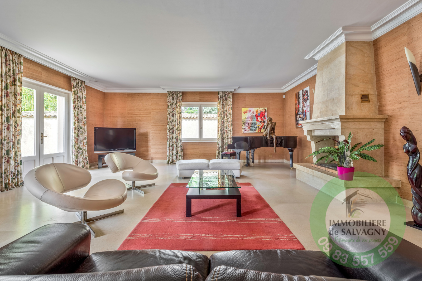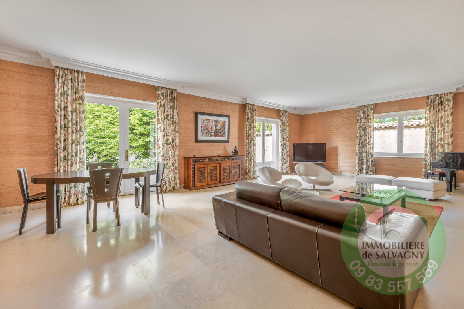 Emplacement exceptionnel et rare sur ECULLY CENTRE - Belle maison d'architecte de 1985 de 185 m2 habitables (355 m2 de surface au sol) aux prestations de qualité. Pièce de réception de 63 m2 avec cheminée ouvrant sur une terrasse exposée SUD. Cuisine séparée équipée pouvant être ouverte de 17 m2 avec accès à la terrasse. Deux magnifiques suites parentales au RDC. Une suite parentale ouvrant sur une loggia au 1° étage. Au sous-sol : une salle de sport et son hammam, une cave aménagée, une buanderie et un vaste garage de 87 m2 (stationnement jusqu'à 5 véhicules). Cette maison construite dans les règles de l'art offre des possibilités d'agrandissement (charpente traditionnelle avec combles aménageables). Terrain clos de murs de 1188 m2 facilement piscinable. Chauffage par le sol au gaz de ville. DPE : C - Immobilière de Salvagny : 0983 557 559