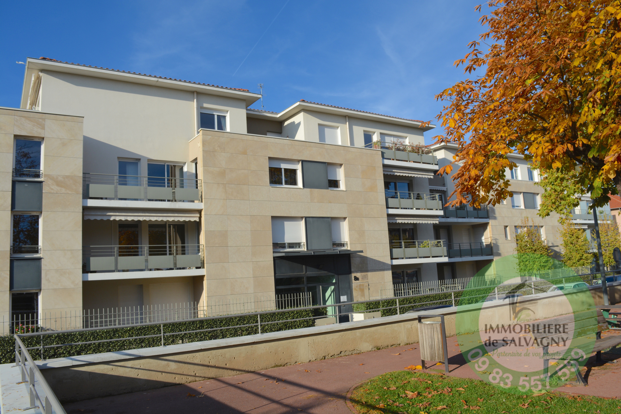 L'Immobilière de Salvagny vous propose au coeur du village, dans une residence de standing de 2006, un appartement de type T2 de 57 m2 avec balcon. Situé au 1er étage avec ascenseur, il se compose d'une entrée avec placard, d'un salon de plus de 21 m2 donnant sur un balcon de 6 m2 sans vis à vis, d'une cuisine séparée donnant également sur le balcon, d'une belle chambre de 14 m2 avec parquet et salle de bains attenante. WC séparé. Un garage fermé en sous-sol complète ce bien. Charges annuelles de copropriété de 928 €. Contact au 0983 557 559.