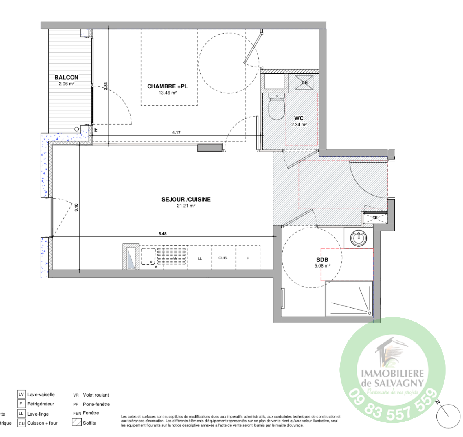 DERNIÈRE OPPORTUNITÉ - Idéal premier achat ou investisseur. Au coeur du village de LA TOUR DE SALVAGNY (à coté de l'église), dans une petite résidence de standing à l'architecture sobre et contemporaine, IMMOBILIERE DE SALVAGNY vous propose un T2 de 41,87 m2, composé d'une pièce de vie d'environ 21 m2, d'une chambre de 13 m2 ouvrant sur un balcon, d'une salle d'eau et un WC séparé. Garage en sous-sol en supplément. Situation exceptionnelle - PACK CUISINE OFFERT - Disponible en septembre 2022 - Pour plus de renseignements : 09 83 557 559