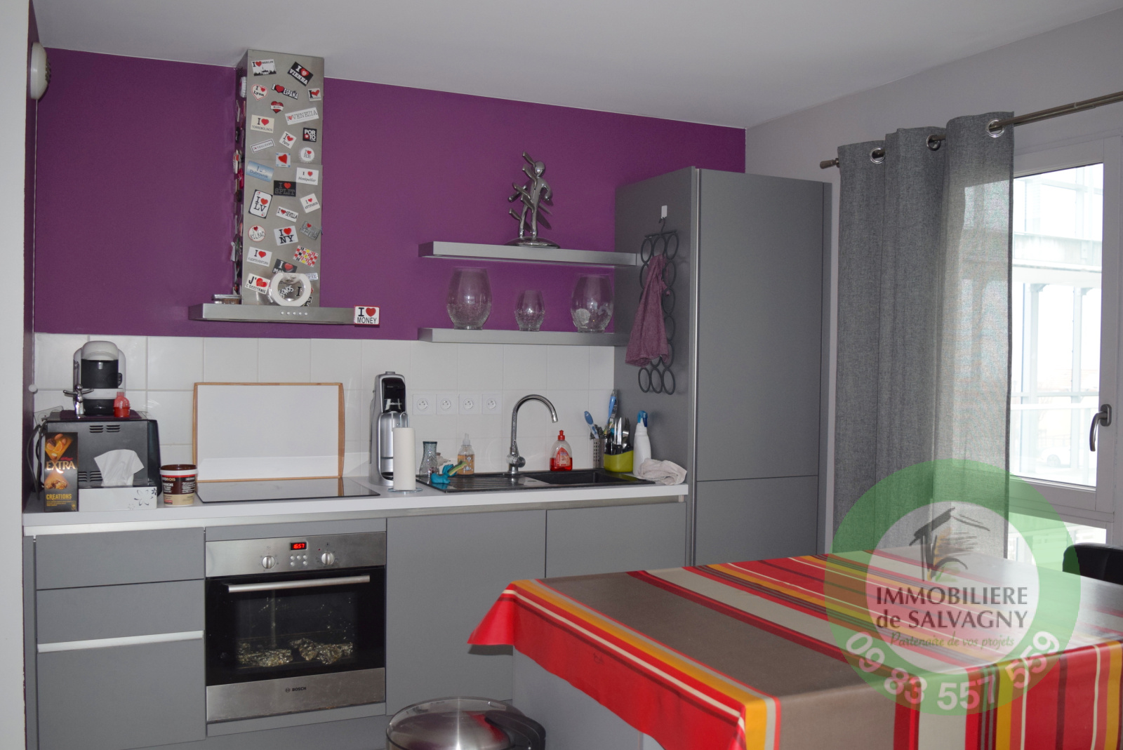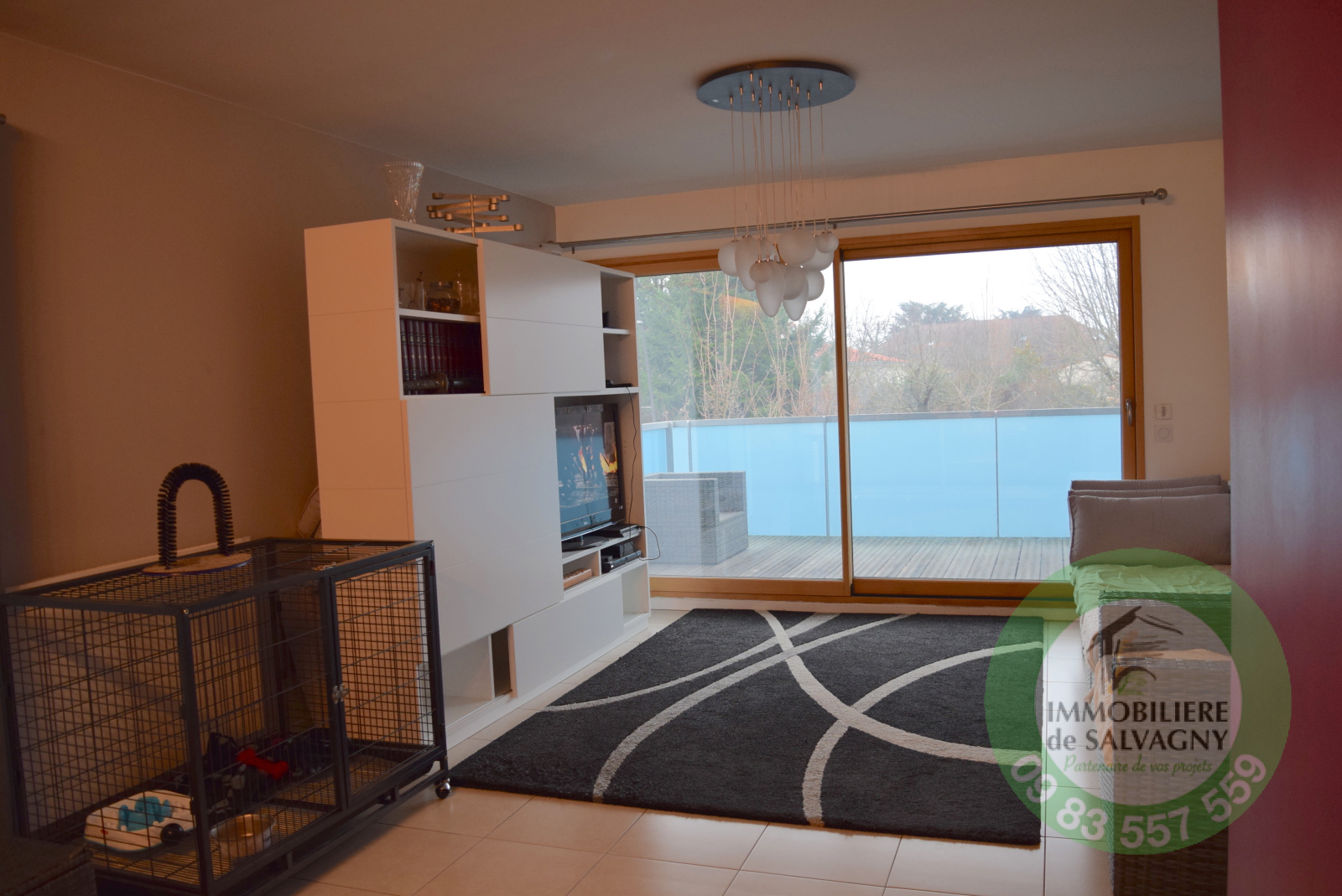 L'Agence Immobilière de Salvagny vous propose en exclusivité un beau T3 situé dans une coproprité de 2012 (normes BBC - ascenseur) au centre de La Tour de Salvagny. Il se compose d'une entrée avec placard, d'une grande pièce de vie de 29 m2 ouvrant sur une terrase de 10 m2 (exposition Sud), une cuisine US équipée avec ilôt central, 2 belles chambres de 14 m2 et de 12 m2, salle d'eau, WC séparé. Prestations récentes. Un garage fermé en sous-sol complète ce bien. Charges mensuelles de 192 € comprenant le chauffage et l'eau chaude. Contact au 09 83 557 559