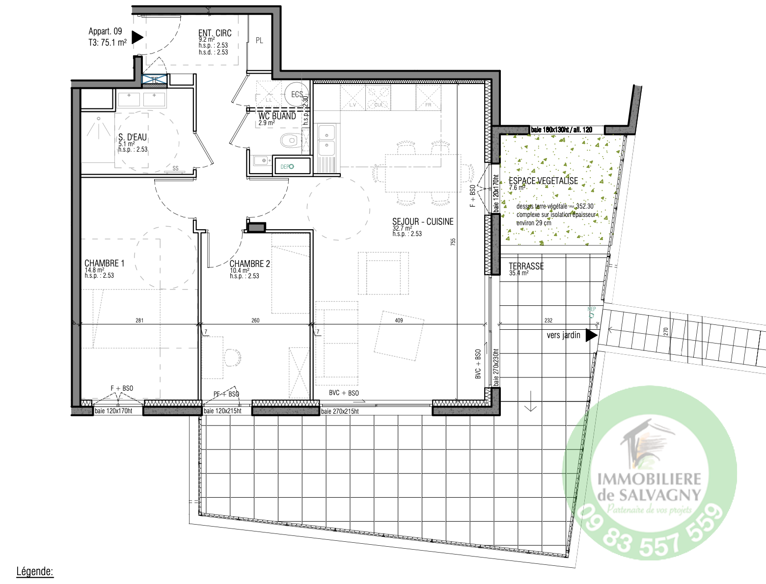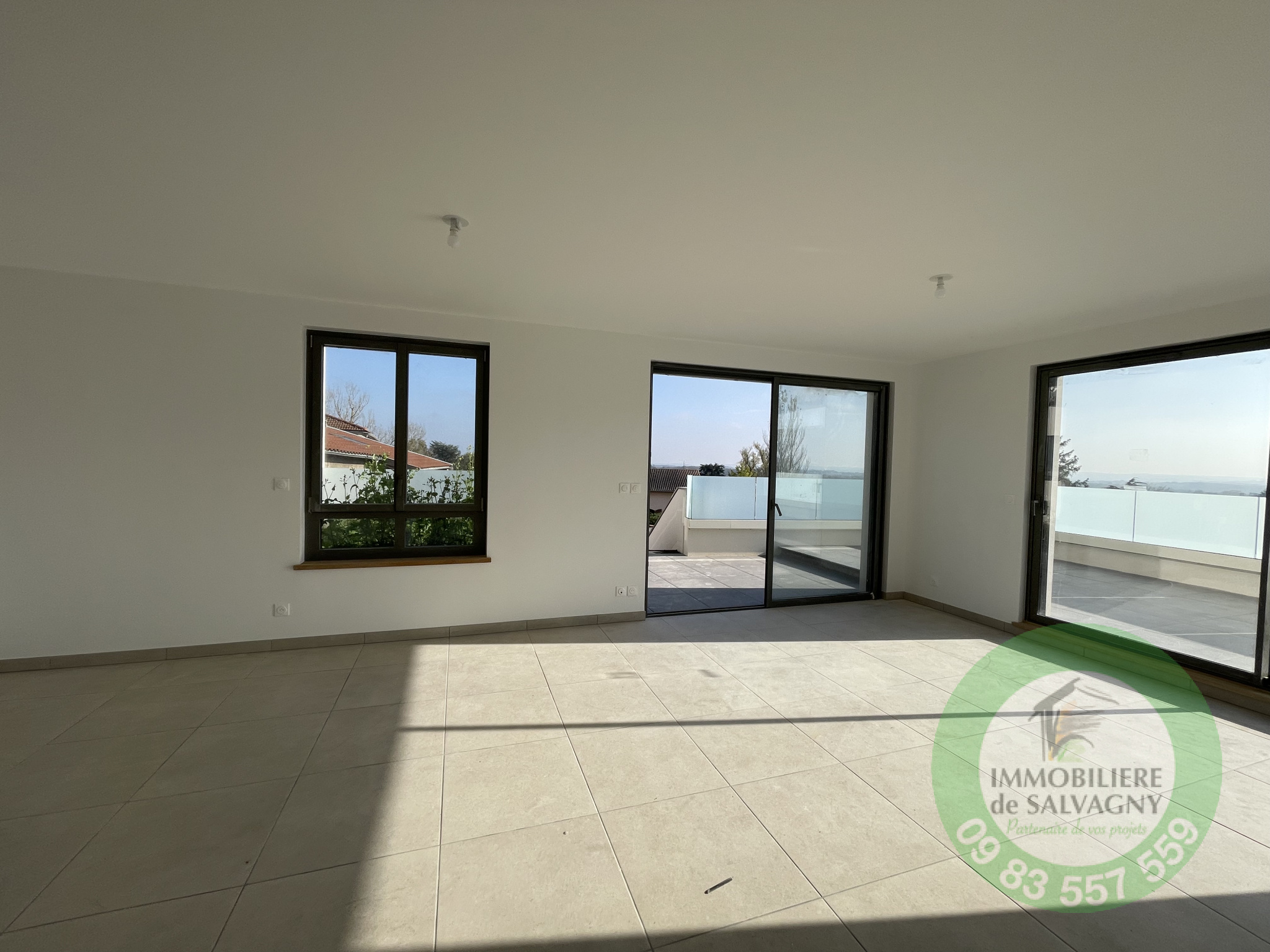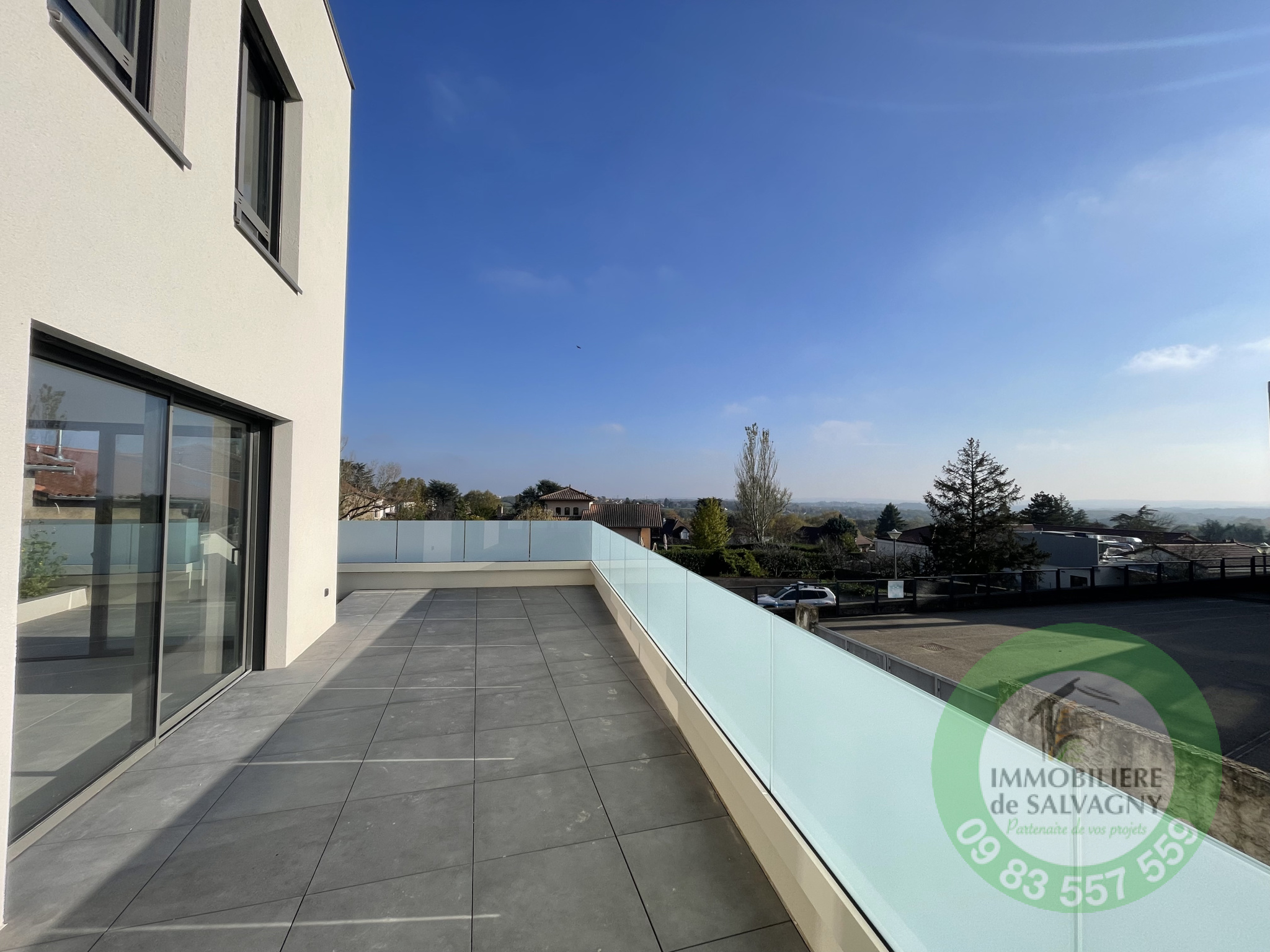 Disponible de suite au 4 rue de Lyon et EN EXCLUSIVITÉ chez Immobilière de Salvagny, au coeur du village de La Tour de Salvagny, résidence Les Coquelicots...le plaisir de tout faire à pied ! Vous bénéficiez d'une qualité de vie privilégiée, dans une résidence intimimiste aux prestations haut de gamme. Situé au 1er étage, exposé sud/est, superbe T3 de 73,35 m², proposant une pièce de vie de 32 m2 ouvrant sur une terrasse de plus de 36 m², 2 grandes chambres, salle d'eau, buanderie et WC séparé. En complément l'accès à un jardin privatif de 132 m². Prestation unique : plancher chauffant et rafraîchissant par pompe à chaleur. Les plus : huisseries en aluminium haut de gamme, volets de type BSO (brise-soleil orientable) motorisés en aluminium, carrelage 60x60 en grès cérame pour la partie jour, parquet chêne français dans l'espace nuit, peinture de finition de qualité, visiophone et boite aux lettres connectés, garage (en supplément) en sous-sol avec possibilité d'une porte motorisée et prise IRVE. Local à vélo. Une vie en coeur de bourg (commerces, services, écoles, bus, navette gratuite pour la gare). Liaison A89/M6 à 2 mn. Informations et réservations, contacter Sylvie MACHADO, Immobilère de Salvagny By Pierrefeu Immobilier.