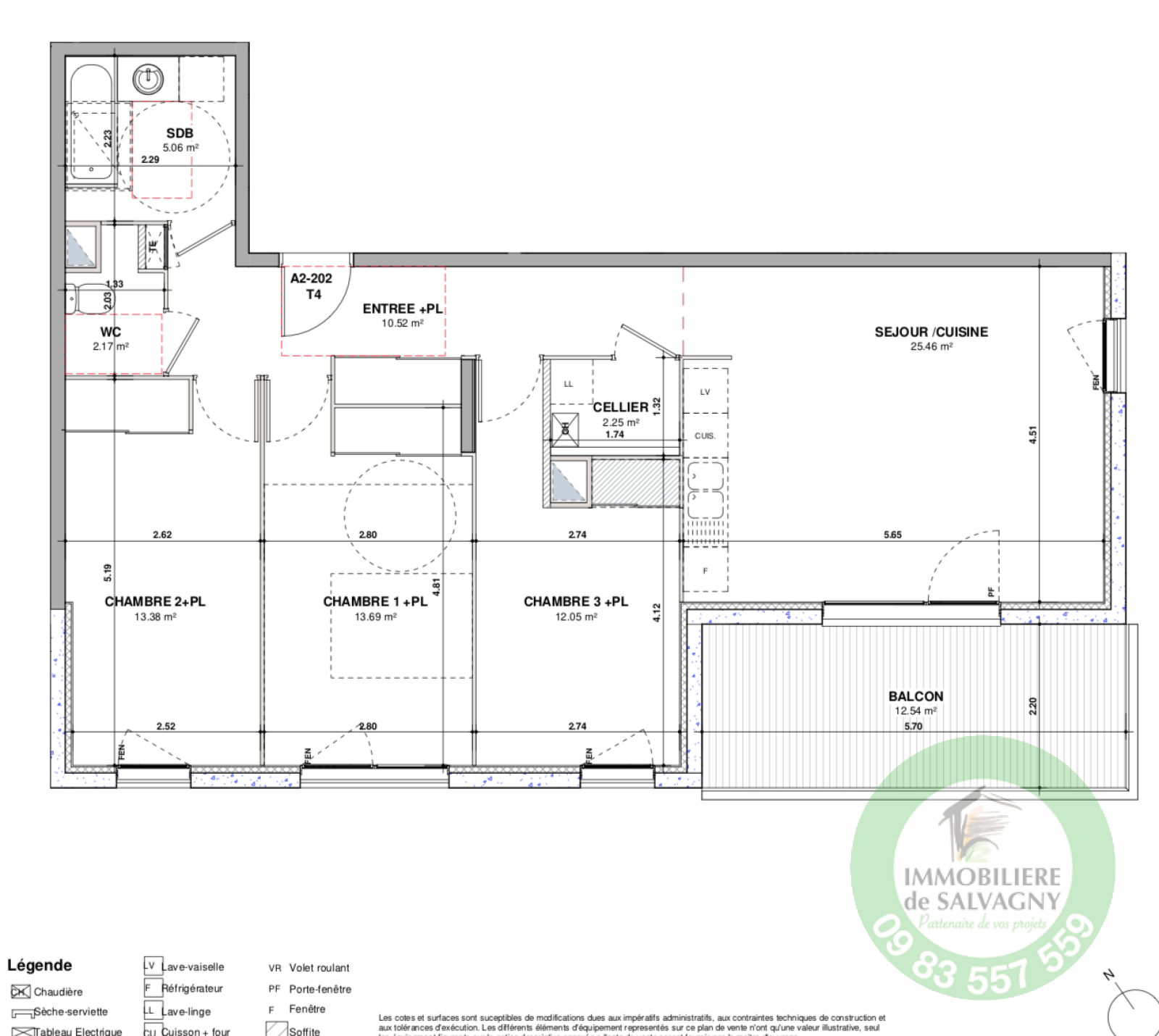 DERNIERE OPPORTUNITE - Au coeur du village de LA TOUR DE SALVAGNY (à côté de l'église), dans une petite résidence de standing à l'architecture sobre et contemporaine, IMMOBILIERE DE SALVAGNY vous propose un T4 (ou grand T3) de 84 m2 situé au 2ème et DERNIER ETAGE. Il se compose d'une pièce de vie ouvrant sur un balcon / terrasse d'env. 12 m2 (expo Sud/Ouest), trois chambres avec placard mural pour chacune, une salle de bains, WC séparé. En supplément : un garage au sous-sol - Situation exceptionnelle - AU CALME - Chauffage individuel au gaz - Pour plus de renseignements : 09 83 557 559