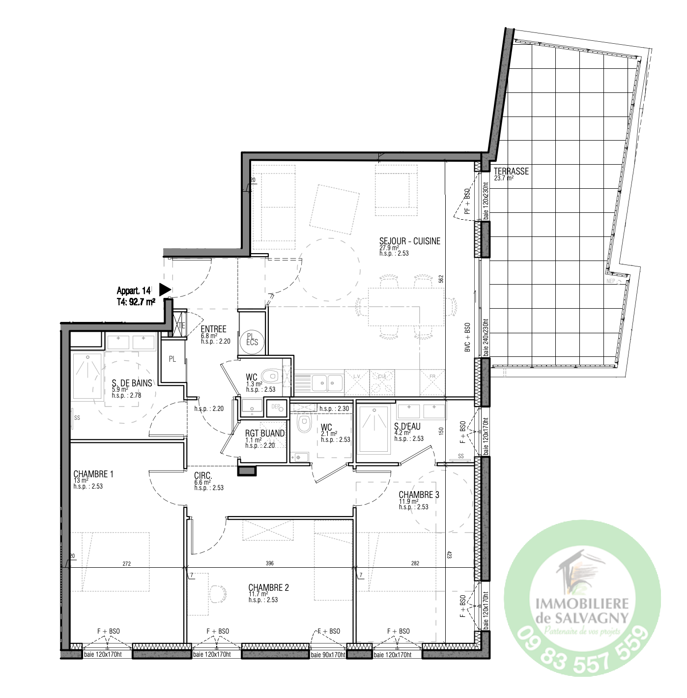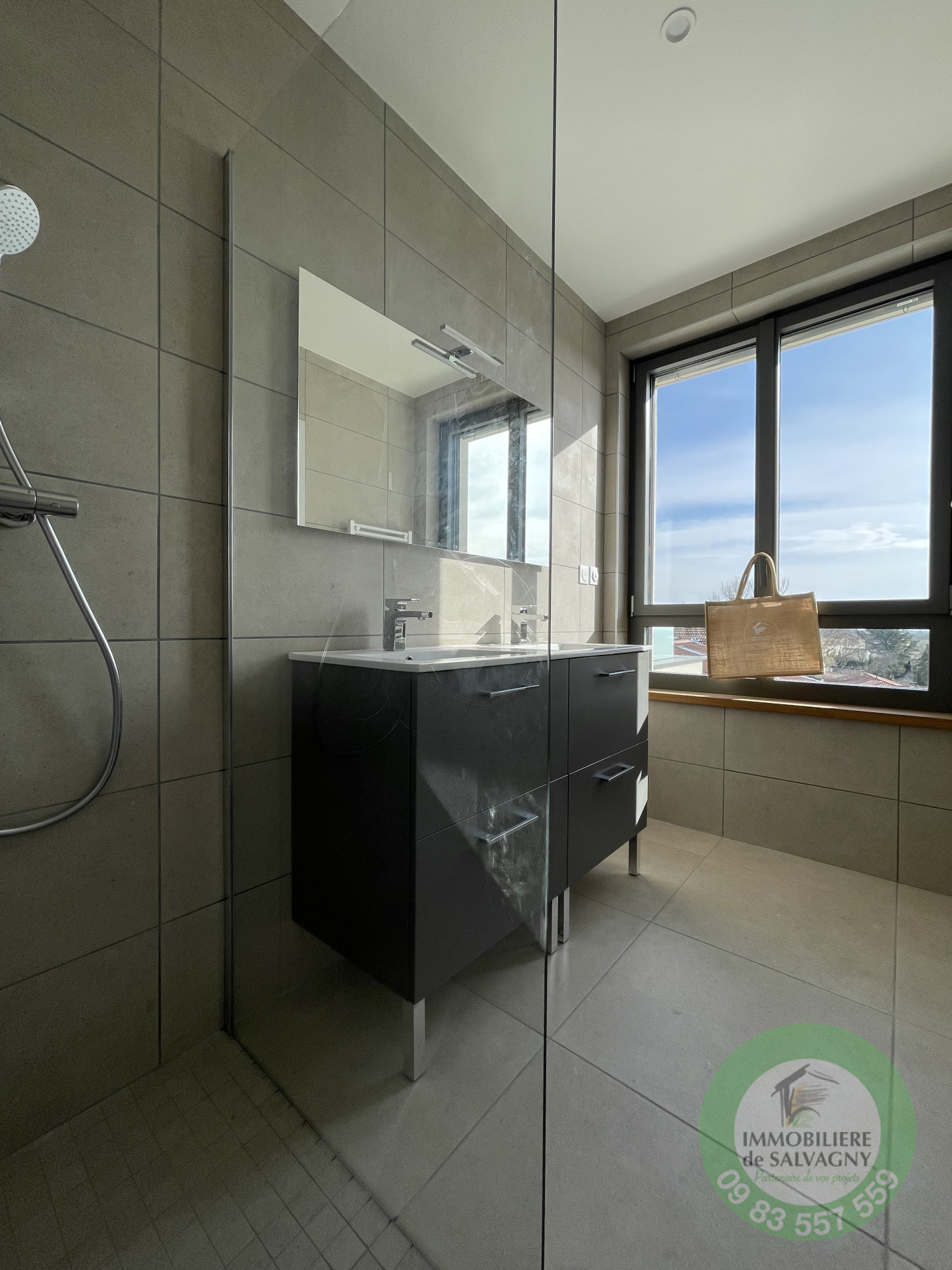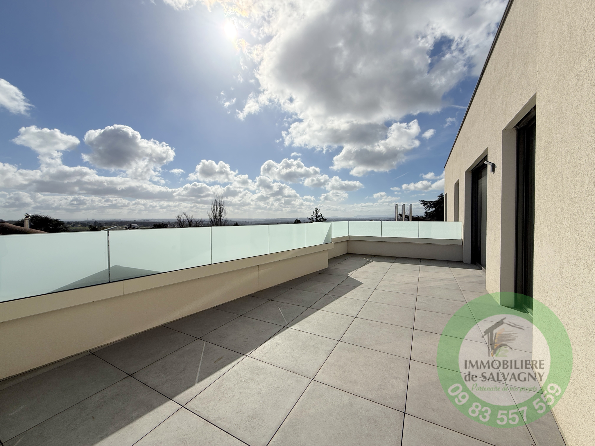 Disponible de suite au 4 rue de Lyon et EN EXCLUSIVITÉ chez Immobilière de Salvagny, au coeur du village de La Tour de Salvagny, résidence les Coquelicots... le plaisir de tout faire à pied ! Vous bénéficiez d'une qualité de vie privilégiée, dans une résidence intimimiste aux prestations haut de gamme. Situé au 2ème étage, exposé Est, superbe T4 de 90,66 m², proposant une pièce de vie ouvrant sur une terrasse de 23,7 m², 3 grandes chambres dont une avec salle d'eau attenante, une salle de bains, une buanderie et 2 WC séparés. Prestation unique : plancher chauffant et rafraîchissant par pompe à chaleur. Les plus : huisseries en aluminium haut de gamme, volets de type BSO (brise-soleil orientable) motorisés en aluminium, carrelage 60x60 en grès cérame pour la partie jour, parquet chêne français dans l'espace nuit, peinture de finition de qualité, visiophone et boite aux lettres connectés, garage (en supplément) en sous-sol avec possibilité d'une porte motorisée et prise IRVE. Local à vélo. Une vie en coeur de bourg (commerces, services, écoles, bus, navette gratuite pour la gare). Liaison A89/M6 à 2 mn. Pour renseignements contacter Sylvie MACHADO, Immobilière de Salvagny By Pierrefeu Immobilier.