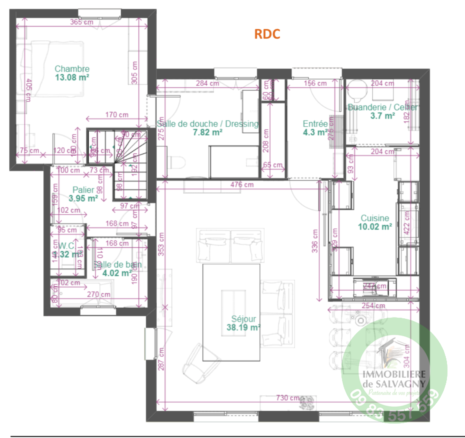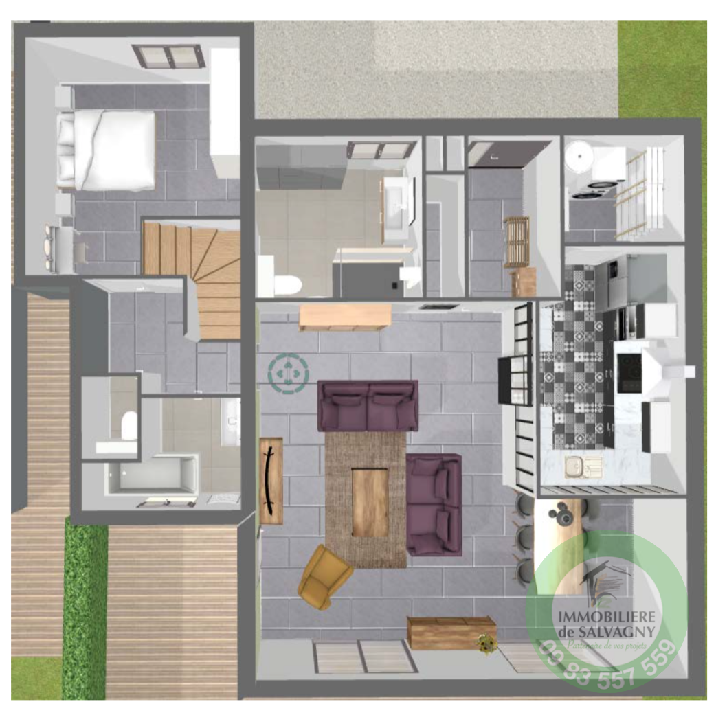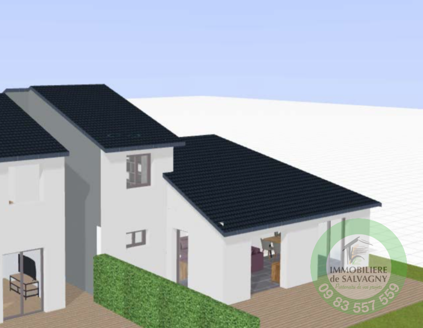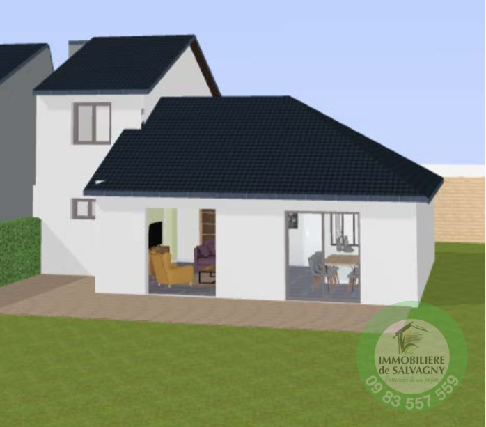 A deux pas du CENTRE du village, IMMOBILIERE DE SALVAGNY vous propose en EXCLUSIVITE une maison (mitoyenne sur 1 coté, hors copropriété) d'environ 109 m2 A RENOVER. Elle est vendue en plateau à aménager selon vos besoins et vos envies. Vous béneficiez d'un terrain plat et clos d'une surface de 700 m2. A votre disposition, un projet d'aménagement déja étudié par un maitre d'ouvrage offrant au RDC : une entrée, une cuisine d'env. 9 m2, un séjour / salle à manger de 37,35 m2, une buanderie, une chambre de 13 m2 avec dressing, une salle de bains, une salle d'eau avec WC, et un autre WC séparé. A l'étage : deux chambres. Maison lumineuse avec terrasse sud/ouest, un jardin arboré. Parking pour 2 voitures. DPE : E. Contact et renseignements au 09 83 557 559