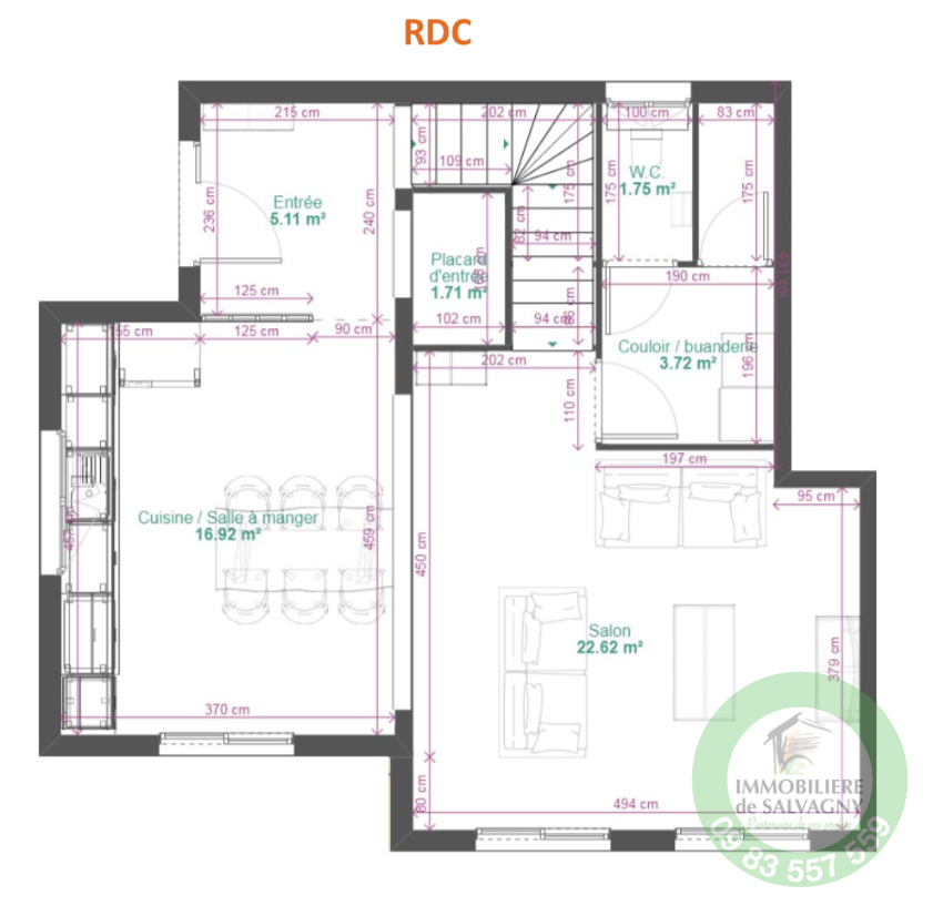 A deux pas du CENTRE du village, IMMOBILIERE DE SALVAGNY vous propose en EXCLUSIVITE une maison (mitoyenne sur 1 coté) d'environ 110 m2 A RENOVER. Elle est proposée en l'état, à aménager selon vos besoins et vos envies. Vous béneficiez d'un terrain plat et piscinable d'une surface de 842 m2. A votre disposition, un projet d'aménagement déja étudié par un maitre d'ouvrage offrant au RDC : une entrée avec placard, une cuisine / salle à manger ouvrant sur un séjour, une buanderie et des WC séparé. A l'étage : deux chambres, une suite parentale avec salle d'eau, une vaste salle de bains et des WC séparé. Maison lumineuse avec terrasse sud/ouest, un jardin arboré. Agrandissement possible en plus de l'existant. Parking pour 2 voitures. Chaudière au gaz de ville récente déja installée. DPE : E. Contact et renseignements au 09 83 557 559