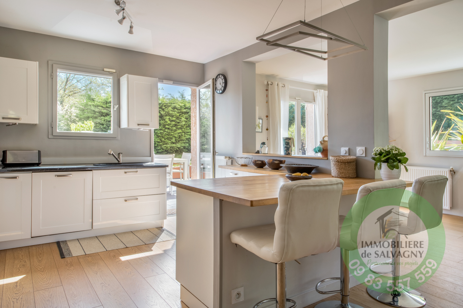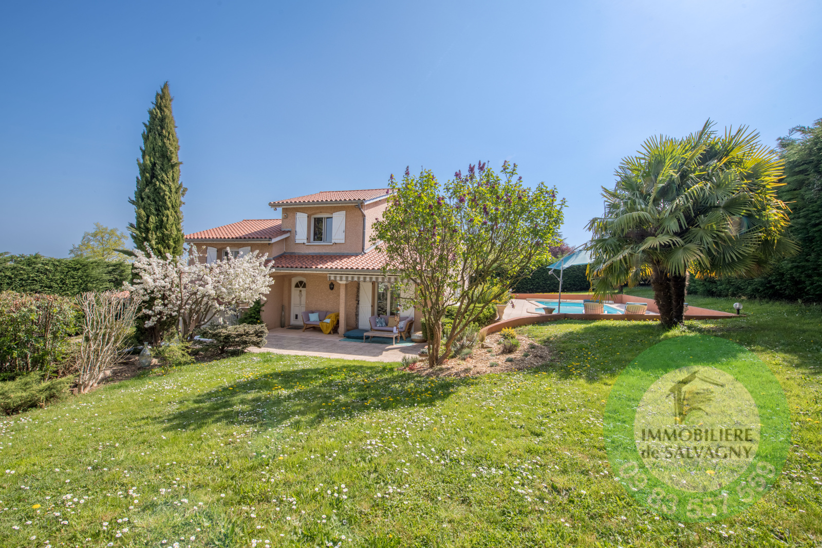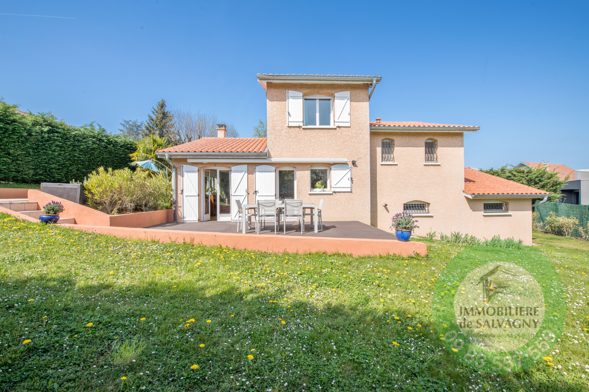 Proche du centre, à la Tour de Salvagny, dans un quartier pavillionnaire (hors lotissement), jolie maison construite au début des années 2000 d'environ 95m2 habitables avec fort potentiel d'extension (CES 20%). Le tout sur un terrain avec piscine de 1509 m2. Très belle pièce de vie bénéficiant d'un triple exposition (Est/Sud/Ouest) et ouvrant sur 2 grandes terrasses. Cuisine US équipée. Le coin nuit est composé de 3 chambres, d'une salle de bains et d'une buanderie. En complément : un garage double de 53m2. DPE : D - Informations et visites au 09 83 557 559