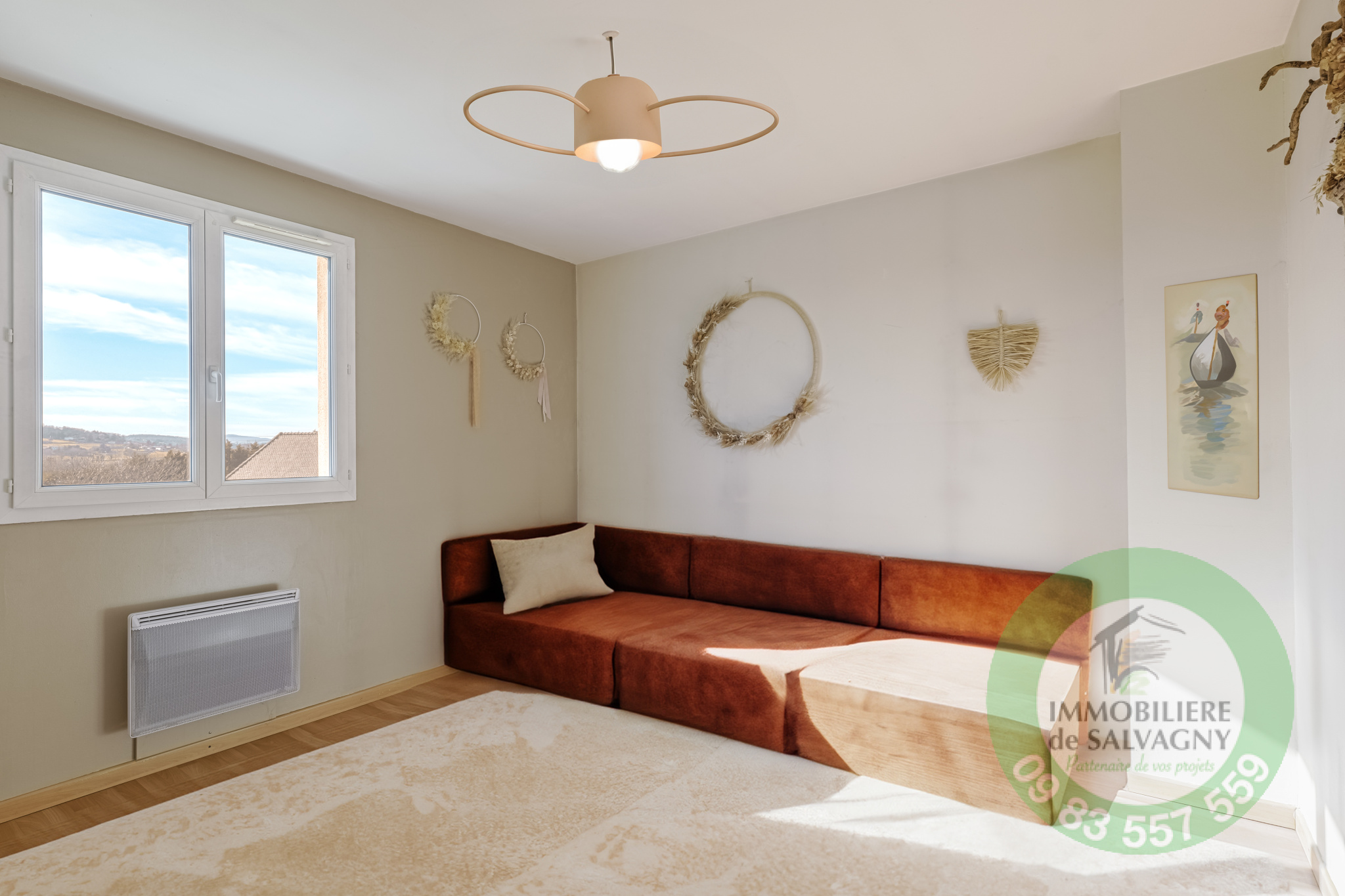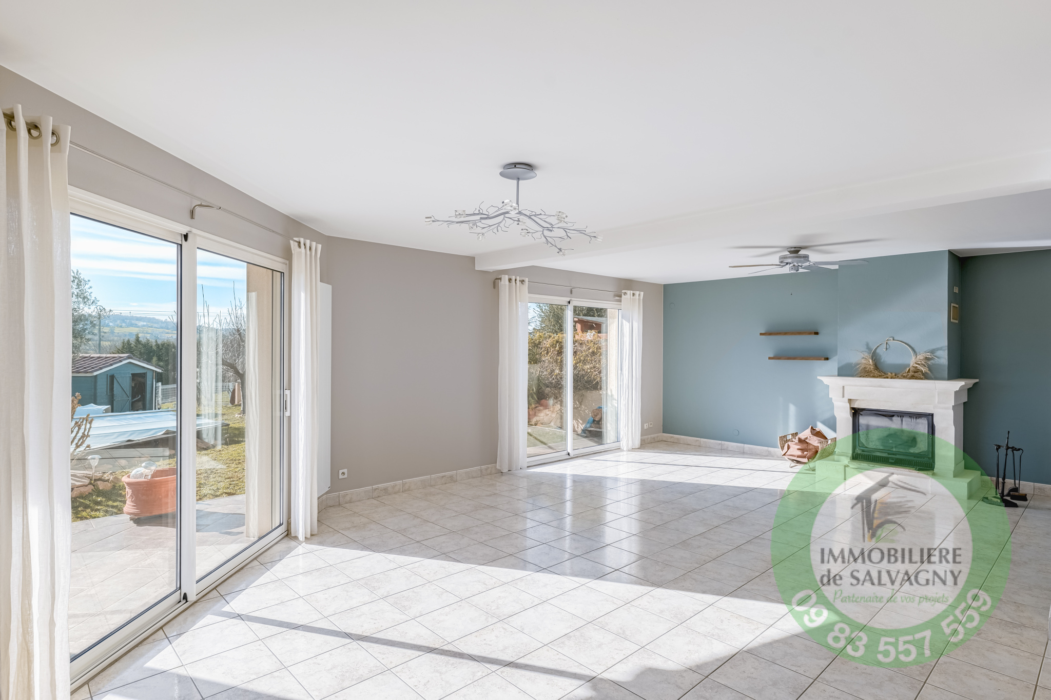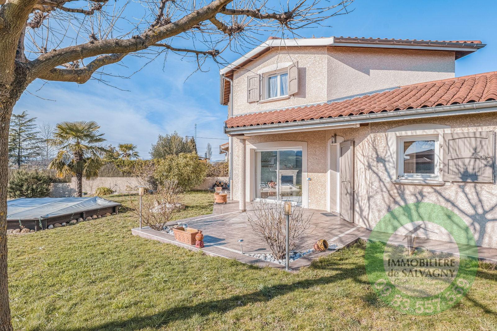 Sur la commune de La Tour de Salvagny, agréable maison de 118 m² habitables avec vue dégagée sur la campagne. Implantée sur un terrain de 650 m², elle propose au rez-de-chaussée, une entrée, un séjour de plus de 46 m² avec cheminée, une cuisine ouverte aménagée et équipée, un bureau, une buanderie et des toilettes. A l'étage, 3 chambres dont une avec dressing, une salle de bains et des toilettes. A l'éxtérieur, un jardin clos et arboré, terrasse et piscine semi enterré. En complément, un garage. Portail automatisé, baies vitrées en volets électriques. Chauffage électrique. DPE: D. Pour renseignements et visites, contacter Sylvie MACHADO, Immobilière de Salvagny by Pierrefeu Immobilier.