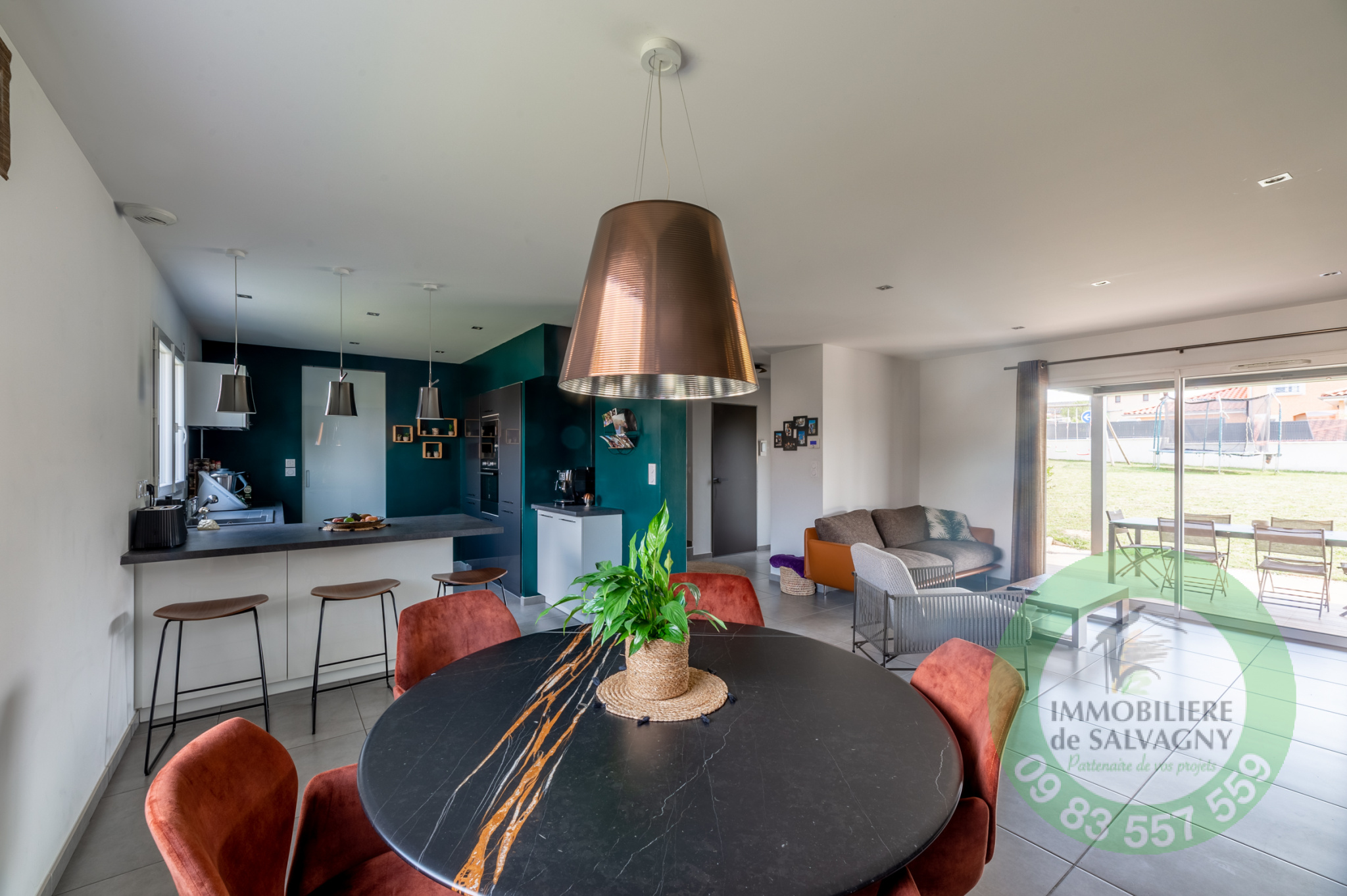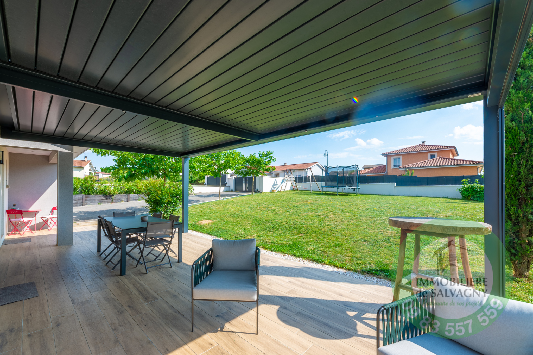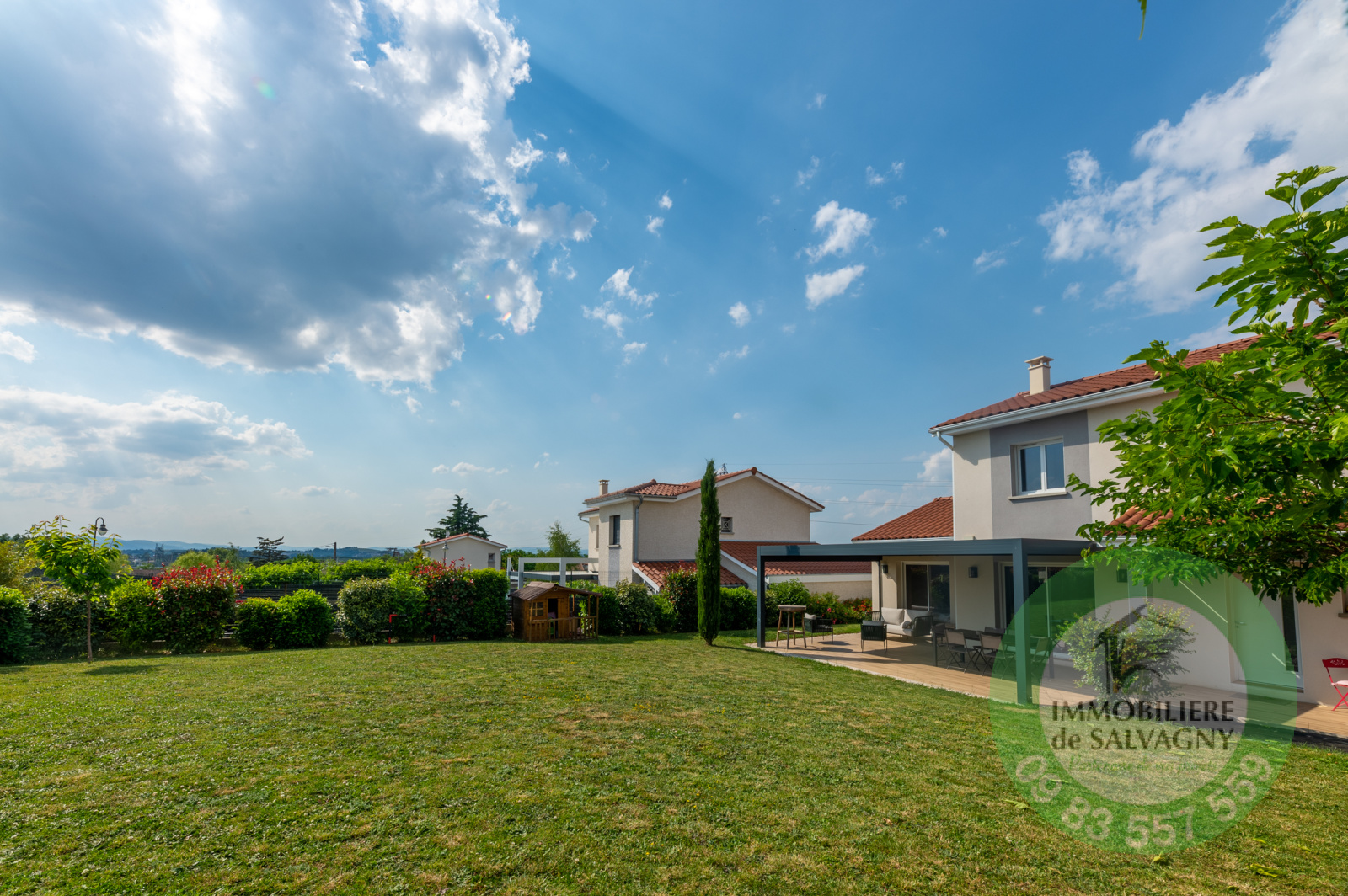 Immobilière de Salvagny vous présente cette superbe maison de 2016 d'une surface habitable de 122 m². Edifiée sur une une parcelle de terrain arboré de 843 m² piscinable (permis accordé). Elle se compose en rez-de-jardin, d'une belle pièce de vie ouvrant sur une terrasse couverte, d'une cuisine type US, d'une buanderie/cellier, WC suspendu avec lave mains ainsi qu'une suite parentale desservant dressing et salle d'eau. A l'étage, 3 chambres en parquet, une salle de bains et un WC séparé. Les plus : un garage de plus de 20 m², une terrasse de 35 m² avec pergola, ballon thermodynamique, volets motorisés, vidéophone...Belles prestations pour cette maison en excellent état. Renseignements et visites, contacter Sylvie MACHADO, Immobilière de Salvagny By Pierrefeu Immobilier.