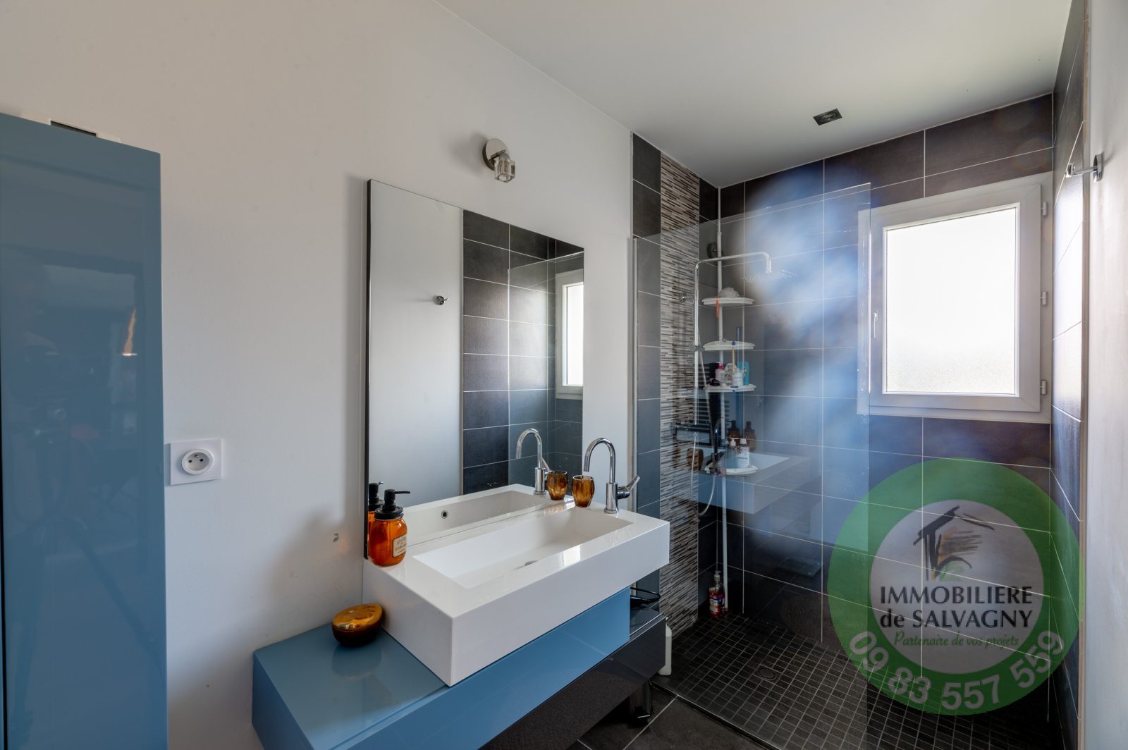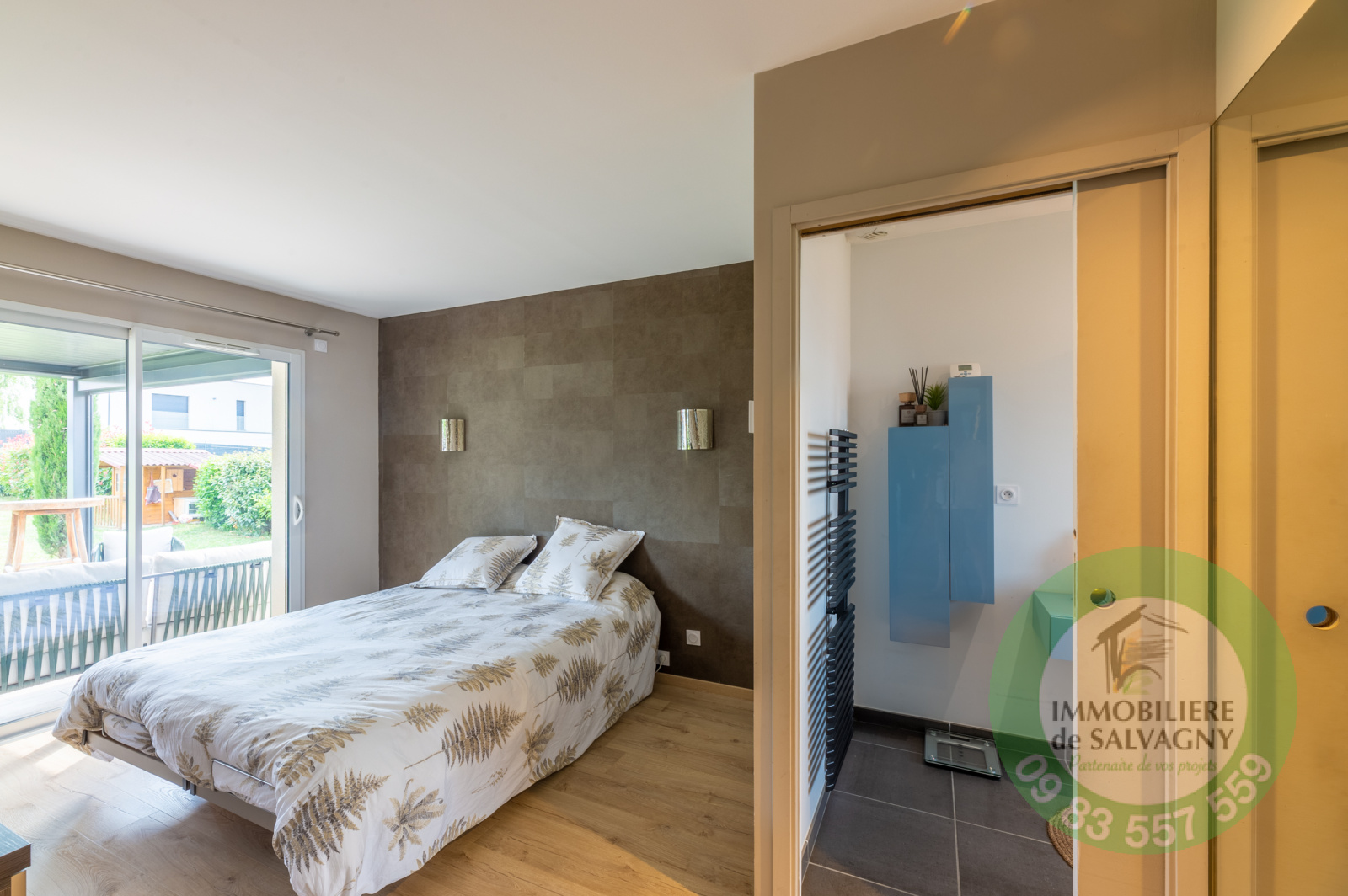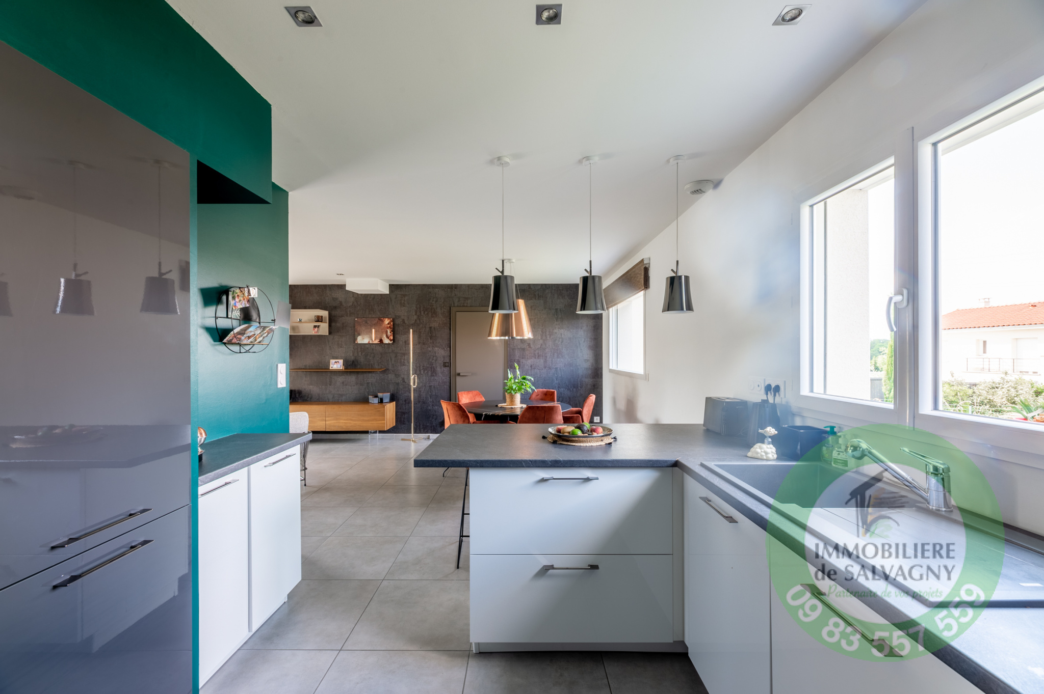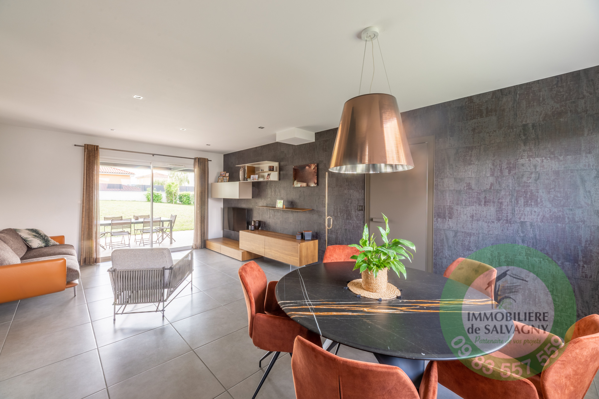 Immobilière de Salvagny vous présente cette superbe maison de 2016 d'une surface habitable de 122 m². Edifiée sur une une parcelle de terrain arboré de 843 m² piscinable (permis accordé). Elle se compose en rez-de-jardin, d'une belle pièce de vie ouvrant sur une terrasse couverte, d'une cuisine type US, d'une buanderie/cellier, WC suspendu avec lave mains ainsi qu'une suite parentale desservant dressing et salle d'eau. A l'étage, 3 chambres en parquet, une salle de bains et un WC séparé. Les plus : un garage de plus de 20 m², une terrasse de 35 m² avec pergola, ballon thermodynamique, volets motorisés, vidéophone...Belles prestations pour cette maison en excellent état. Renseignements et visites, contacter Sylvie MACHADO, Immobilière de Salvagny By Pierrefeu Immobilier.