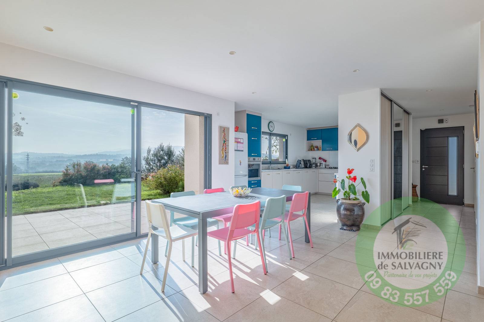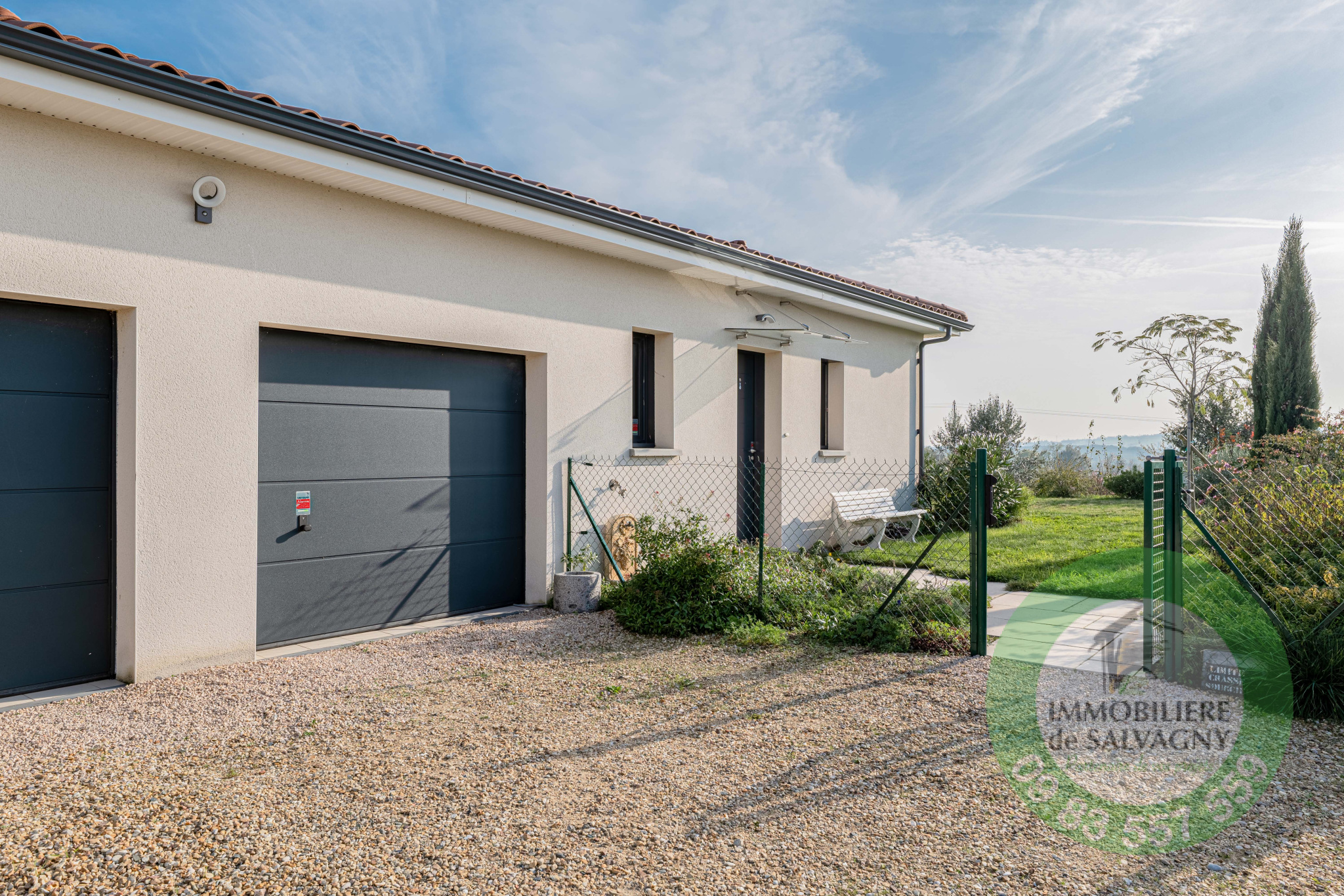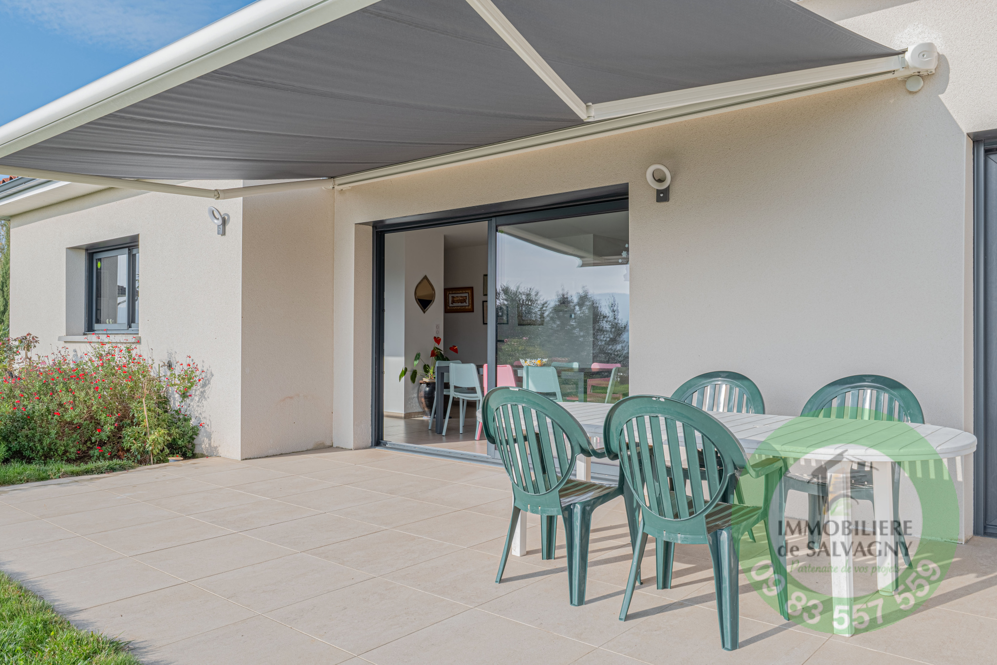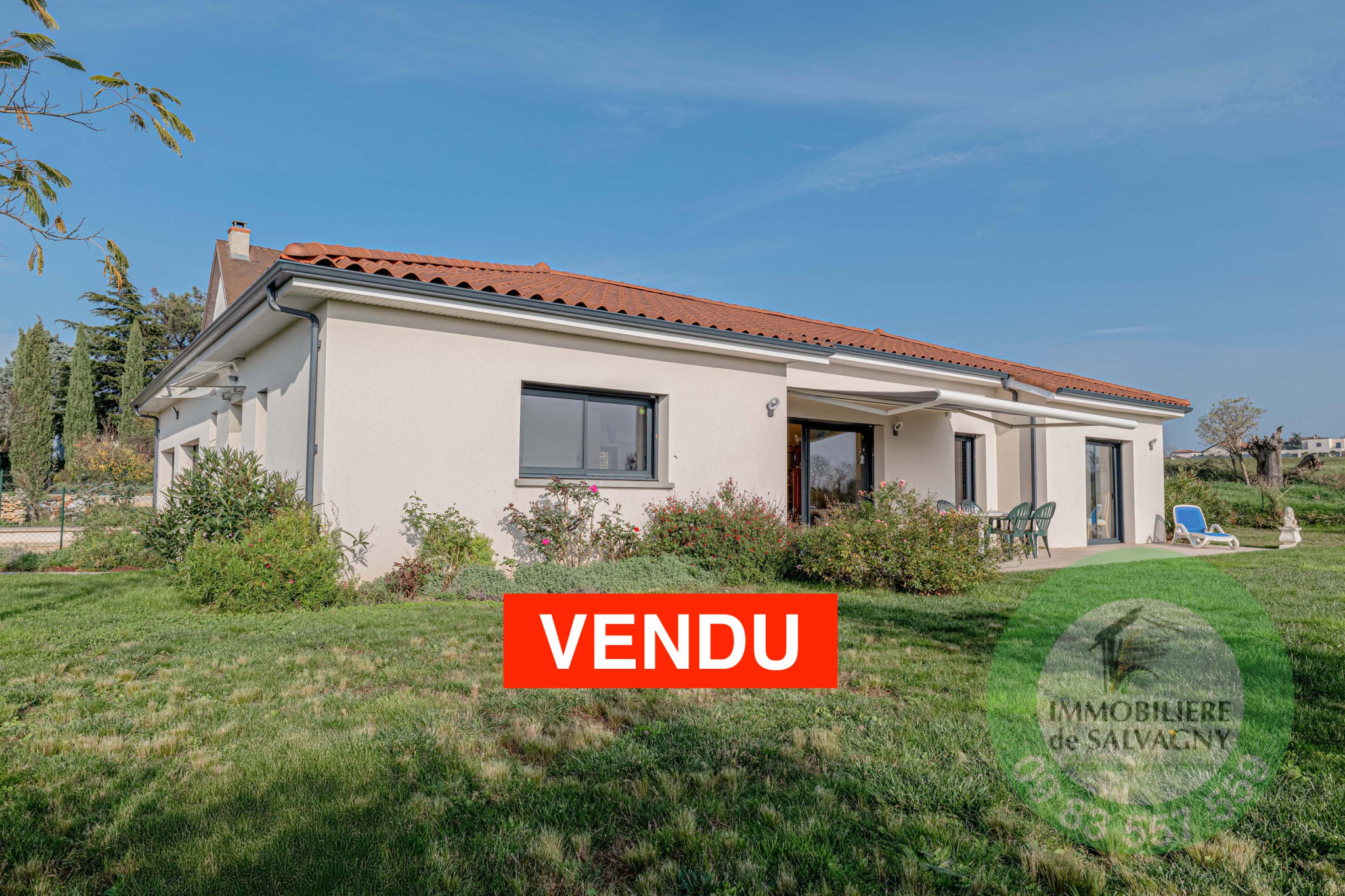 En EXCLUSIVITE chez Immobilière de Salvagny... Vous rêvez d'une maison de plain-pied, au calme, sans vis-à-vis, avec vue dégagée sur la campagne ? Nous vous proposons cette villa de belle qualité de 2019 de 135 m2 habitables sur son terrain clos et arboré de 722 m2. Vous disposerez d'une magnifique pièce à vivre d'environ 50 m2 ouvrant sur une terrasse plein SUD de 38 m2, une suite parentale avec salle d'eau et dressing, 3 chambres enfants, une salle de bains spacieuse, une buanderie et deux WC. En complément : un garage double de 38 m2 et 2 parkings. LES PLUS : cuisine équipée MOBALPA, store banne motorisé (5m de long), terrasse entièrement carrelé, volets motorisés avec commande centrale, poêle à granulé programmable, adoucisseur d'eau, nombreux rangements,... DPE : C - Renseignements et visites : Sylvie Machado - Immobilière de Salvagny by Pierrefeu Immobilier.