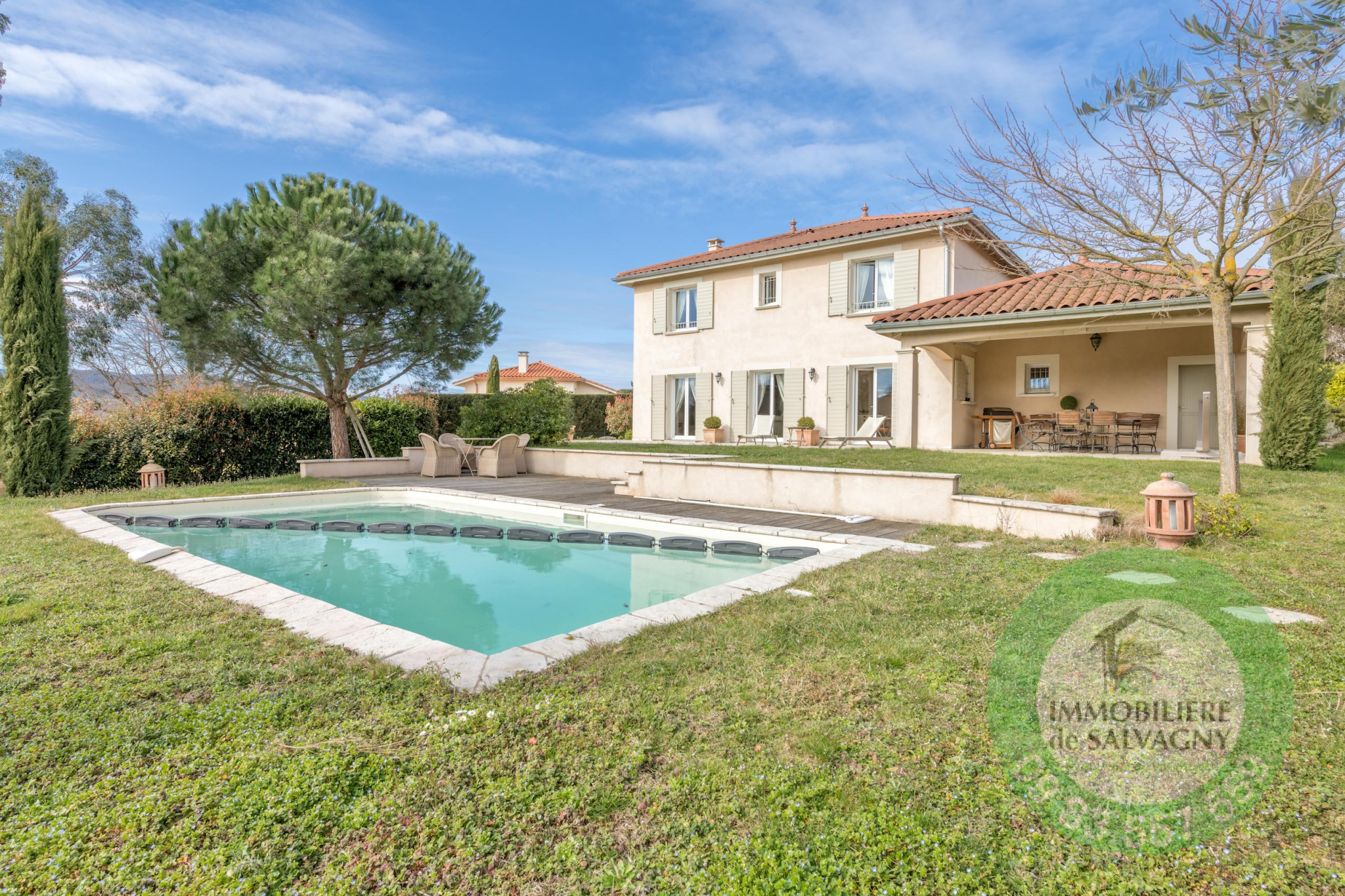 EXCLUSIVITE - Dans un quartier prisé et résidentiel de La Tour de Salvagny, venez découvrir cette magnifique maison provençale de 2006 de 145 m2, édifiée sur un terrain clos et paysagé de 1222 m2 avec piscine. De plain-pied, une pièce de vie lumineuse ouvrant sur une belle terrasse exposée Sud avec vue dégagée sur verdure, une cuisine séparée (US possible) et équipée avec cellier attenant, un bureau et WC indépendant. A l'étage, 4 chambres dont une suite parentale avec douche et dressing, une salle de bains et WC séparé. Garage d'env. 60 m2. La maison dispose de deux terrasses dont une couverte. LES PLUS : aucun vis à vis, le calme, la vue, proche des bus. Chauffage au gaz de ville. DPE : B - Renseignements et visites IMMOBILIERE DE SALVAGNY - 09 83 557 559