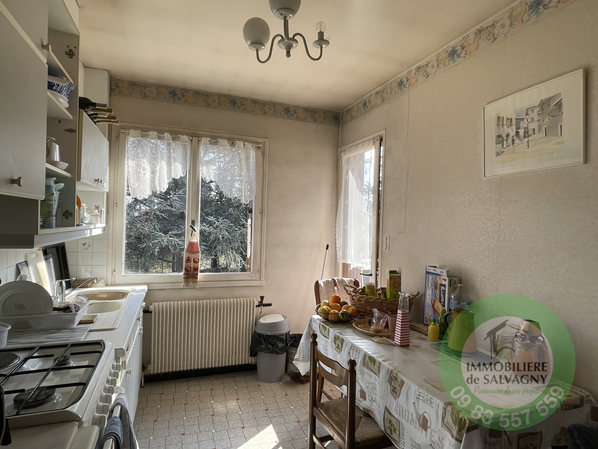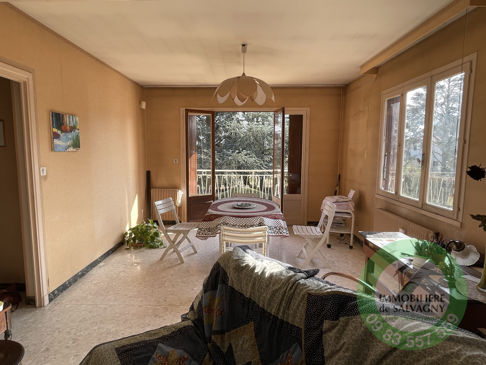 EXCLUSIVITE - Sur un terrain clos et arboré de 1530 m2 (non divisible), à deux pas du centre du village de La Tour de Salvagny, IMMOBILIERE DE SALVAGNY vous propose une maison de 1964. Maison de construction traditionnelle - A RENOVER - d'environ 160 m2 sur deux niveaux. Au RDC : une entrée, une chambre ouvrant sur terrasse exposée Sud, une cuisine d'été, une salle d'eau avec WC séparé, coin chaufferie et une autre pièce pouvant être utilisé comme seconde chambre ou salle de jeux. A l'étage (env. 100 m2) : un salon / salle à manger avec cheminée ouvrant sur balcon, une cuisine séparée, trois chambres, une salle de bains, WC séparé. Un garage de 40 m2. LES PLUS : l'emplacement, un terrain piscinable, la possibilité d'une très belle extension et les combles aménageables. Chauffage gaz - DPE : E - Renseignements et visites au 09 83 557 559