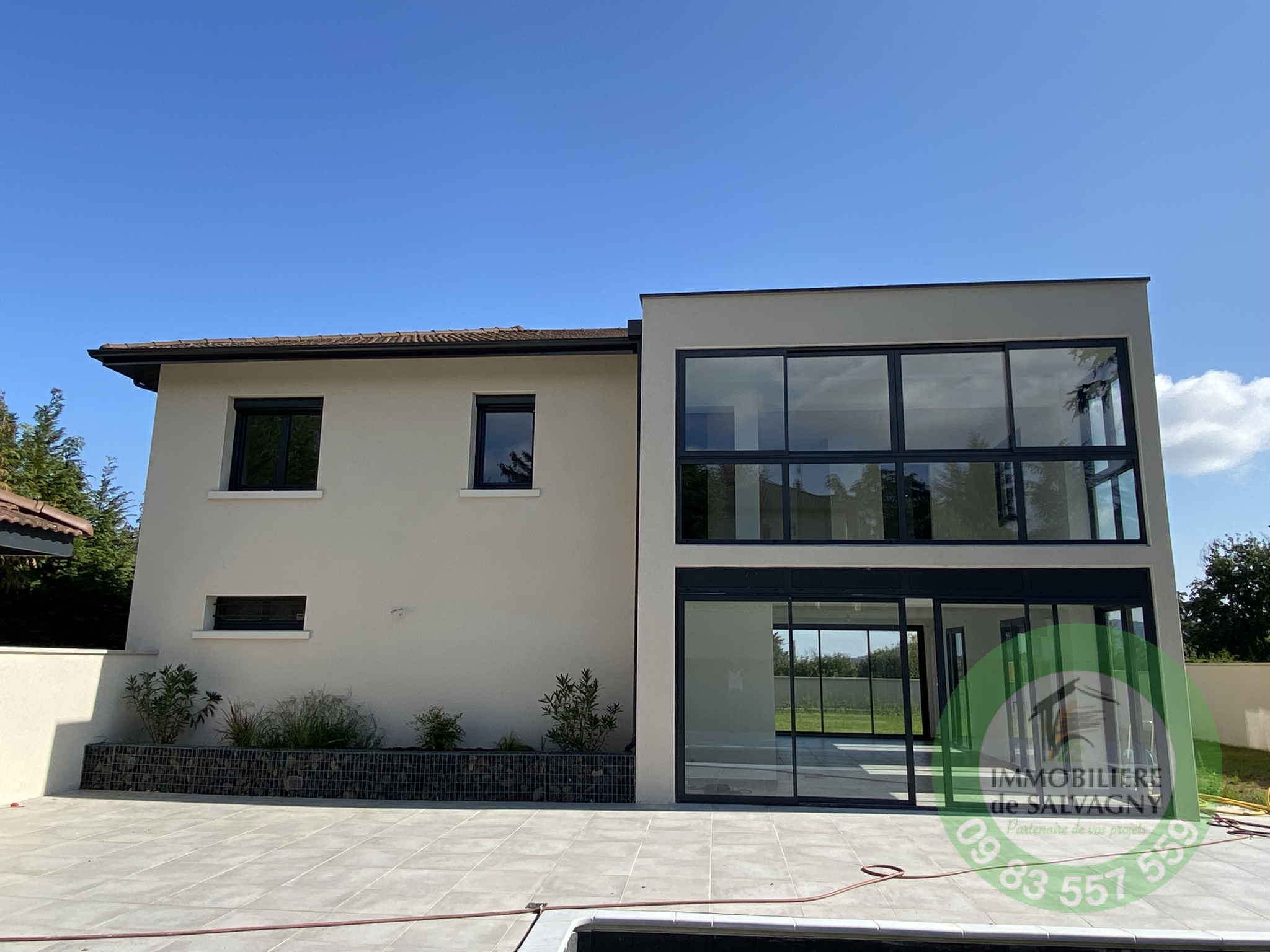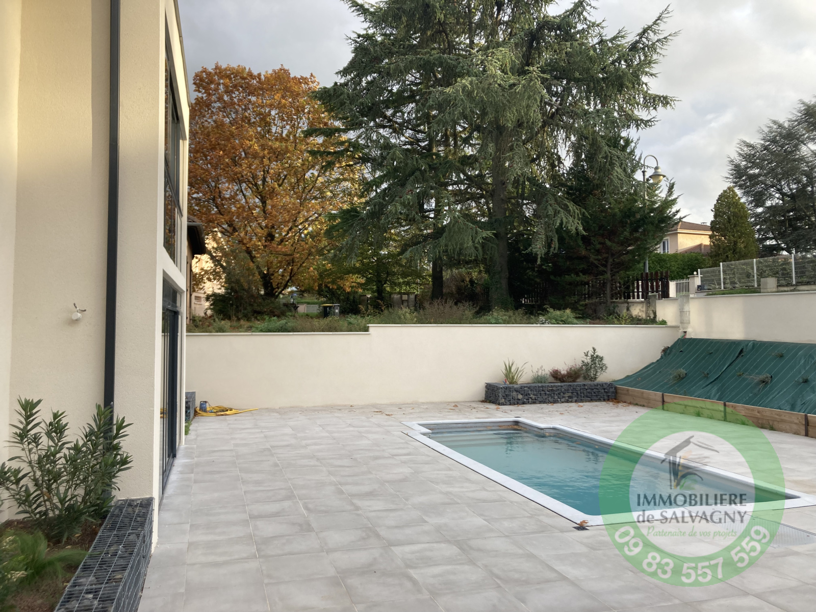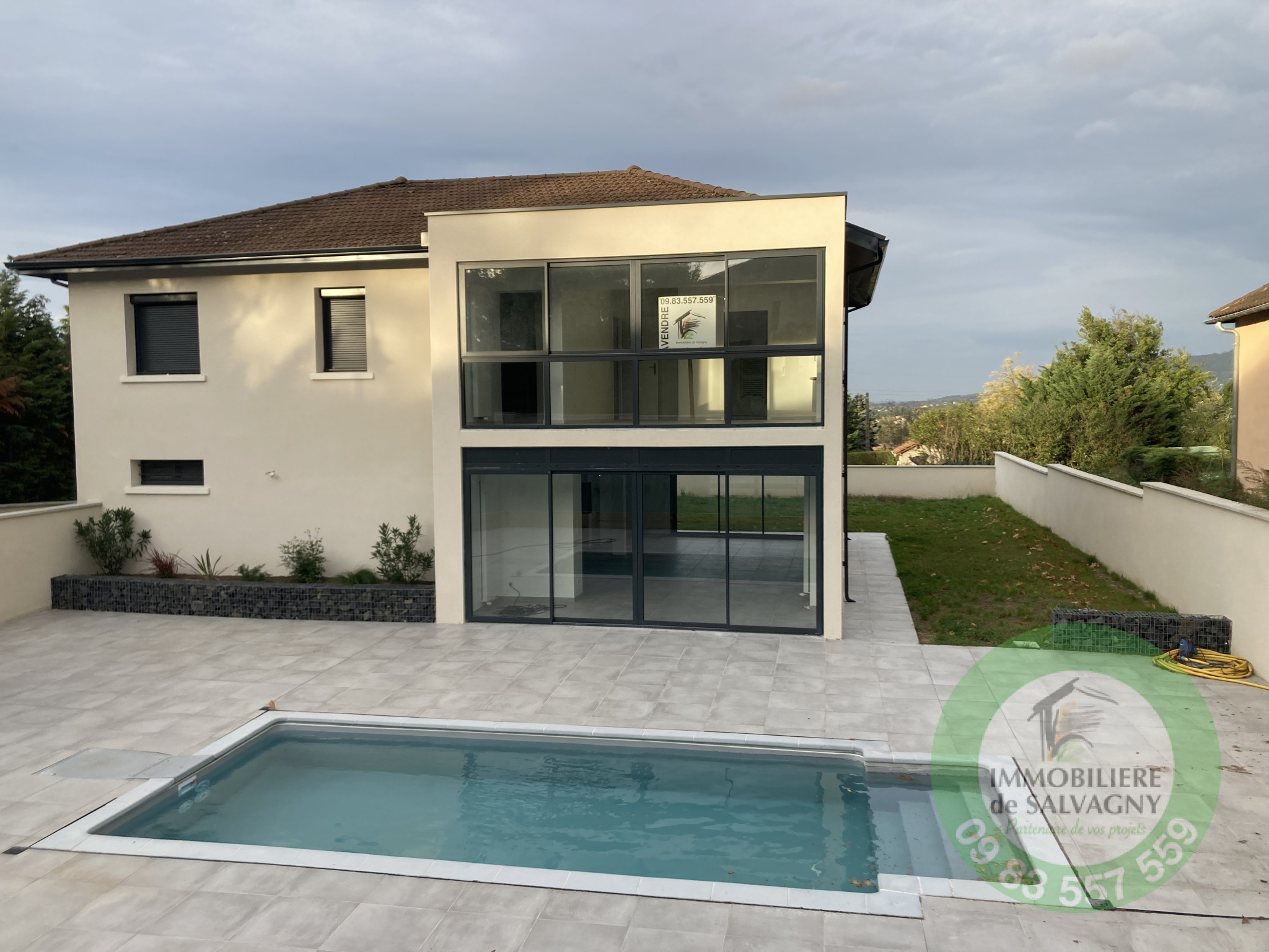 EN EXCLUSIVITE - Immobilière de Salvagny vous propose cette superbe maison entièrement rénovée, d'environ 174 m2 aux prestations récentes et contemporaines. L'entrée dessert une vaste pièce de vie lumineuse de plus de 67 m2 ouvrant sur une terrasse exposée Sud, cuisine neuve aménagée de type US, WC séparé. L'étage offre un beau pallier donnant sur 4 grandes chambres dont une suite parentale avec dressing et salle d'eau. Une lingerie, une salle de bains et un WC séparé complètent le premier étage. Edifiée sur un terrain plat, clos, d'environ 764 m2 avec piscine. La maison dispose d'un garage avec chaufferie, d'une piscine neuve et d'un pool-house. Proche du centre et des transports. Pour tous renseignements et visites : nous contacter.