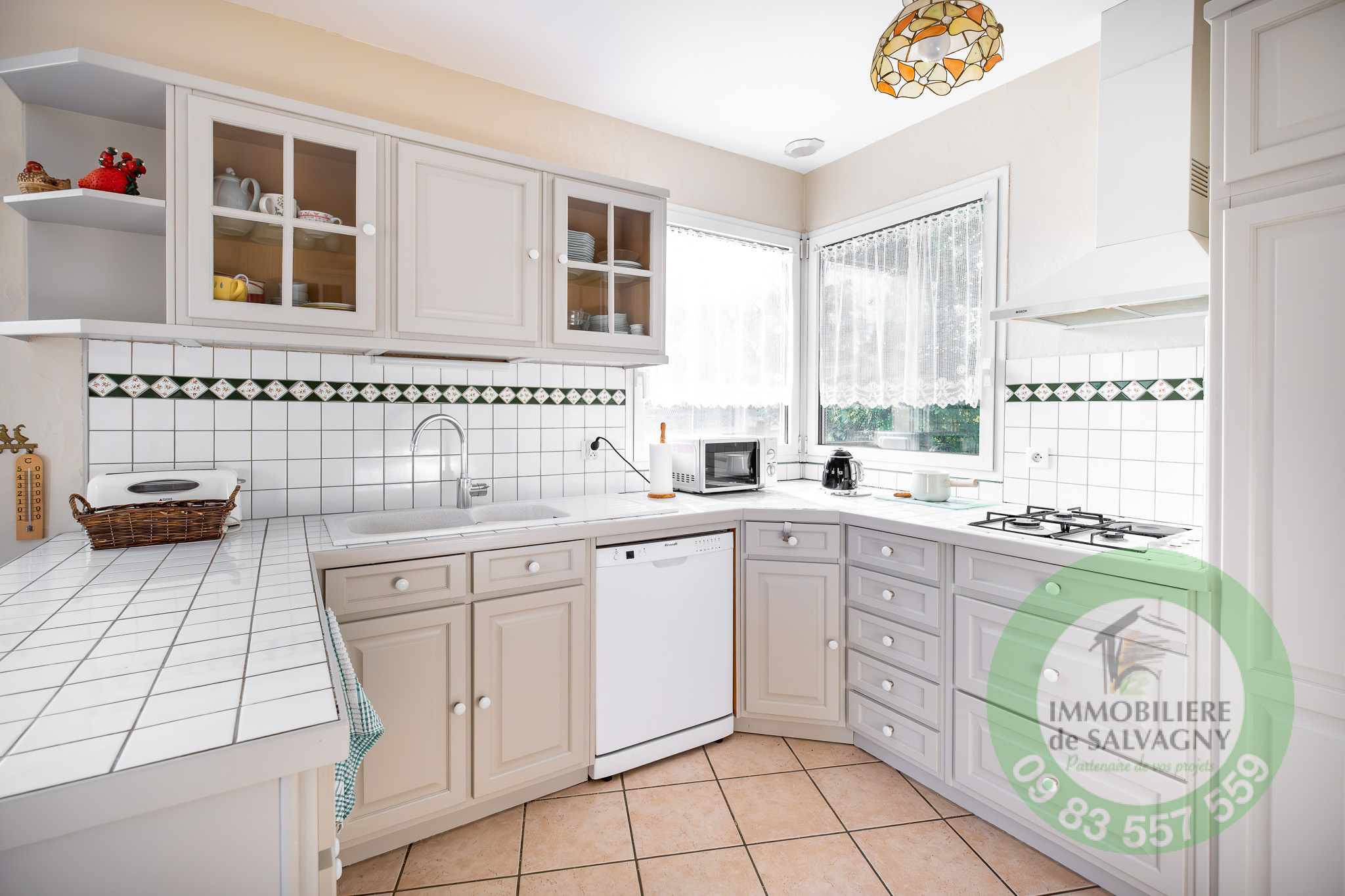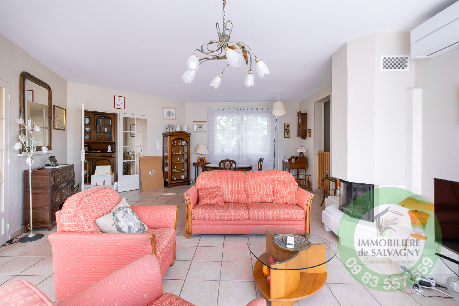 Sur une belle parcelle de terrain de 1160 m² clos et arboré, maison d'architecte de 1999 en très bon état général d'une surface habitable d'environ 125 m². Au rez-de-chaussée : un hall d'entrée, un séjour / salle à manger lumineux (traversant) avec cheminée ouvrant sur terrasse, une vaste cuisine équipée (US possible) avec un accès direct sur la terrasse. Quelques marches permettent l'accès au coin nuit avec 3 belles chambres dont 2 avec accès terrasse ainsi qu'une spacieuse salle de bains (douche et baignoire). En demi sous-sol vous disposez d'une chambre, d'une salle de jeux (ou bureau), d'une buanderie, d'une cave et d'un garage simple. Le terrain est piscinable. Vous pouvez facilement envisager des modifications d'agrandissement. Volets motorisés. Huisseries en Alu. Climatisation dans le séjour et dans une chambre. Proche de toutes les commodités : accès à pied aux commerces du village, écoles, bus et au Parc de l'Hippodrome. Chauffage individuel au gaz de ville. Renseignements et visites, contacter Sylvie MACHADO, Immobilière de Salvagny By Pierrefeu Immobilier.