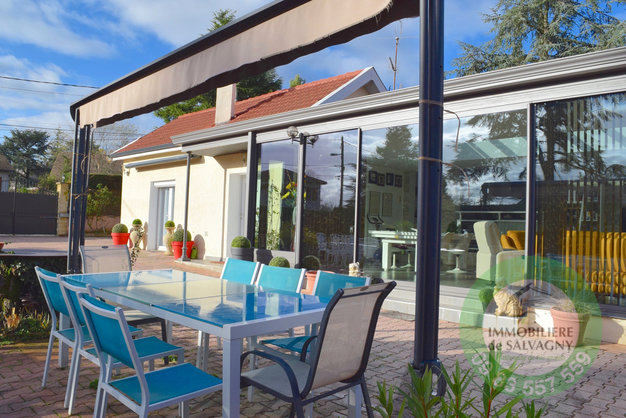 Emplacement privilégié pour cette villa de plain-pied de 168 m2 habitables + annexe de 39 m2 hab., garage et piscine. Vous serez séduits par l'agencement et les prestations contemporaines... Pièce de vie exposée plein sud avec accès direct à la terrasse. Cuisine haut de gamme entièrement équipée de 15 m2 avec cellier attenant. Une salle à manger de 20 m2 à l'esprit cosy. Une suite parentale avec SDE et dressing. Un coin nuit enfants composé de 3 chambres et d'une SDB. En complément : une annexe de 39 m2 pouvant servir de bureau ou de chambre d'amis, un garage simple ainsi qu'un abri voiture. Le tout sur un terrain de 1000 m2 avec une agréable piscine chauffée. Les plus : le calme, la proximité des commodités, la qualité des prestations... Chauffage au gaz. DPE : D - Contact au 09 83 557 559