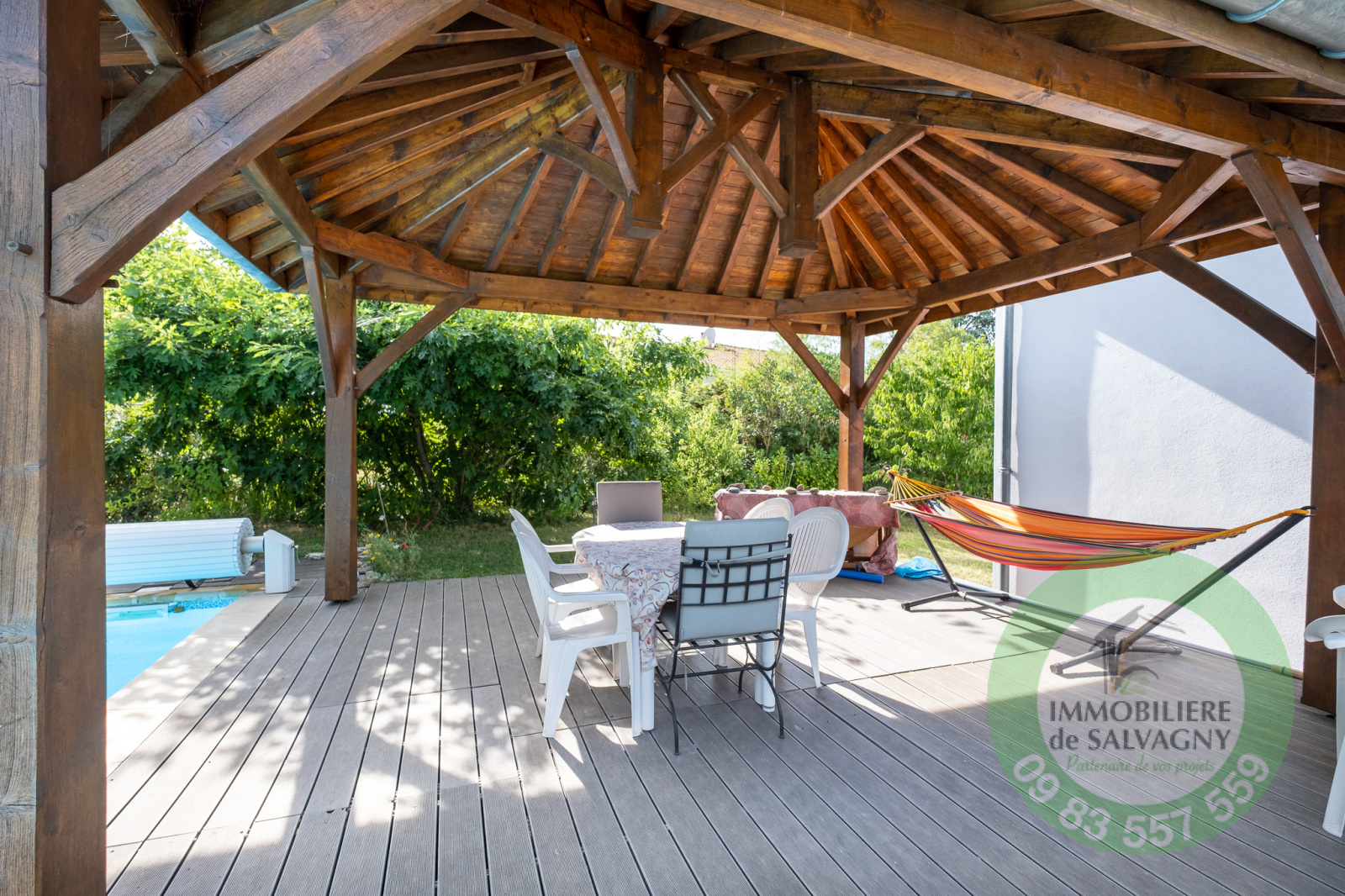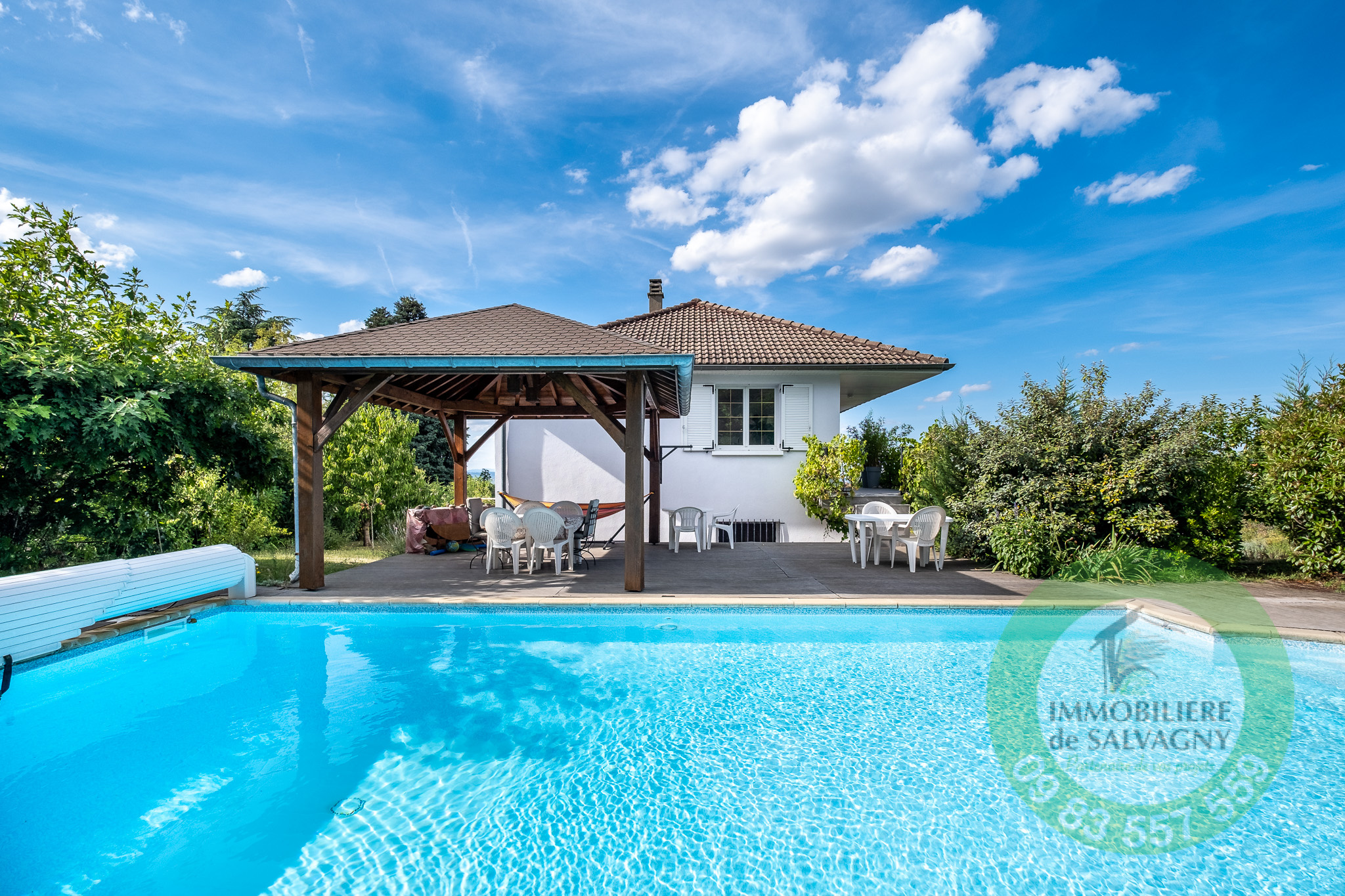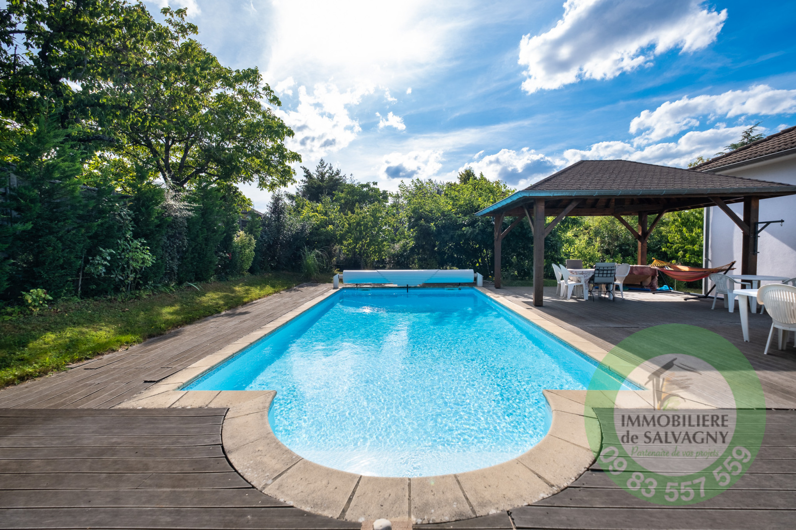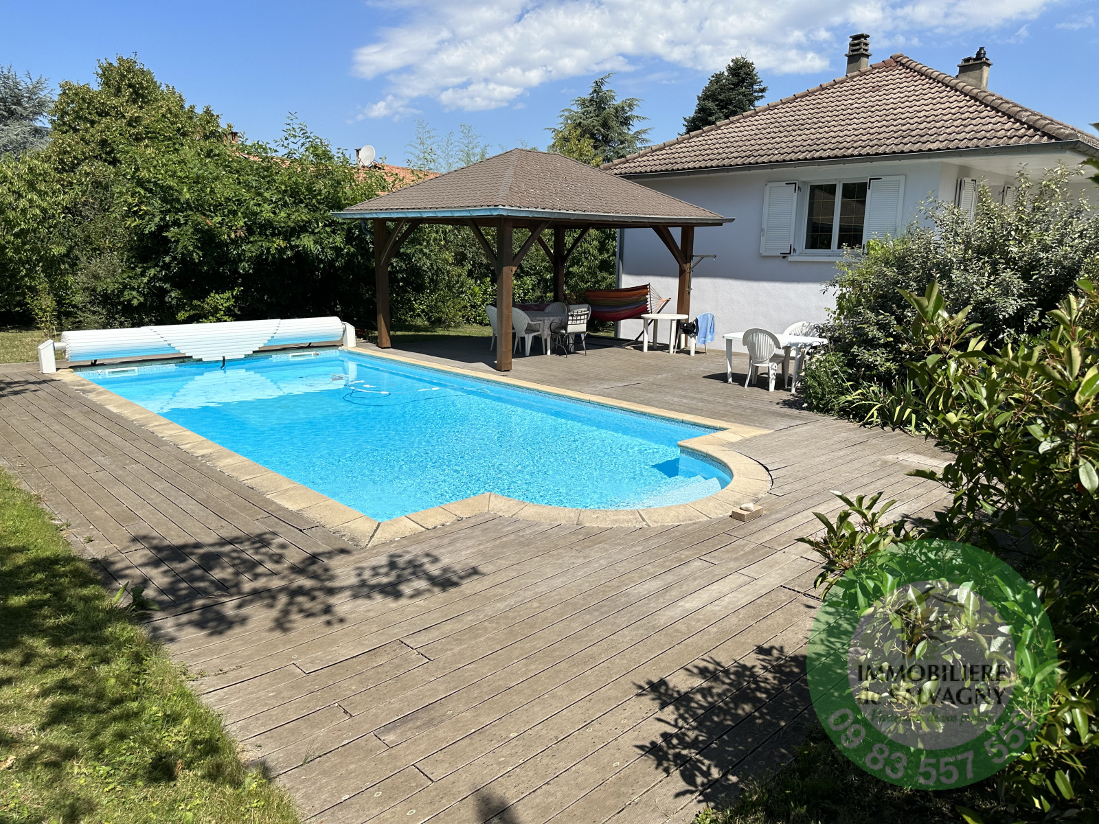 Superbe terrain de 1427m2 arboré avec soin (arbres fruitiers, cyprès, potager...). A l'abri des regards, profitez de la piscine (8x4) et de l'ombre du kiosque (bel ouvrage des Compagnons).