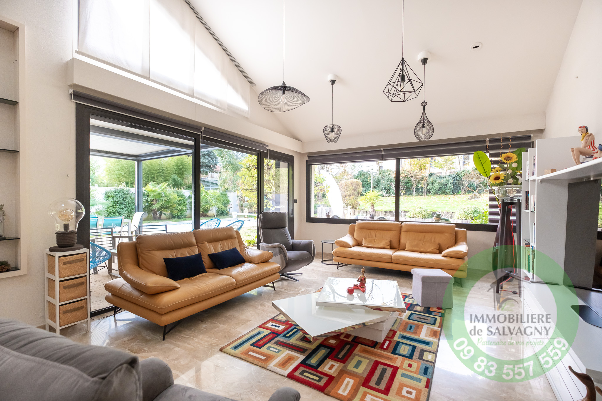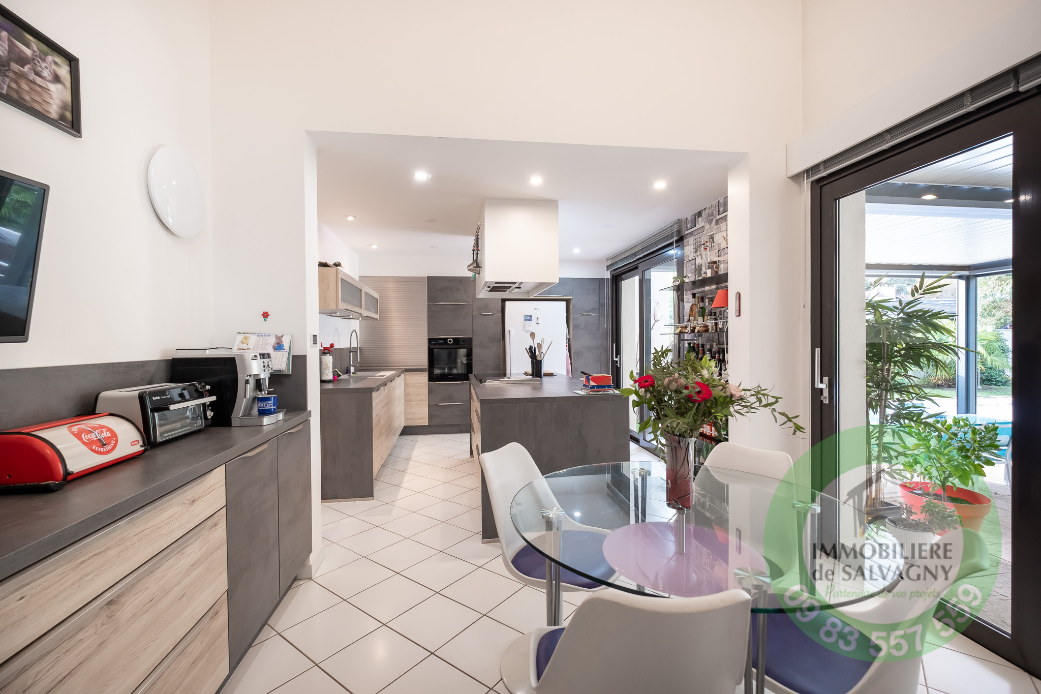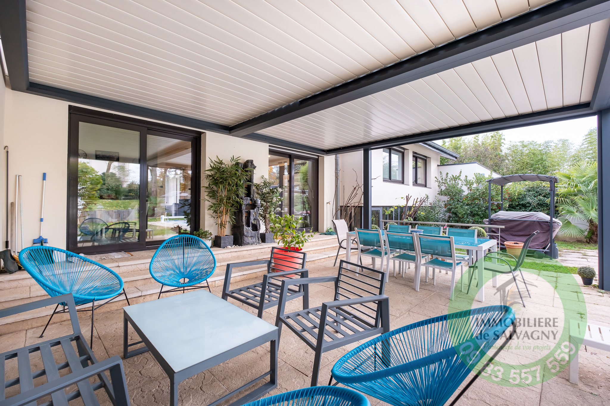IMMOBILIERE DE SALVAGNY vous propose cette magnifique villa aux lignes contemporaines d'une surface de 230 m2 composée d'une magnifique pièce de vie, cuisine équipée de 24 m2, le tout ouvrant sur une magnifique terrasse à l'ouest : pergola dernière génération , piscine chauffée récente, jardin sans vis à vis. Cette maison édifiée sur plusieurs niveaux offre différents espaces de vie en fonction de vos besoins... 5 chambres dont 1 superbe suite parentale avec salle de bains et dressing mais également 1 chambre au RDC avec salle d'eau, un vaste bureau. En complément, vous disposez d'un cellier, d'une buanderie, d'une cave, d'un atelier, de 2 garages, d'un parking pour 4 voitures. Des prestations de qualité, une maison avec beaucoup de cachet, sans oublier une excellente situation (proche du centre : commerces, écoles et bus). Pour plus d'informations, contacter Sylvie MACHADO, Immobilière de Salvagny By Pierrefeu Immobilier.