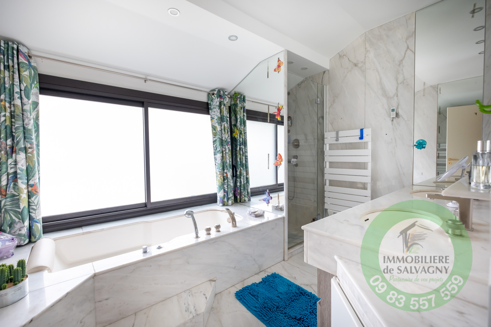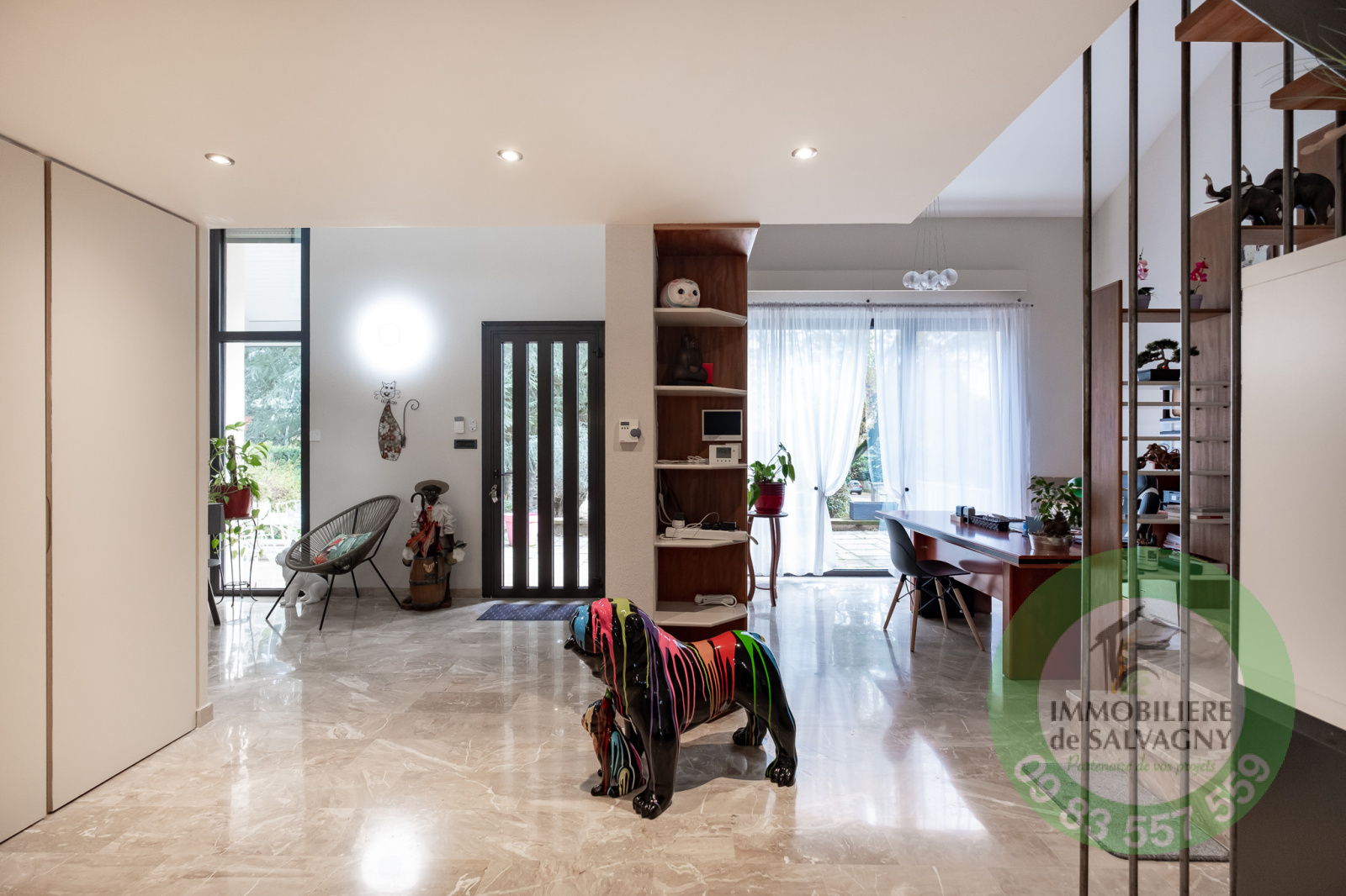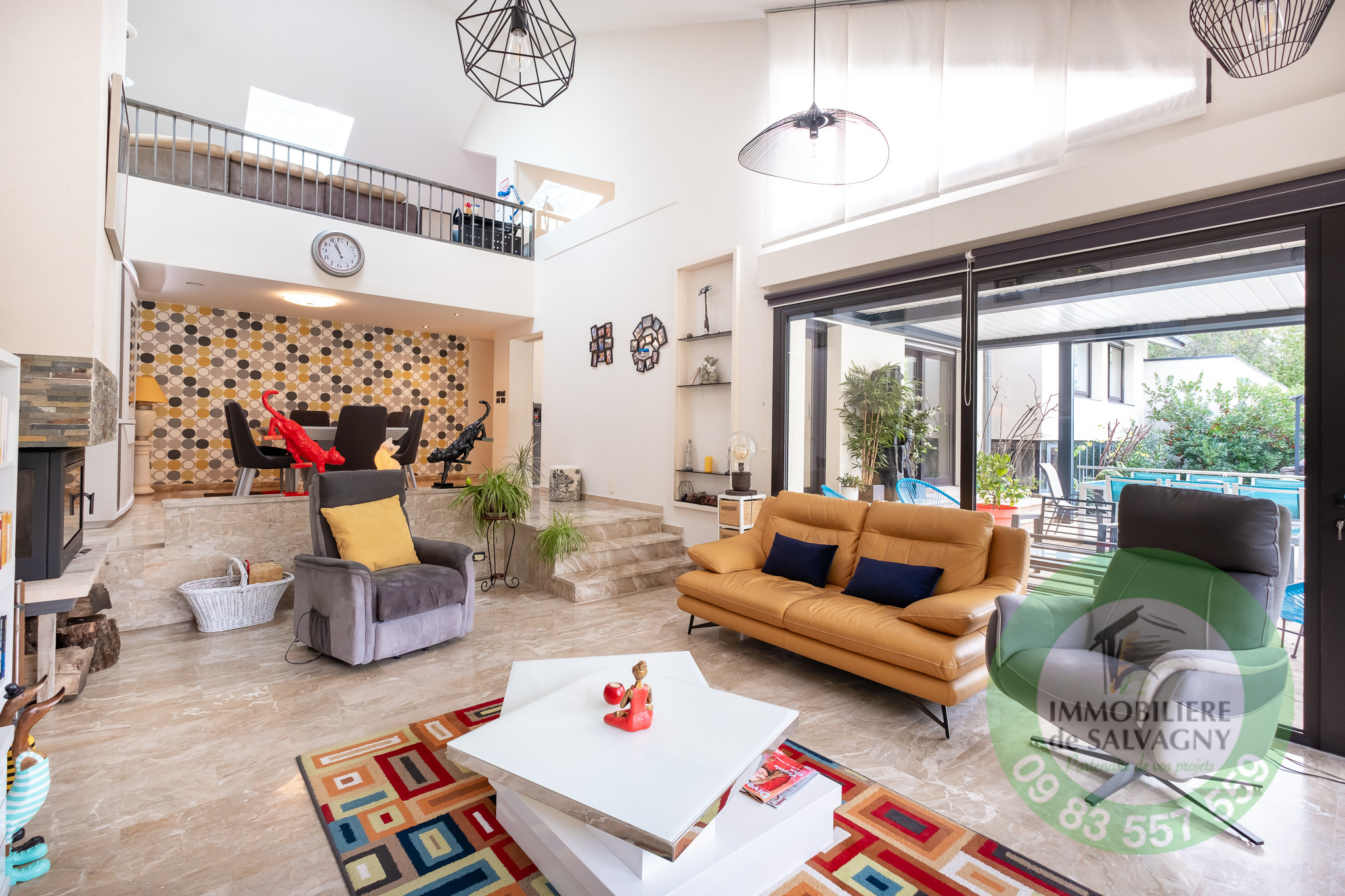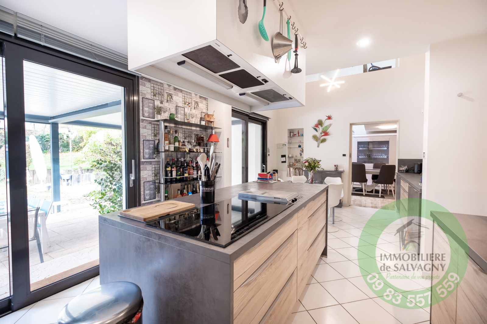 IMMOBILIERE DE SALVAGNY vous propose cette magnifique villa aux lignes contemporaines d'une surface de 230 m2 composée d'une magnifique pièce de vie, cuisine équipée de 24 m2, le tout ouvrant sur une magnifique terrasse à l'ouest : pergola dernière génération , piscine chauffée récente, jardin sans vis à vis. Cette maison édifiée sur plusieurs niveaux offre différents espaces de vie en fonction de vos besoins... 5 chambres dont 1 superbe suite parentale avec salle de bains et dressing mais également 1 chambre au RDC avec salle d'eau, un vaste bureau. En complément, vous disposez d'un cellier, d'une buanderie, d'une cave, d'un atelier, de 2 garages, d'un parking pour 4 voitures. Des prestations de qualité, une maison avec beaucoup de cachet, sans oublier une excellente situation (proche du centre : commerces, écoles et bus). Pour plus d'informations, contacter Sylvie MACHADO, Immobilière de Salvagny By Pierrefeu Immobilier.