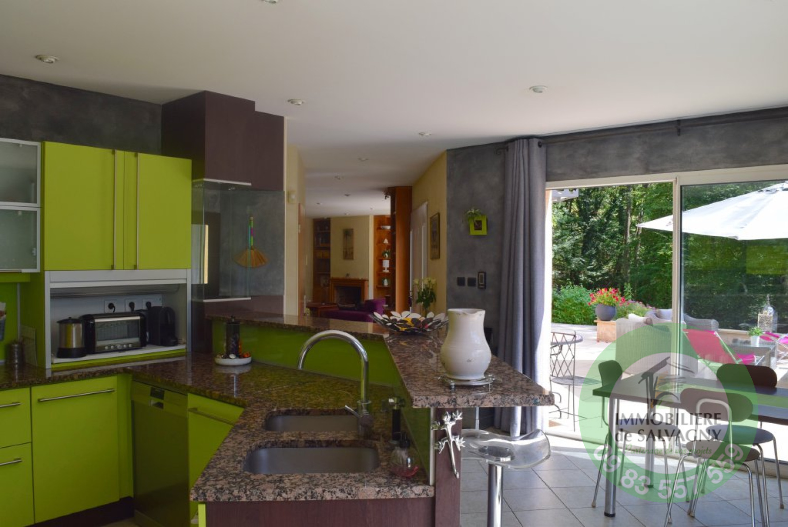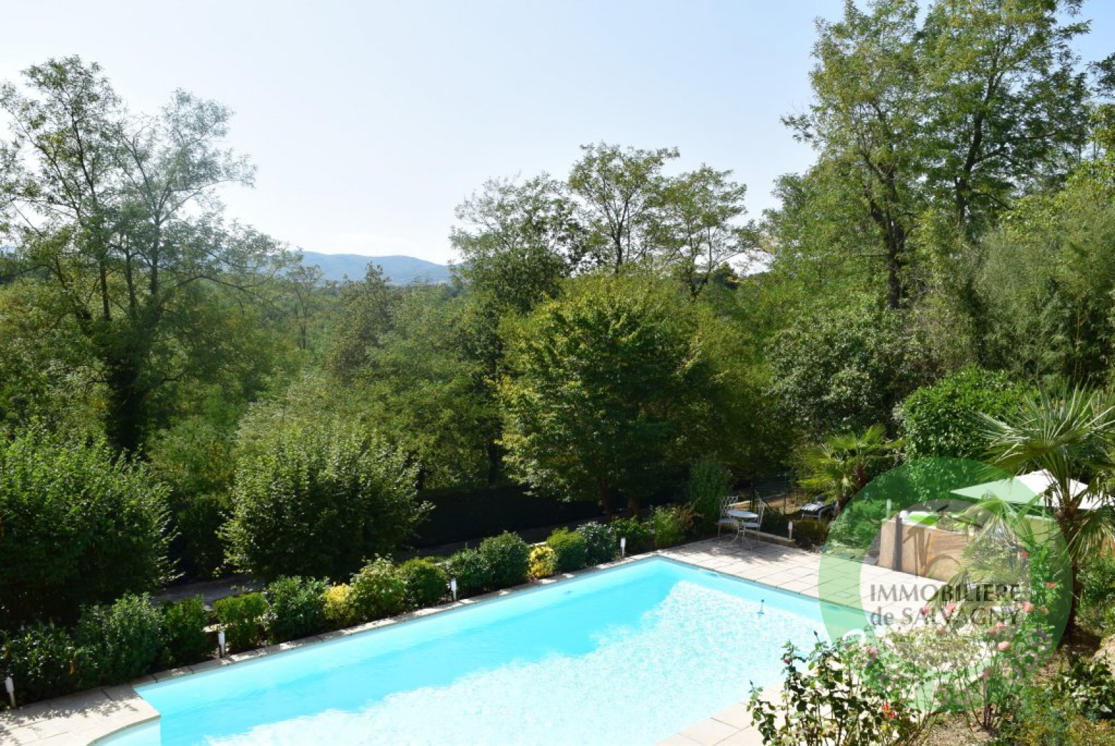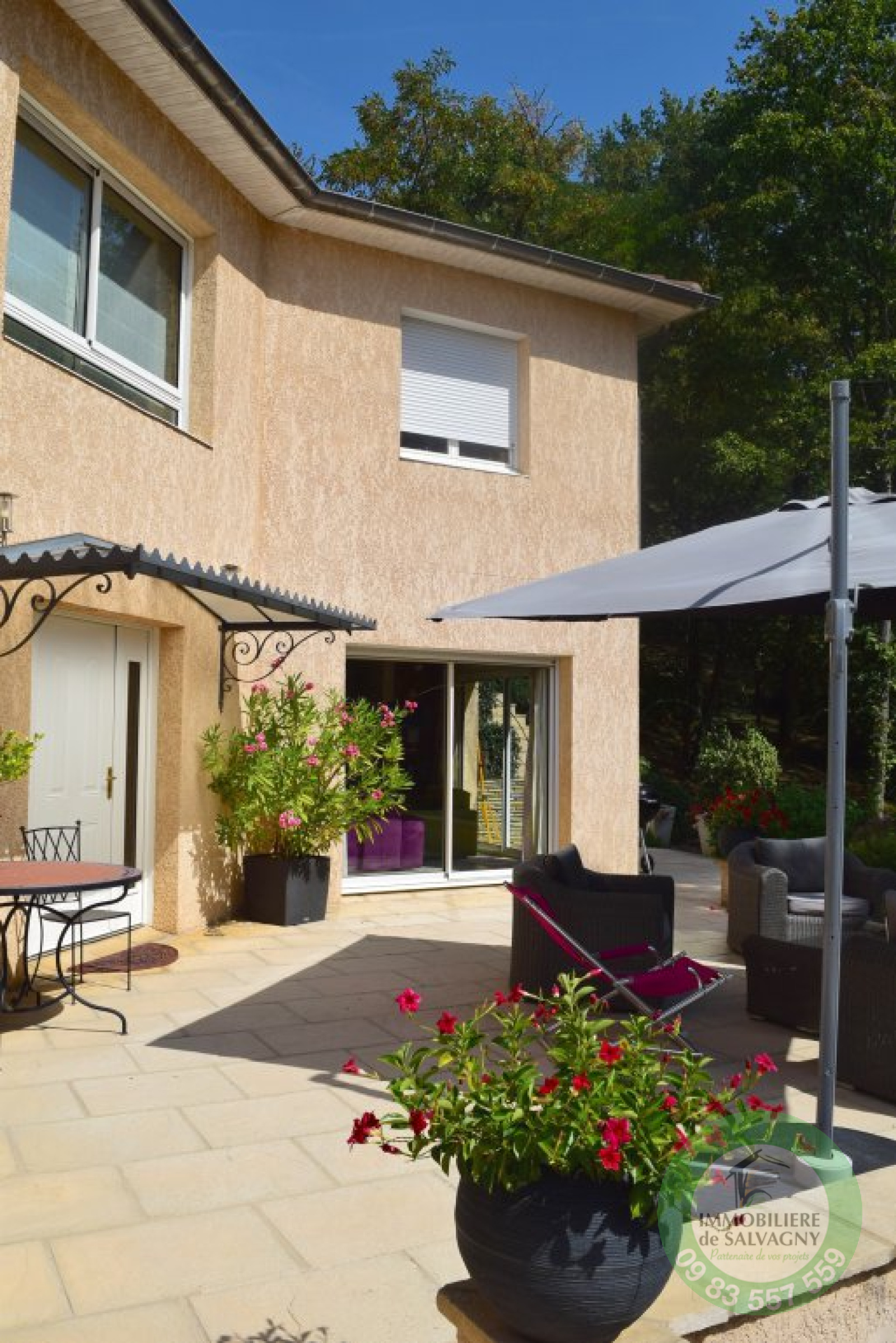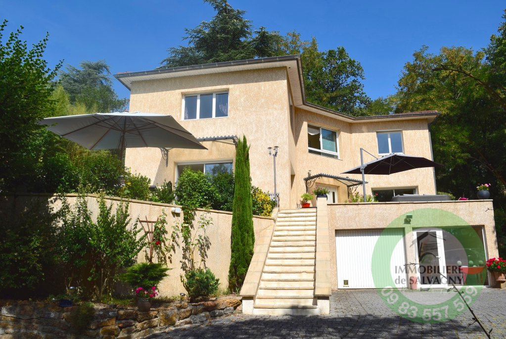 Nichée dans un écrin de verdure, superbe propriété offrant une vue exceptionnelle sur un parc boisé et sur les Monts du Lyonnais. Cette maison familiale de 230 m2 est idéale pour les amoureux de nature (aucun vis à vis) tout en étant proche des commodités. Au RDC, une cuisine de 25 m2 entièrement équipée ouvrant sur 2 belles terrasses, un vaste séjour de 60 m2 disposant de 2 grandes baies vitrées avec vue sur parc ainsi que d'une cheminée. A l'étage, une belle suite parentale avec dressing et salle d'eau, 3 chambres, une salle de bains et un bureau. En complément, un sous-sol de 85 m2 comprenant le garage, le local technique et des sanitaires. Vous apprécierez sa piscine avec vue dégagée. Le plus : un 2° bureau avec entrée indépendante permettant une activité professionnelle à domicile. DPE : C - Pour tous renseignements, contacter l'agence Immobilière de Salvagny au 09 83 557 559.