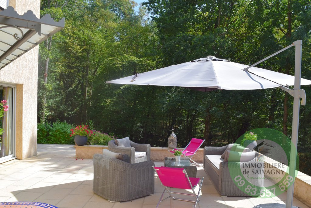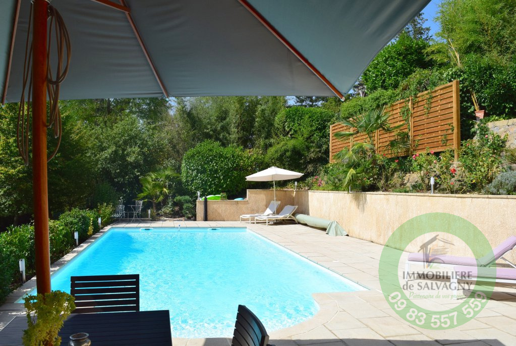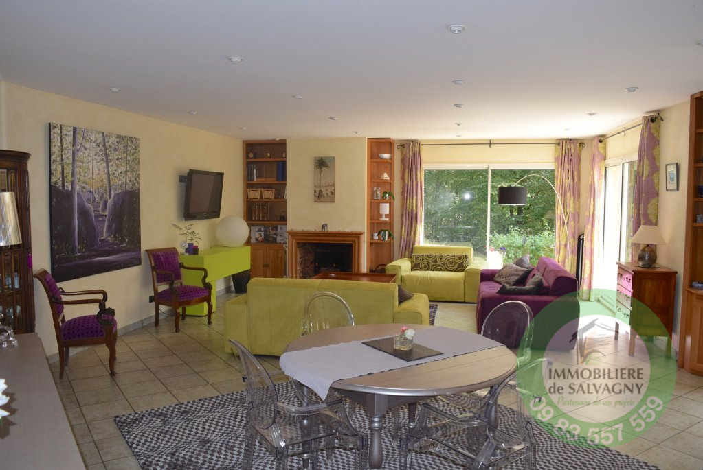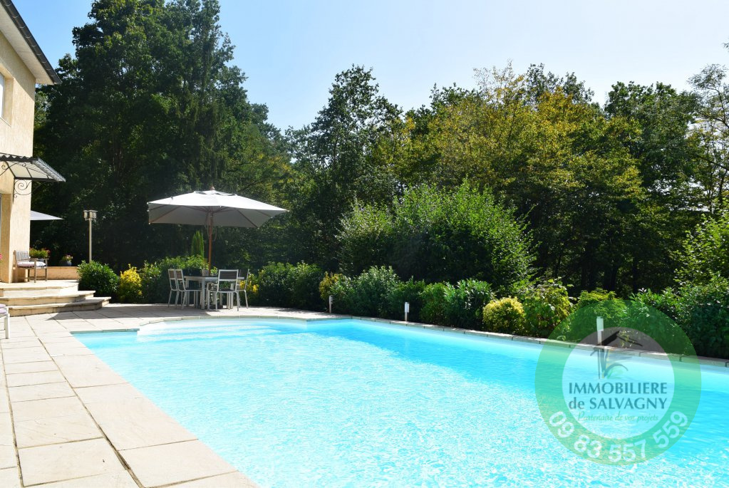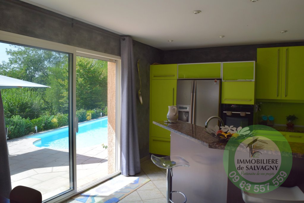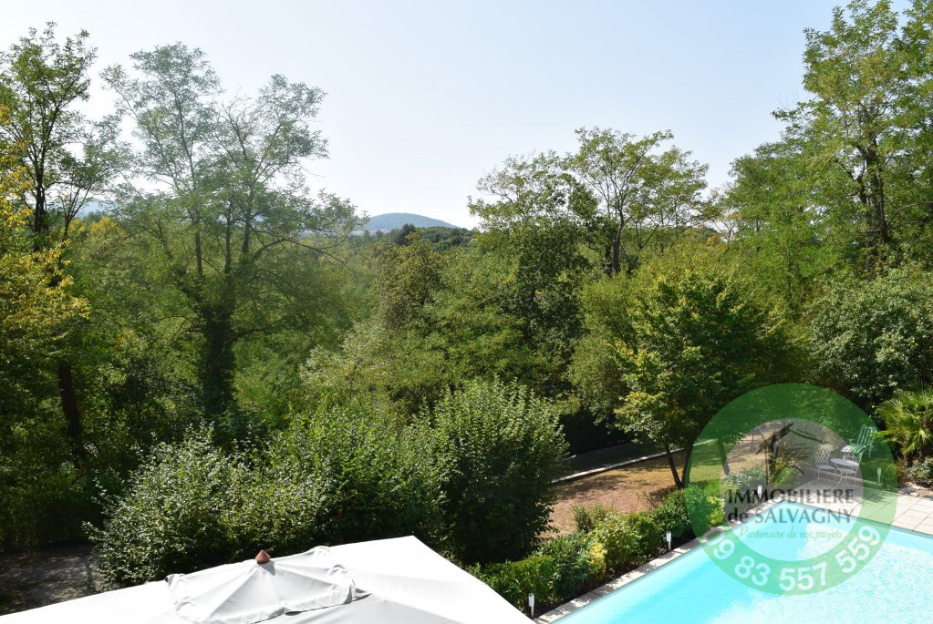 Nichée dans un écrin de verdure, superbe propriété offrant une vue exceptionnelle sur un parc boisé et sur les Monts du Lyonnais. Cette maison familiale de 230 m2 est idéale pour les amoureux de nature (aucun vis à vis) tout en étant proche des commodités. Au RDC, une cuisine de 25 m2 entièrement équipée ouvrant sur 2 belles terrasses, un vaste séjour de 60 m2 disposant de 2 grandes baies vitrées avec vue sur parc ainsi que d'une cheminée. A l'étage, une belle suite parentale avec dressing et salle d'eau, 3 chambres, une salle de bains et un bureau. En complément, un sous-sol de 85 m2 comprenant le garage, le local technique et des sanitaires. Vous apprécierez sa piscine avec vue dégagée. Le plus : un 2° bureau avec entrée indépendante permettant une activité professionnelle à domicile. DPE : C - Pour tous renseignements, contacter l'agence Immobilière de Salvagny au 09 83 557 559.