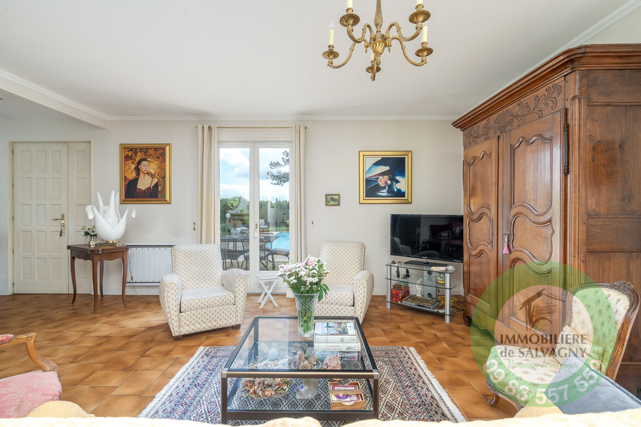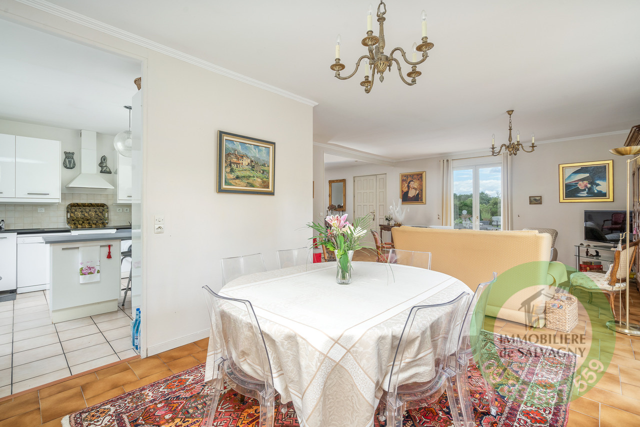 Immobilière de Salvagny vous présente cette maison de 163 m² habitables (242 m² au sol) sur la commune de Dardilly. Elle dispose en rez-de-jardin d'un vaste séjour de 53 m² ouvrant sur la terrasse et la piscine (exposition sud), d'une cuisine équipée, de deux chambres, salle d'eau et toilettes. L'étage comprend un espace en mezzanine, deux chambres, une salle d'eau et un bureau. Au sous-sol : un garage double, une pièce de 20 m², un atelier, une cave et un studio indépendant avec cuisine et salle d'eau. Pour les extérieurs, une terrasse équipée d'un store banne, une piscine chauffée et un abri de jardin. Le tout sur un terrain de 1378 m². Située à 10 mn à pieds du centre du village et des commerces. Proximité ligne TCL n°3 et gare des Mouilles. Chauffage électrique. Pour renseignements et visites, contacter Sylvie Machado, Immobilière de Salvagny By Pierrefeu.